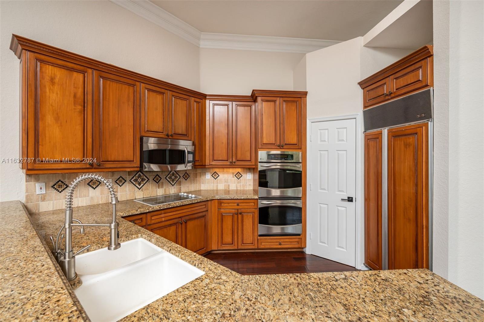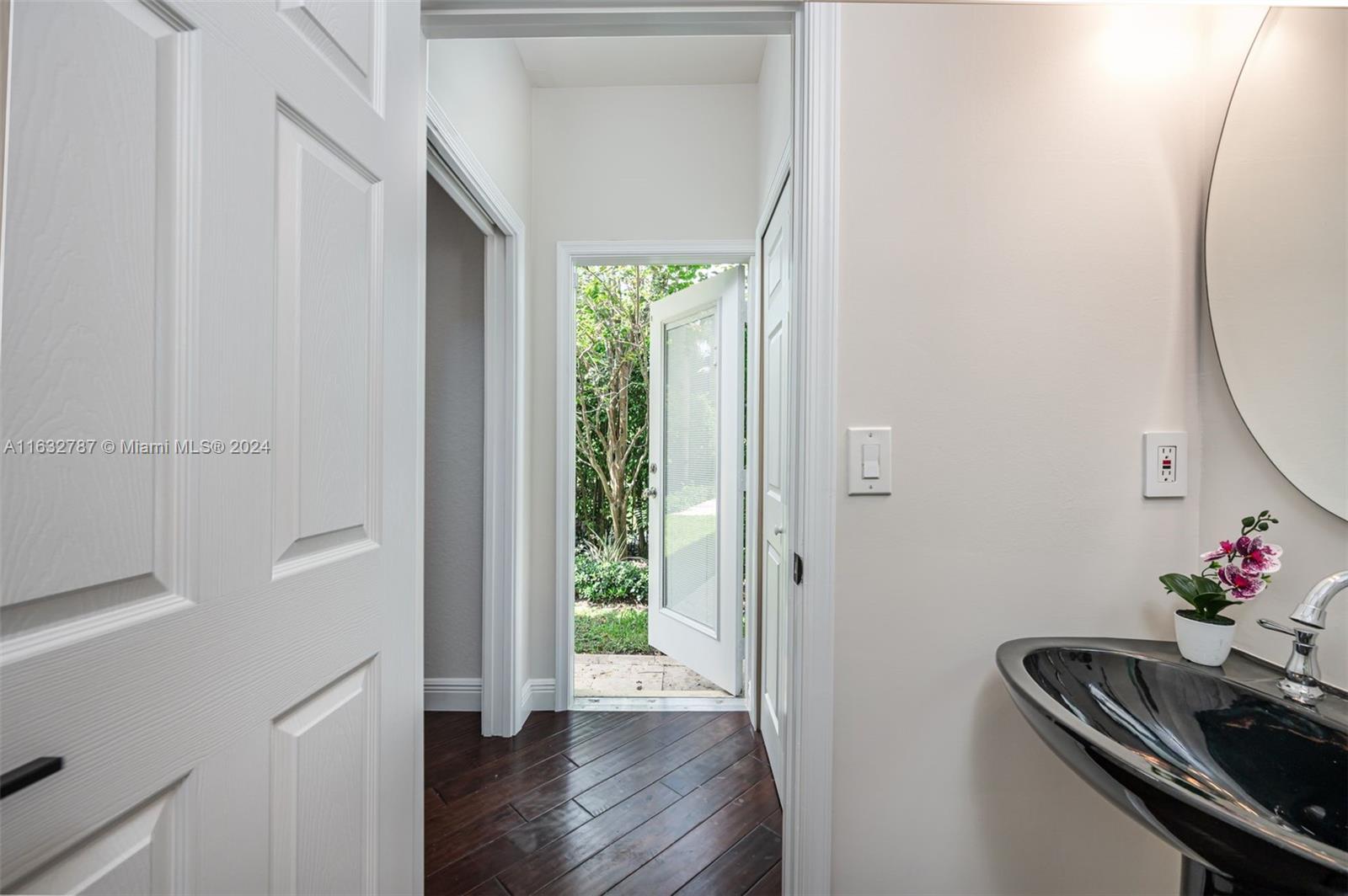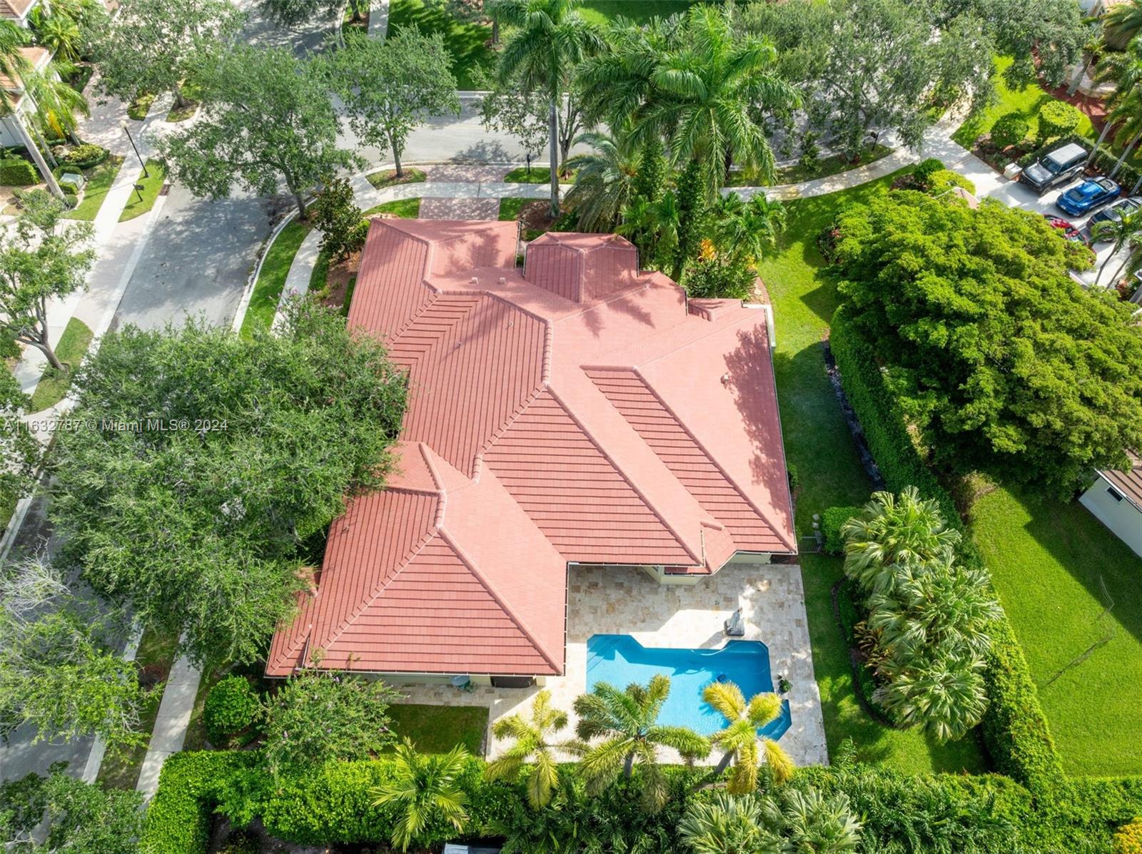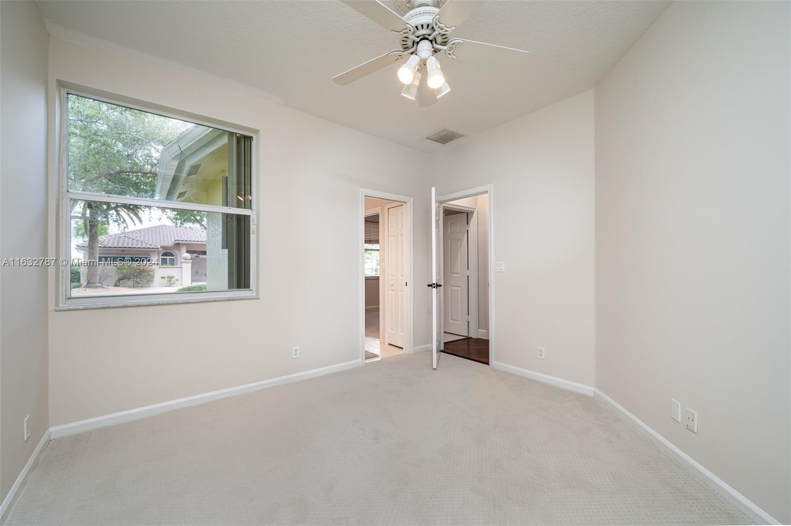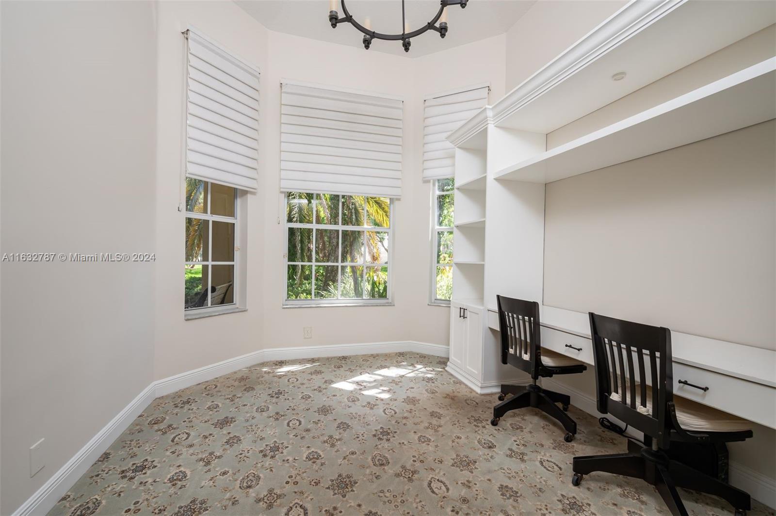 Large, one-story home located on a big corner lot in The Islands, 24-hour security guard-gated. Four bedrooms, office with built-ins, split design; three full baths & two half baths. Engineered hardwoods floors from foyer to formal living & dining areas, kitchen & family room. Main bedroom has two walk-in closets & a sitting area; main bathroom has a separate tub and two vanities & sinks. 2nd bedroom is an en-suite, 3rd & 4th bedrooms share a Jack-n-Jill bath. Half bath for guests near social areas & second half bath located by exit to pool. Modern pool & heated spa with travertine marble pavers in patio. Level 2 EV charger installed inside two-car Garage. Accordion shutters on all openings. Roof replaced in 2018 and maintained in 2023. Complete house painted inside and out in 2024.