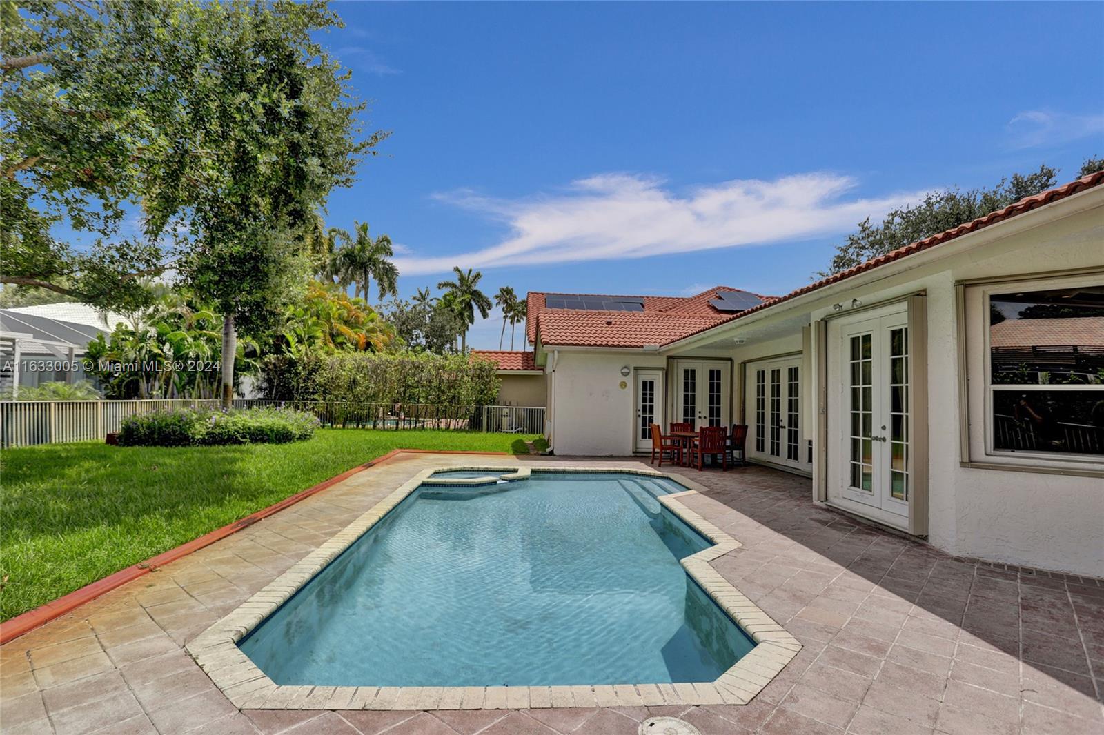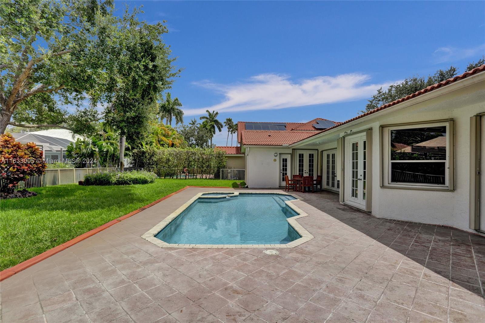 Nestled in the sought-after Grand Palms Golf and Country Club community, this exquisite 4-bed, 2.5-bath Mediterranean style home spans 2,821 sq ft of living space. This home is light, bright and airy, featuring an open-concept design, high ceilings, large bedrooms, walk in closets and a split bedroom layout, perfect for privacy, relaxation and entertaining. The spacious kitchen and living areas overlook the beautiful pool and yard area of this expansive 10,932 sq ft lot, which is great for BBQ's and entertaining. NEW ROOF BEING INSTALLED. Excellent location by Pines Blvd and I-75, you'll be in the heart of it all with easy access to nearby shops, restaurants, and entertainment. Don't miss the chance to call this charming oasis your new home! A true gem in a premier location!
