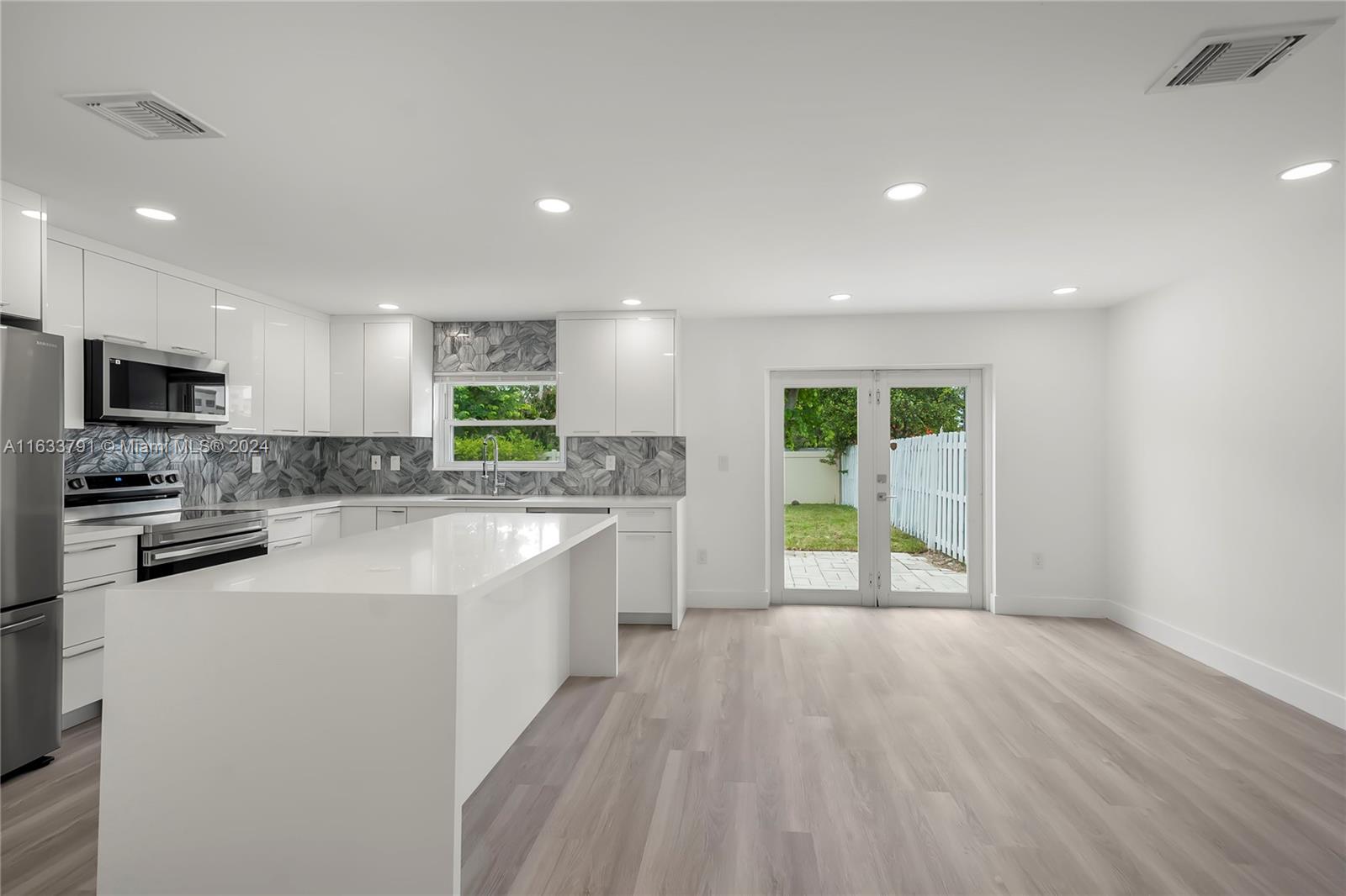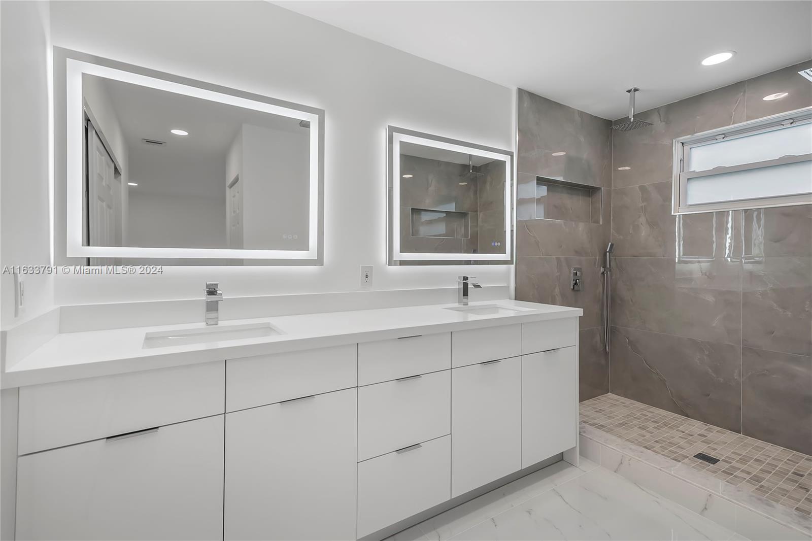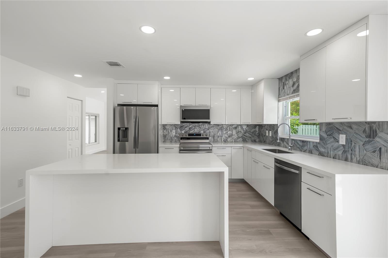 STUNNING !!! Beautifully remodeled and spacious 4bed/2.5bath home in the great neighborhood of Shenandoah in Davie with impact windows and newer roof. This home has been completely remodeled from head to toe with all high-end finishes. New modern kitchen with lacquered white cabinets, quartz counter with waterfall, designer glass tiles, large island with pop-up outlets and new stainless steel appliances. All bathrooms have been upgraded with porcelain tiles, modern vanities, lighted mirrors and double shower heads in the master bath. Brand new LVP waterproof flooring throughout, new doors and trims. New electrical panels and new hurricane grade garage door. Roof installed in 2022. Too many extras to list. Prime location surrounded by the best schools and close to everything. HURRY !