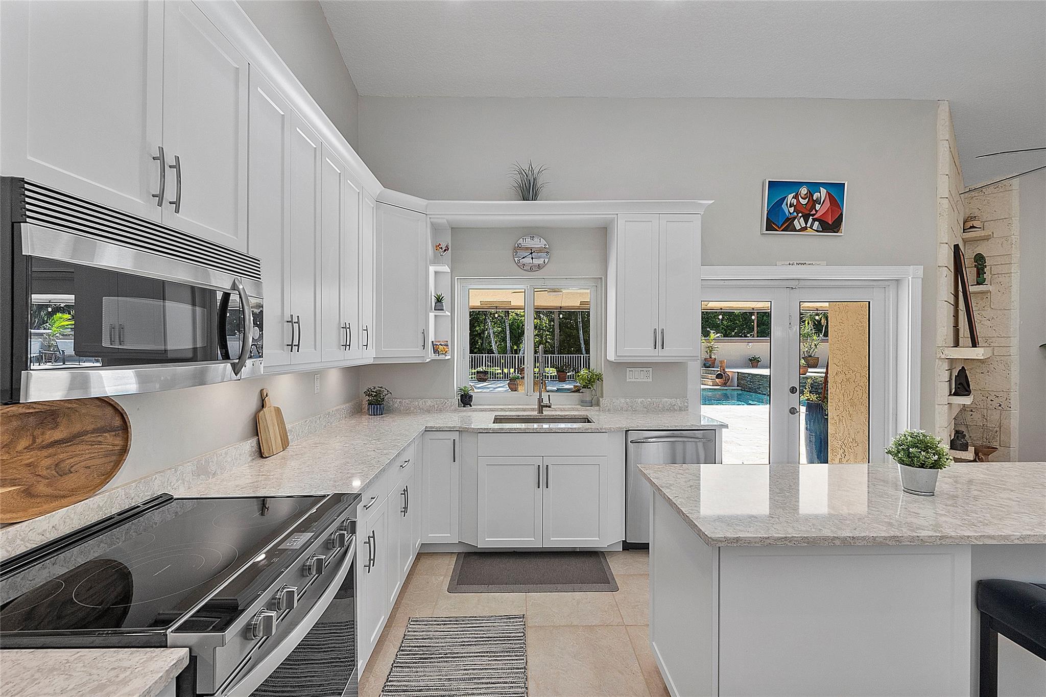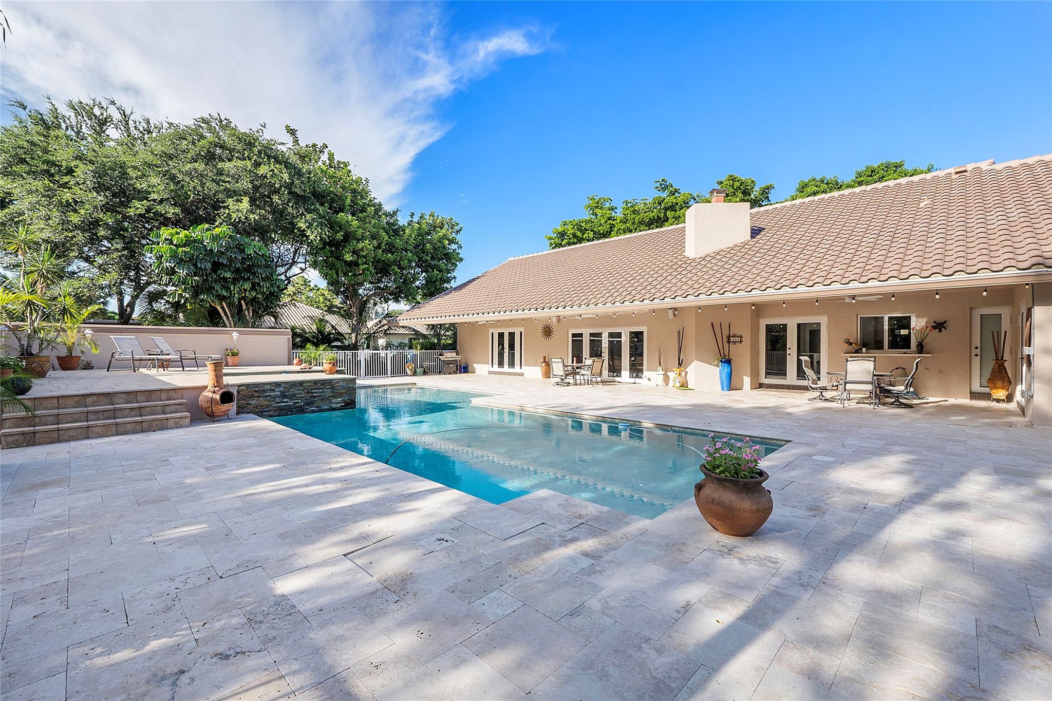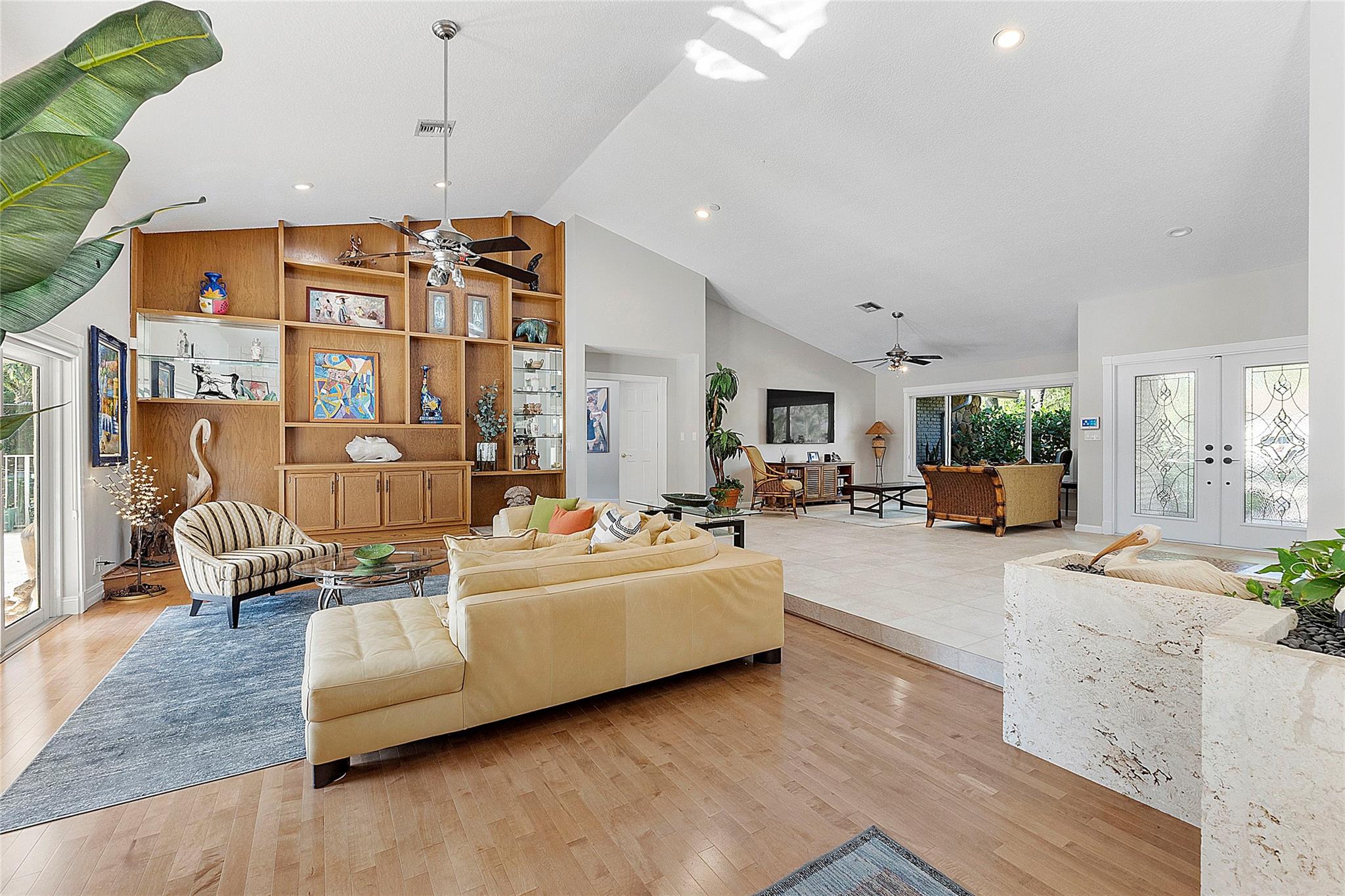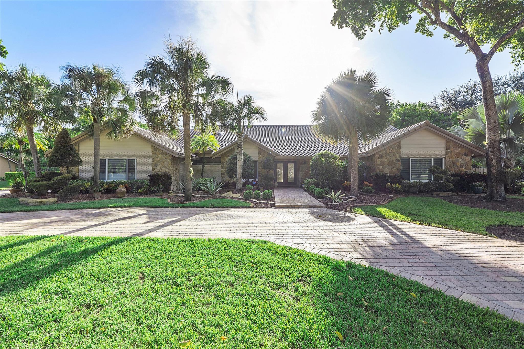 Welcome to this Stunning Estate on a sprawling one acre lot in gated Whispering Woods ~ featuring a Brand NEW Roof (2024). This updated home boasts 4 bedrooms + Den/Office and 3.5 bathrooms, Impact windows & doors, a new (2024) bright kitchen with 42" white wood cabinets, quartz counters & stainless-steel appliances. Enjoy a bonus pass through bar with great storage - perfect for entertaining. Custom oversized pool with spa & spacious travertine patio perfect for pool parties & BBQ's! The primary bedroom suite is a serene retreat w/access to the pool/spa and to the bonus room - use as a nursery, office, den or 5th bedroom - so many options! En suite guest bedroom to host friends. Nature surrounds this acre home w/gorgeous mature trees - a perfect outdoor playland for all ages! Must see!