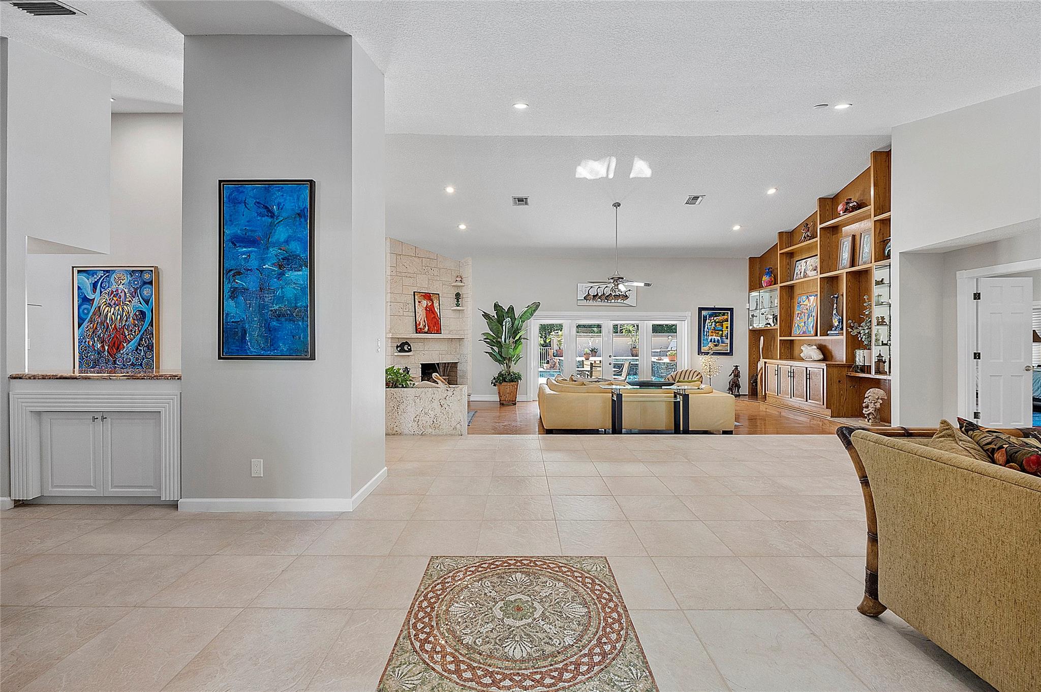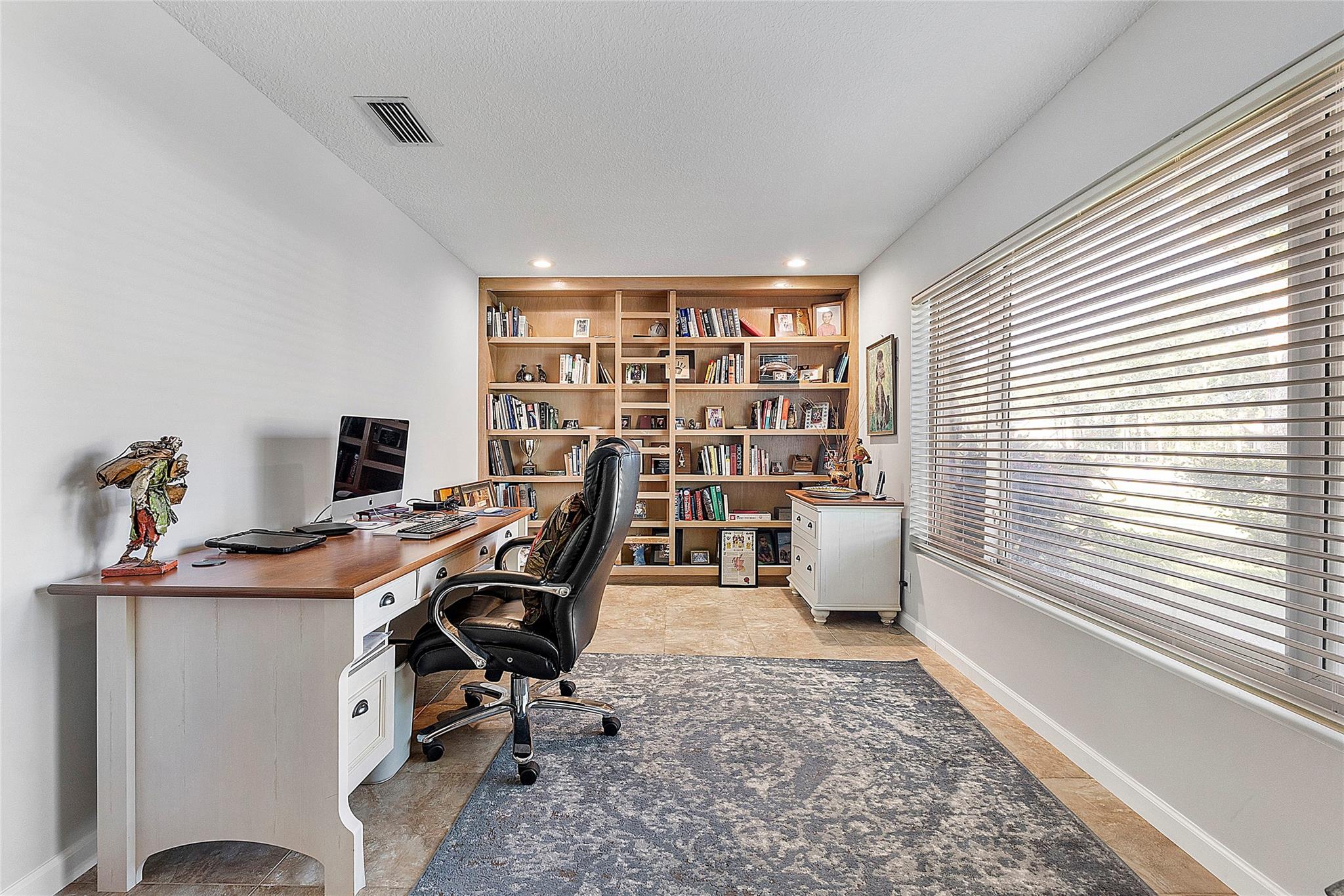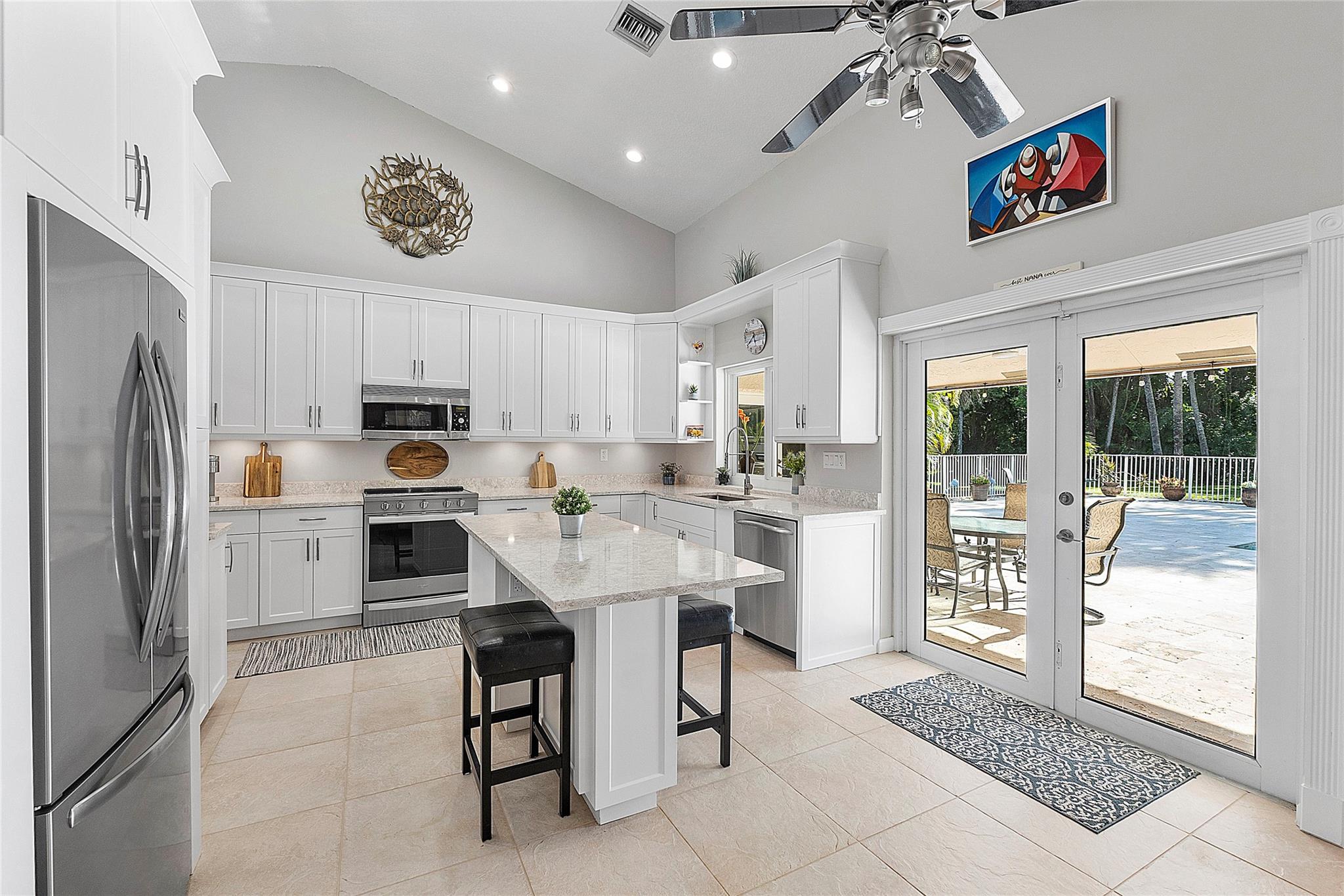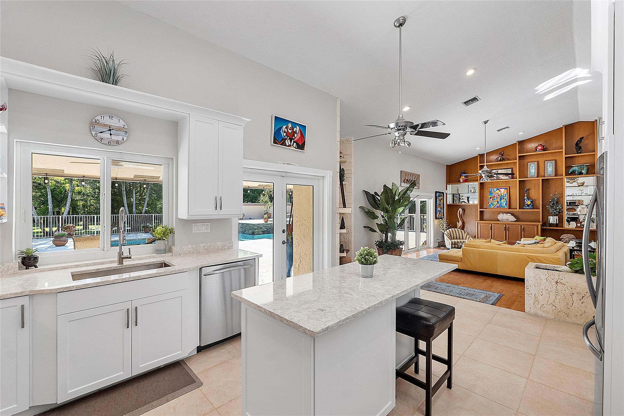 Welcome to this Stunning Estate on a sprawling one acre lot in gated Whispering Woods ~ featuring a Brand NEW Roof (2024). This updated home boasts 4 bedrooms + Den/Office and 3.5 bathrooms, Impact windows & doors, a new (2024) bright kitchen with 42" white wood cabinets, quartz counters & stainless-steel appliances. Enjoy a bonus pass through bar with great storage - perfect for entertaining. Custom oversized pool with spa & spacious travertine patio perfect for pool parties & BBQ's! The primary bedroom suite is a serene retreat w/access to the pool/spa and to the bonus room - use as a nursery, office, den or 5th bedroom - so many options! En suite guest bedroom to host friends. Nature surrounds this acre home w/gorgeous mature trees - a perfect outdoor playland for all ages! Must see!