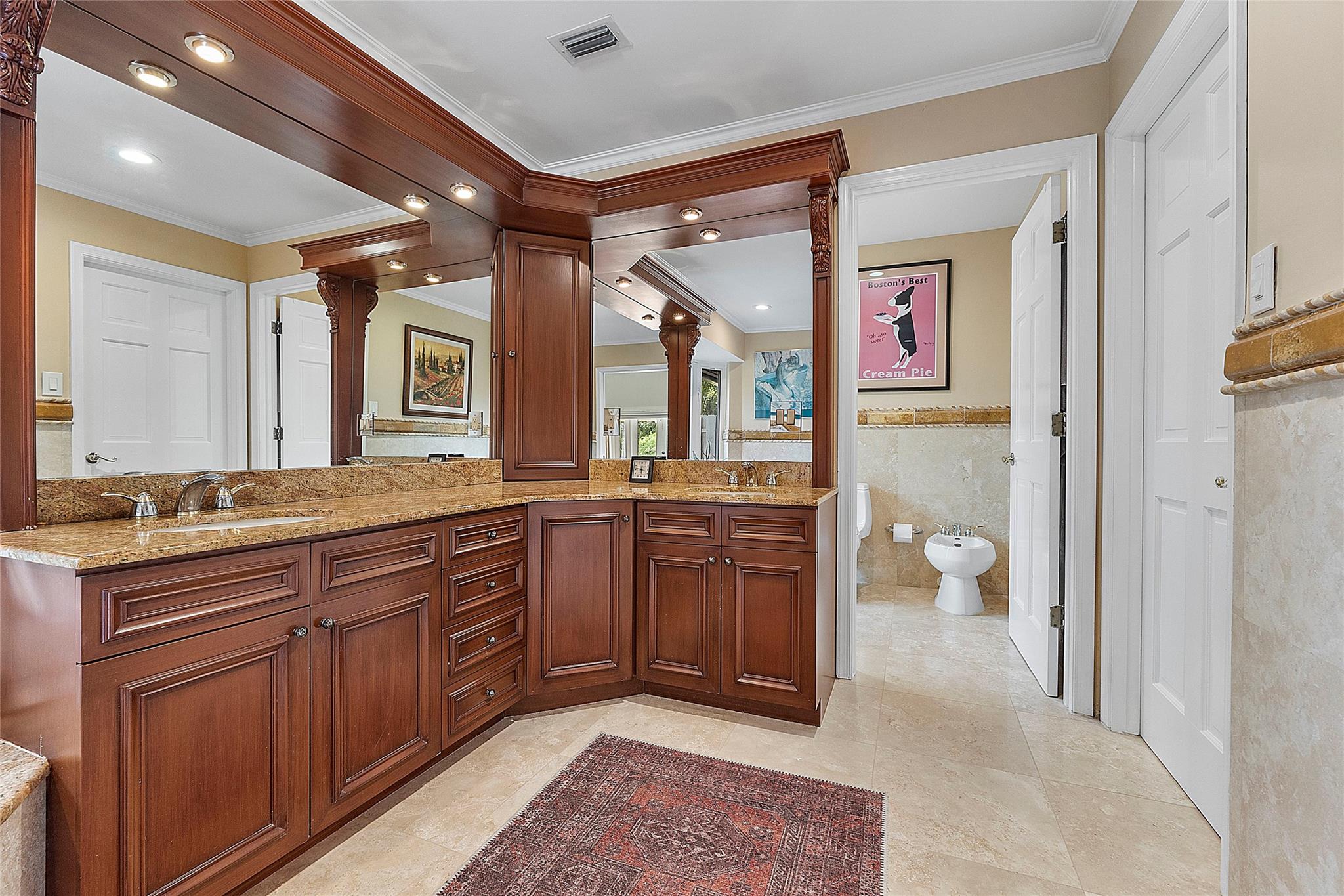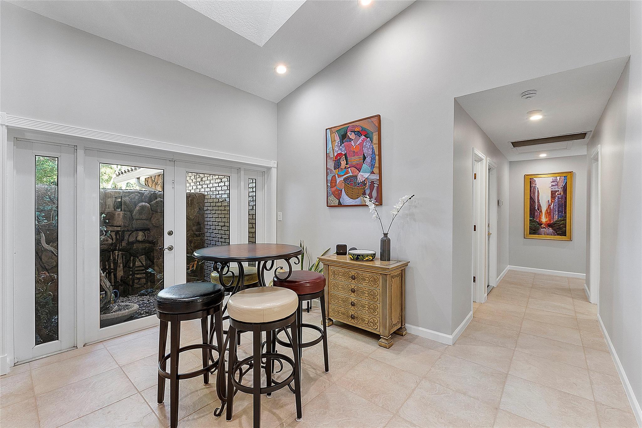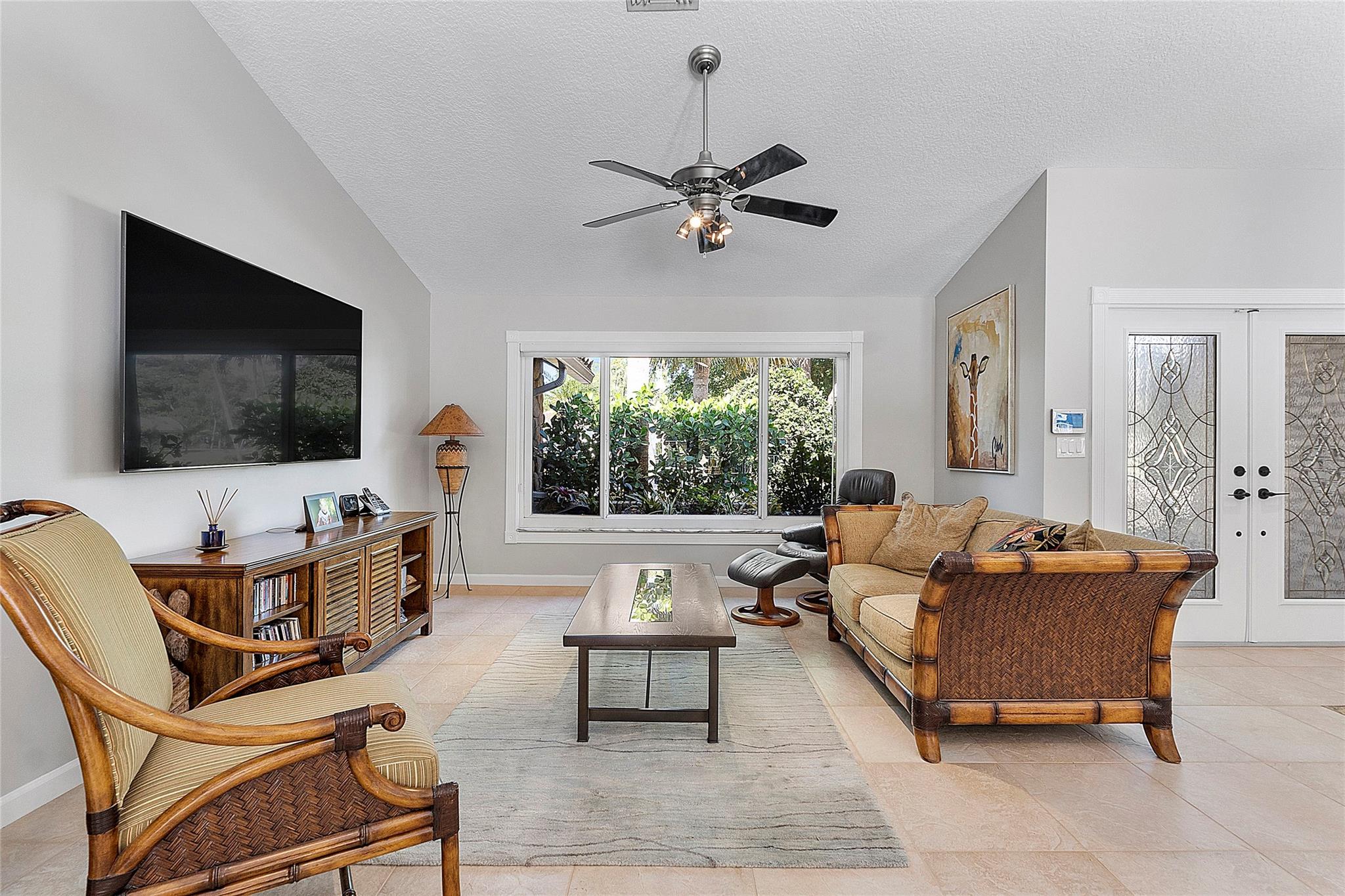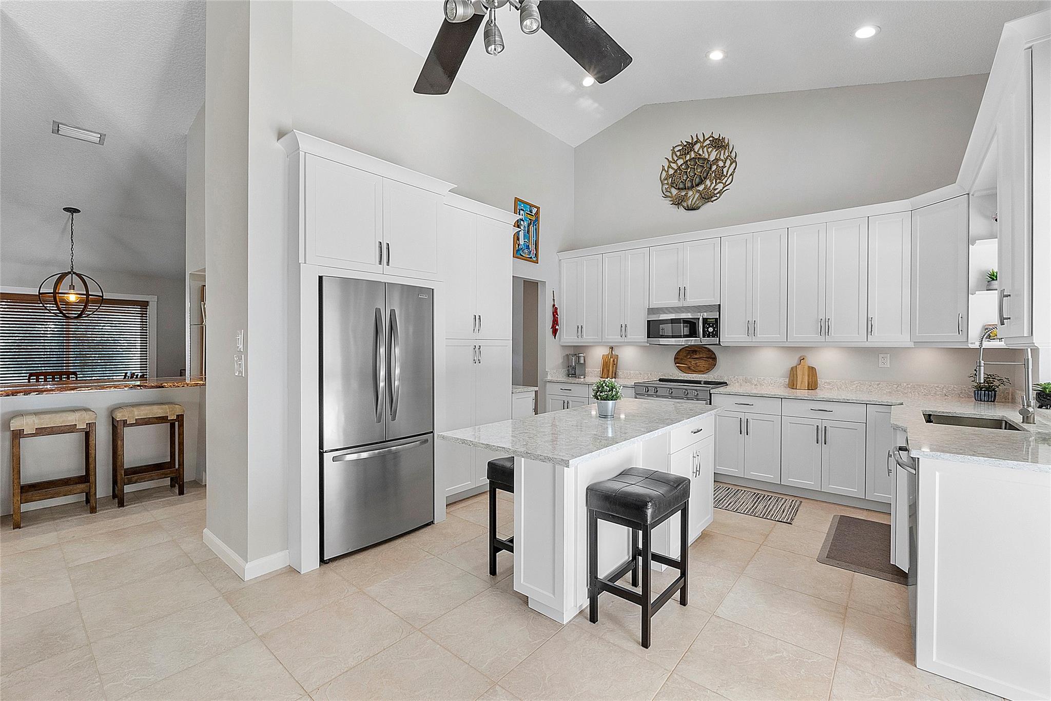 Welcome to this Stunning Estate on a sprawling one acre lot in gated Whispering Woods ~ featuring a Brand NEW Roof (2024). This updated home boasts 4 bedrooms + Den/Office and 3.5 bathrooms, Impact windows & doors, a new (2024) bright kitchen with 42" white wood cabinets, quartz counters & stainless-steel appliances. Enjoy a bonus pass through bar with great storage - perfect for entertaining. Custom oversized pool with spa & spacious travertine patio perfect for pool parties & BBQ's! The primary bedroom suite is a serene retreat w/access to the pool/spa and to the bonus room - use as a nursery, office, den or 5th bedroom - so many options! En suite guest bedroom to host friends. Nature surrounds this acre home w/gorgeous mature trees - a perfect outdoor playland for all ages! Must see!