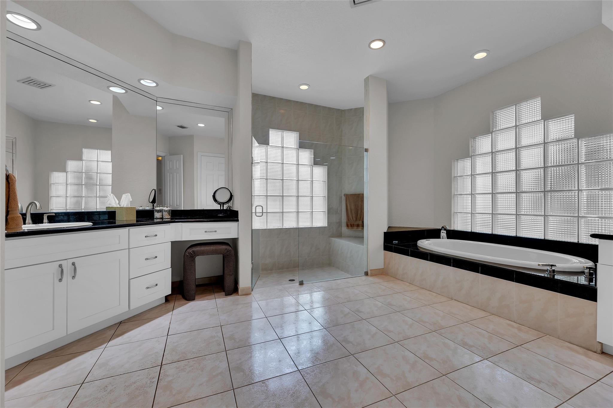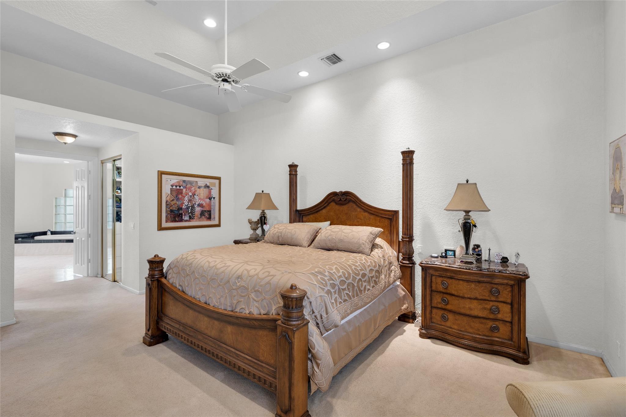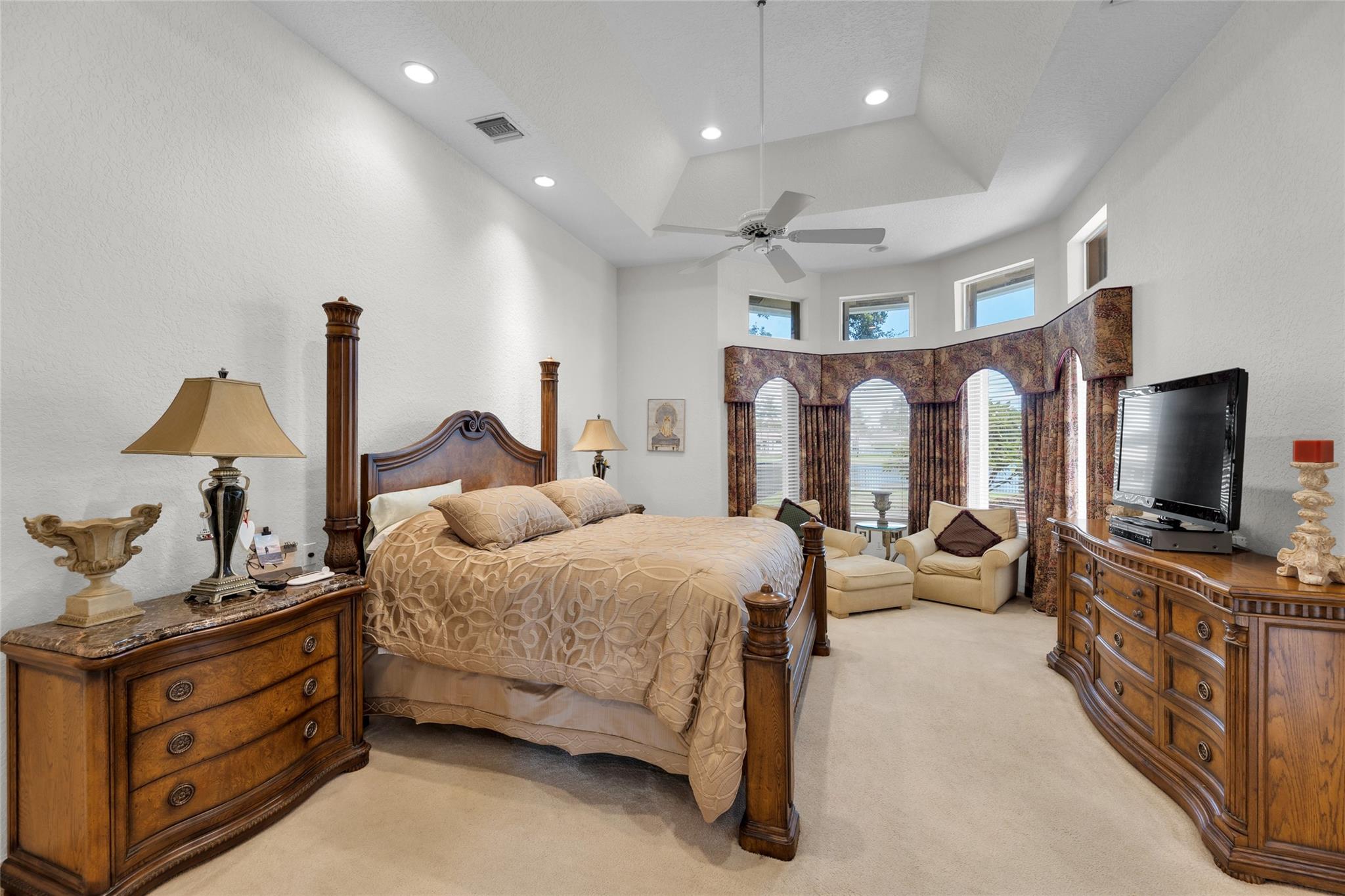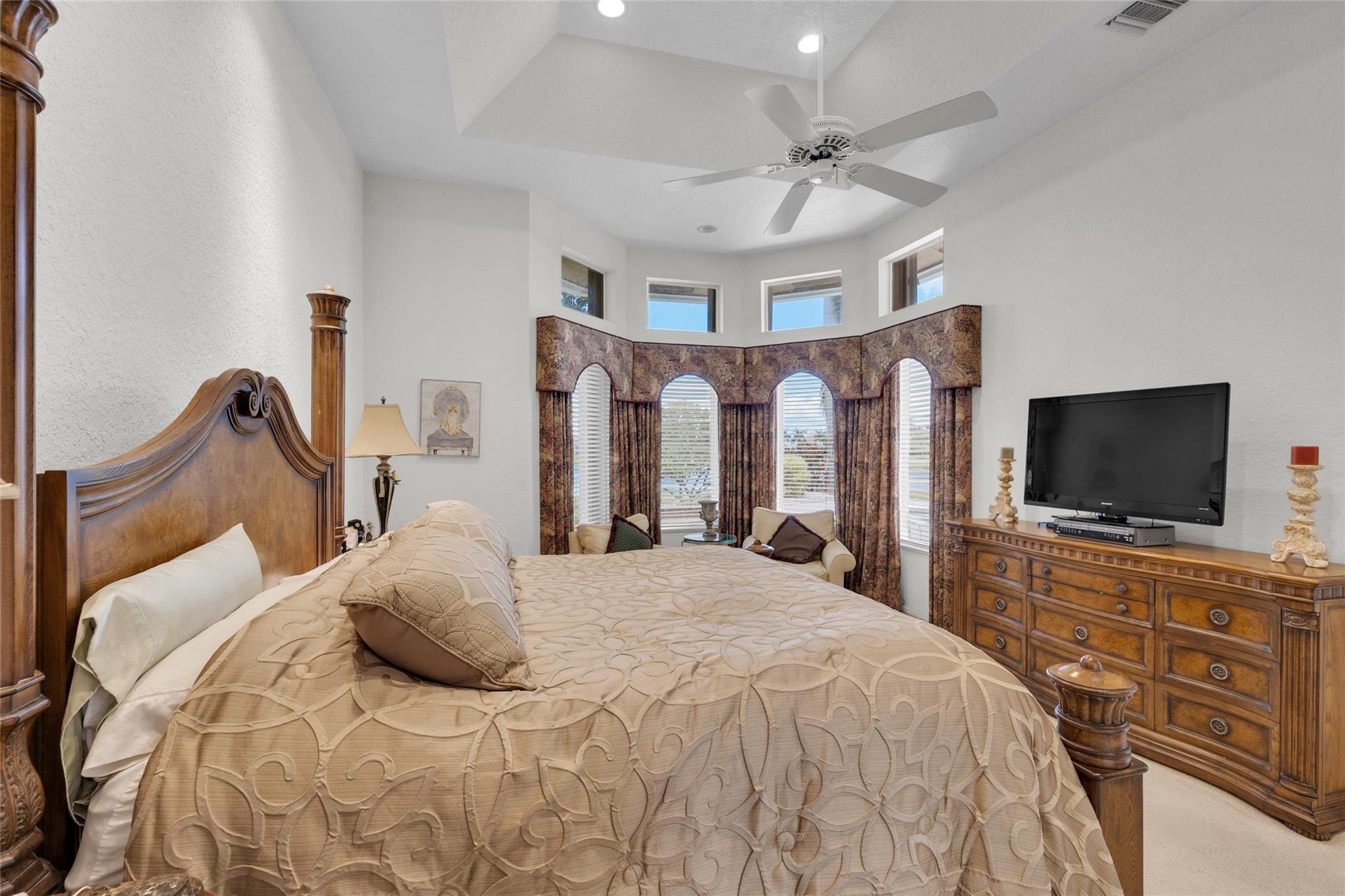 Active 8/14…Over 3500 sq ft single story home with 14'+ volume ceilings for a spacious open feel. This split bedroom plan allows for privacy. 3 car garage, 5 bed/4 bath home featuring very large bedrooms, wide lake views and a pool with jacuzzi and gas heat. Main bedroom has 2 large walk-in closets with built ins. Huge fully fenced yard perfect for children and pets. Oversized lot is between 1/2 and 3/4 of an acre. This home is newly painted with all doors and windows sealed and caulked. The roof is 7 years new and comes with a transferrable 15 year warranty. The roof is a 30 year roof and was recently re-certified. Recertification in attachments stating 23 years left on roof. Low HOA fees. Make this fabulous home your castle by adding your own personal touch. Your paradise awaits.