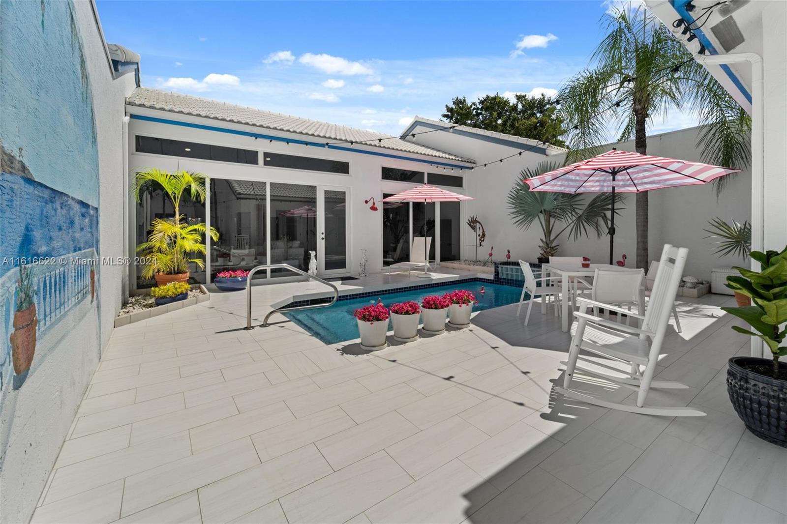 Welcome to your private oasis at Mykonos Court in the prestigious, gated Boca Country Club. This stunning & fully renovated with style 2 bed + den, 2.5-bath fee-simple townhome with garage boasts a spacious, open-concept layout that seamlessly integrates indoor and outdoor living. This residence features a beautifully designed private courtyard with a pool, fountain and Greek-inspired touches, and its backyard offers serene lake canal and Bocaire golf course views. The elegant design and tranquil setting make this home a perfect blend of luxury and relaxation. Situated in one of Boca Raton's most sought-after communities, you'll enjoy top-rated A schools, a low HOA, and no mandatory membership requirements.