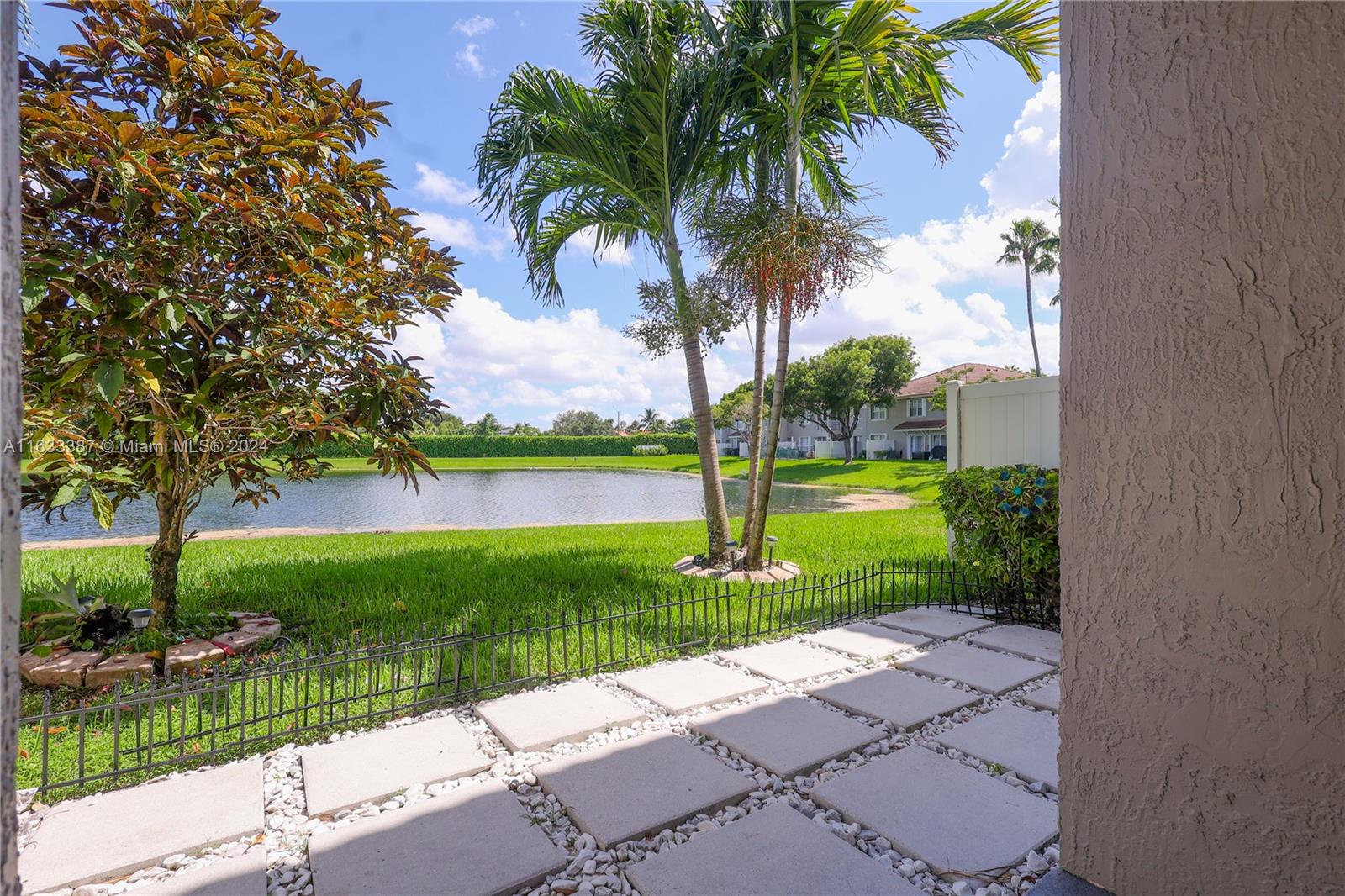 This is a beautiful 2 Bedroom/2 Bathroom and a half in the Bahia Community, with a serene Lake View. It is located within walking distance of the Somerset Academy Charter School A+ RATING. It is also centrally located for shopping, dining, and turnpike. Its impact doors and windows, a custom-made kitchen, and bookcases highlight the incredible lake view.