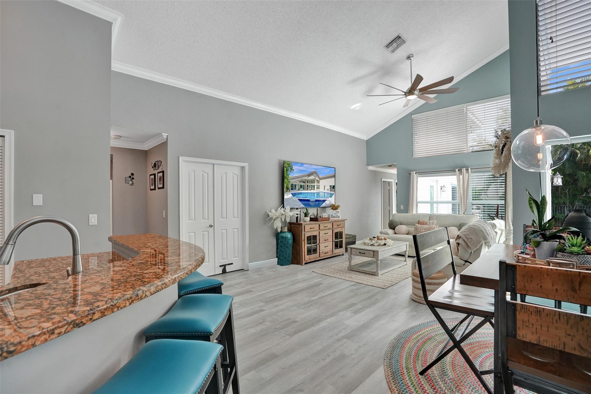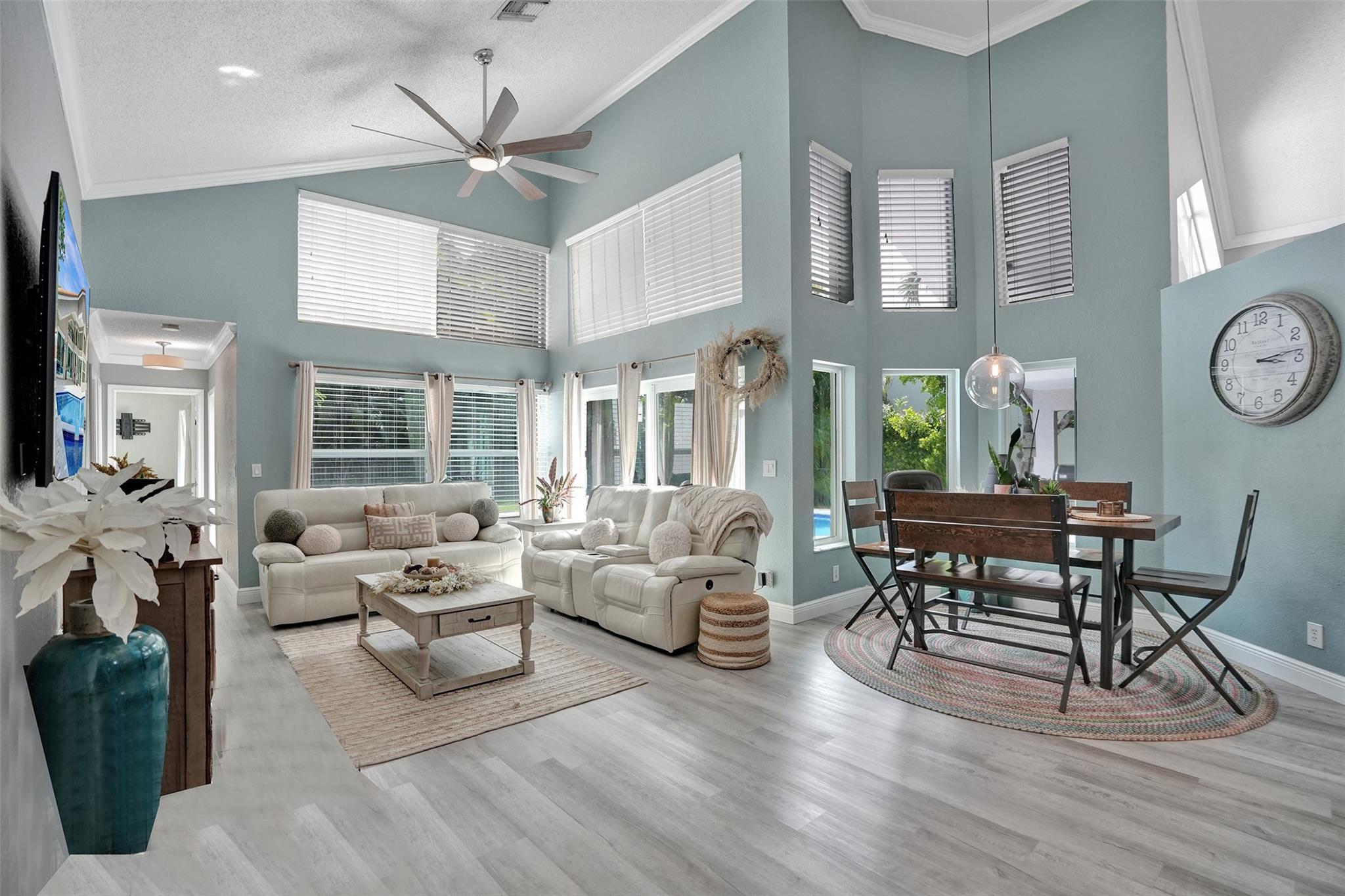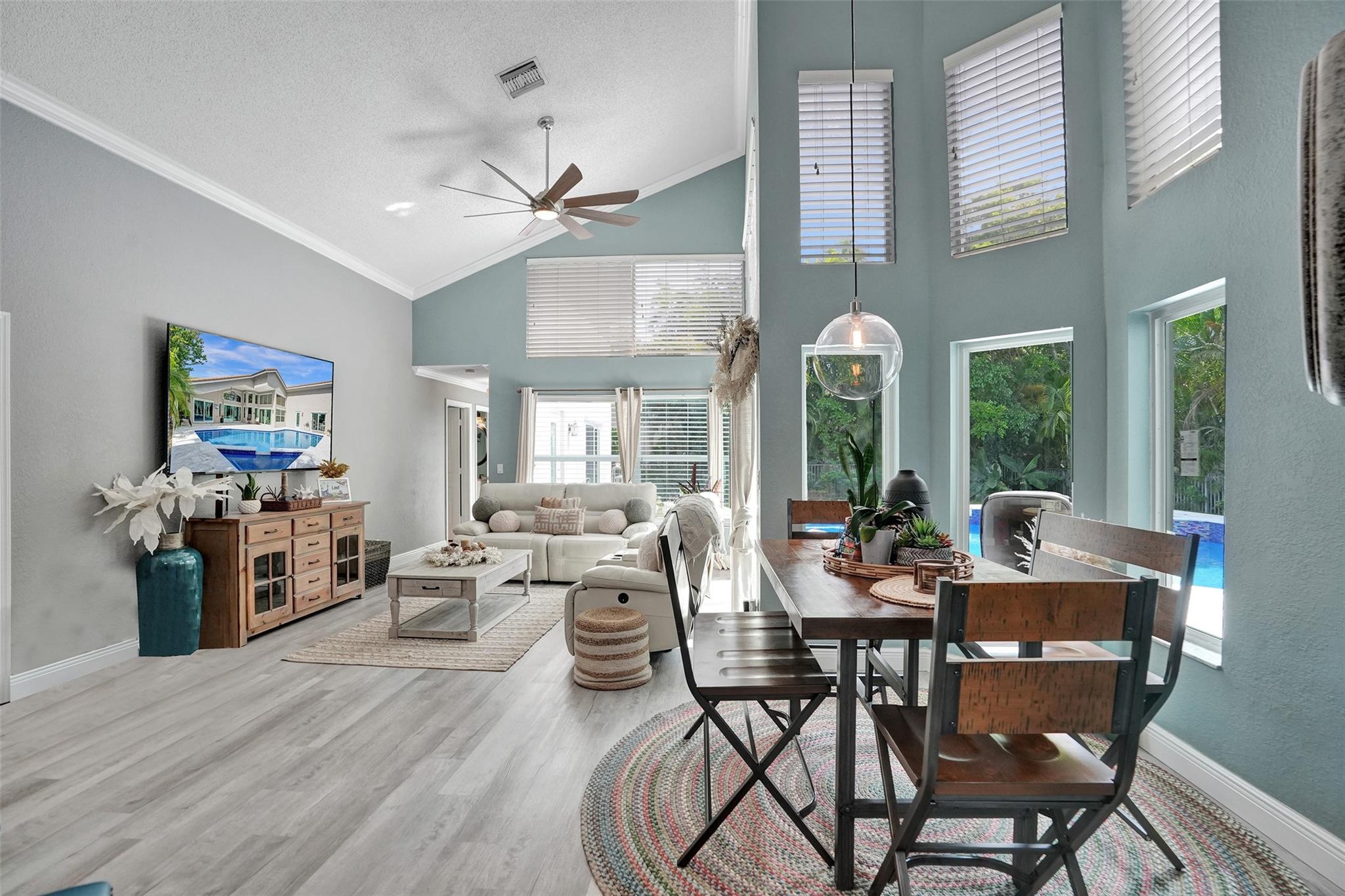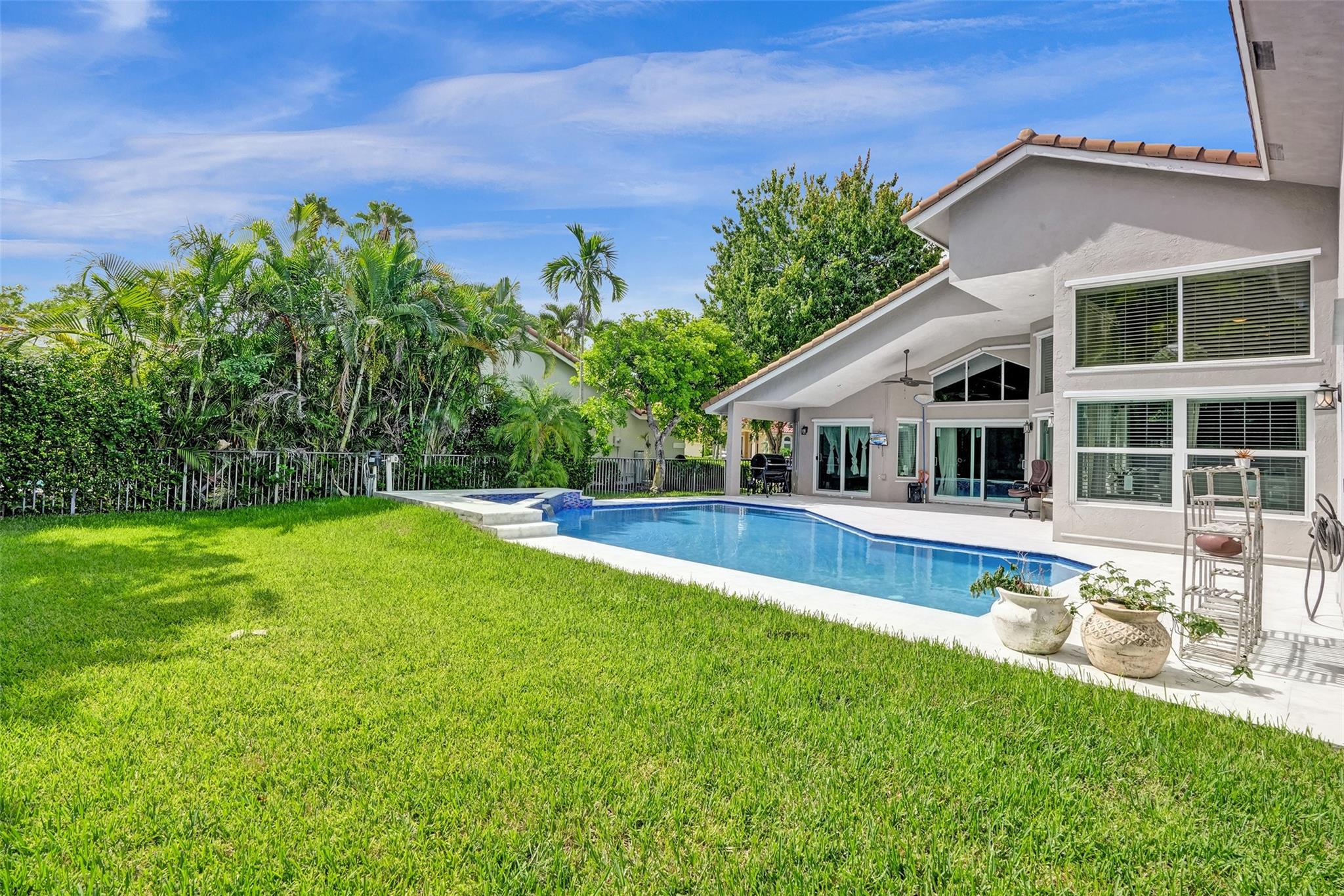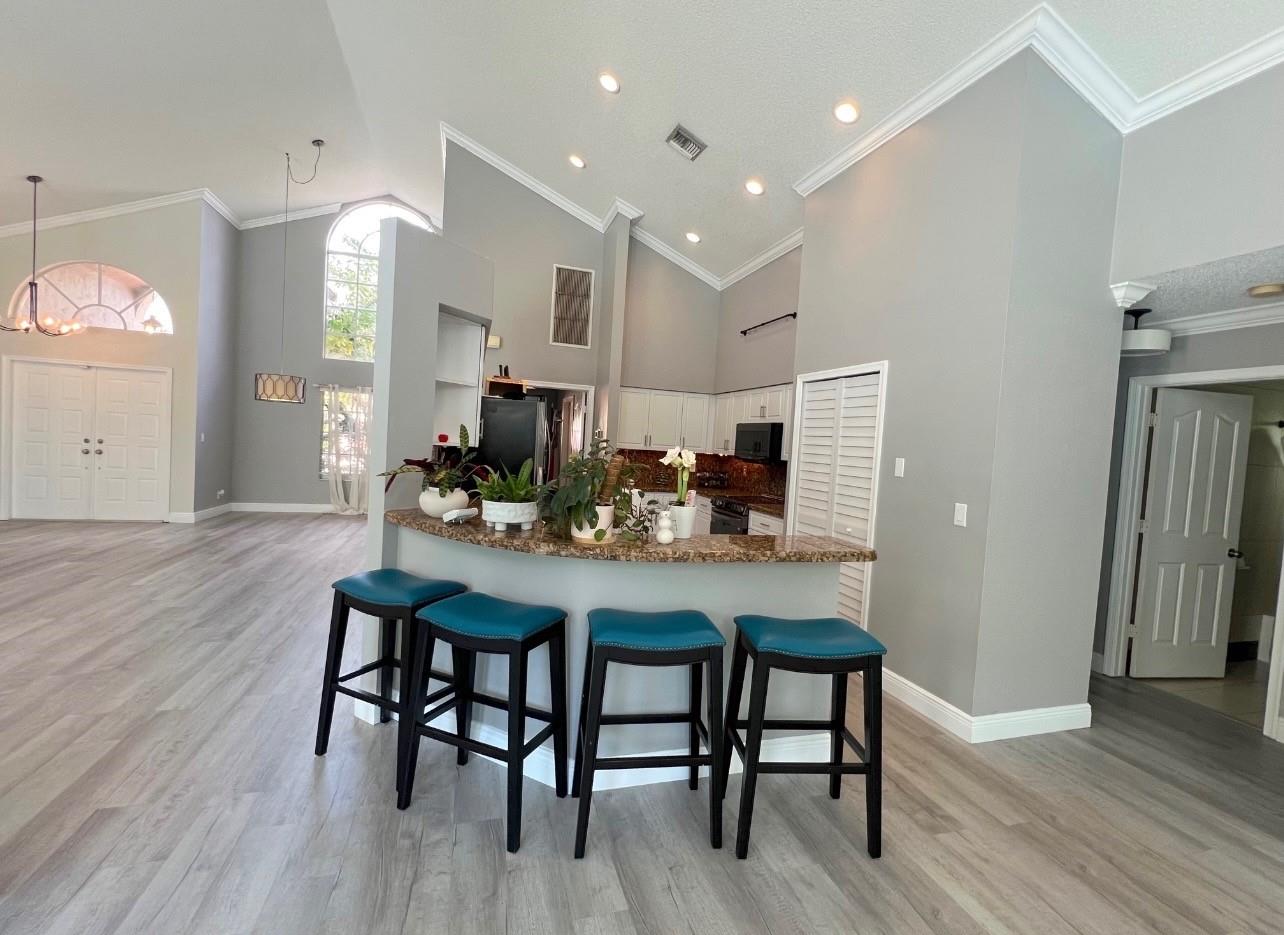 Discover luxury living at its best in Eagle Trace. This stunning 5 bedroom & 3 bath home is set on a spacious 1/4-acre plus lot. It features a luxury pool perfect for entertaining & relaxation. Enjoy an open floor plan with spectacular vaulted ceilings, extra family room & second dining area. Located on a serene cul-de-sac, offering a peaceful retreat. Upgraded granite countertops, stainless steel appliances, and high-quality flooring throughout. The backyard is a private fenced in oasis. Eagle Trace provides gated and manned security, low HOA fees, and no application or approval. The community is highly sought-after, offering amenities such as a clubhouse, tennis courts, and more. Don't miss out on this exceptional opportunity to own a home in Coral Springs' most coveted neighborhood.