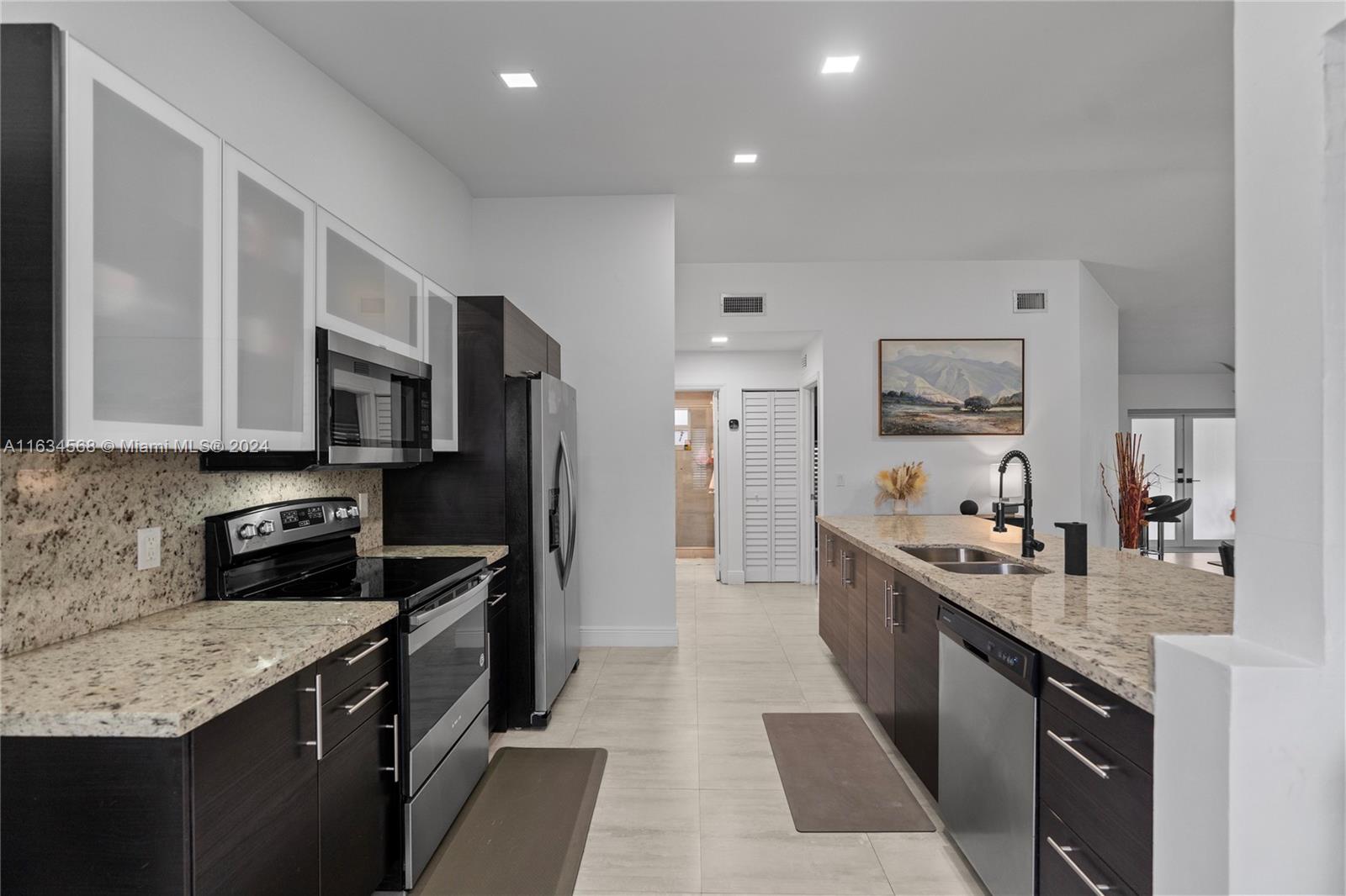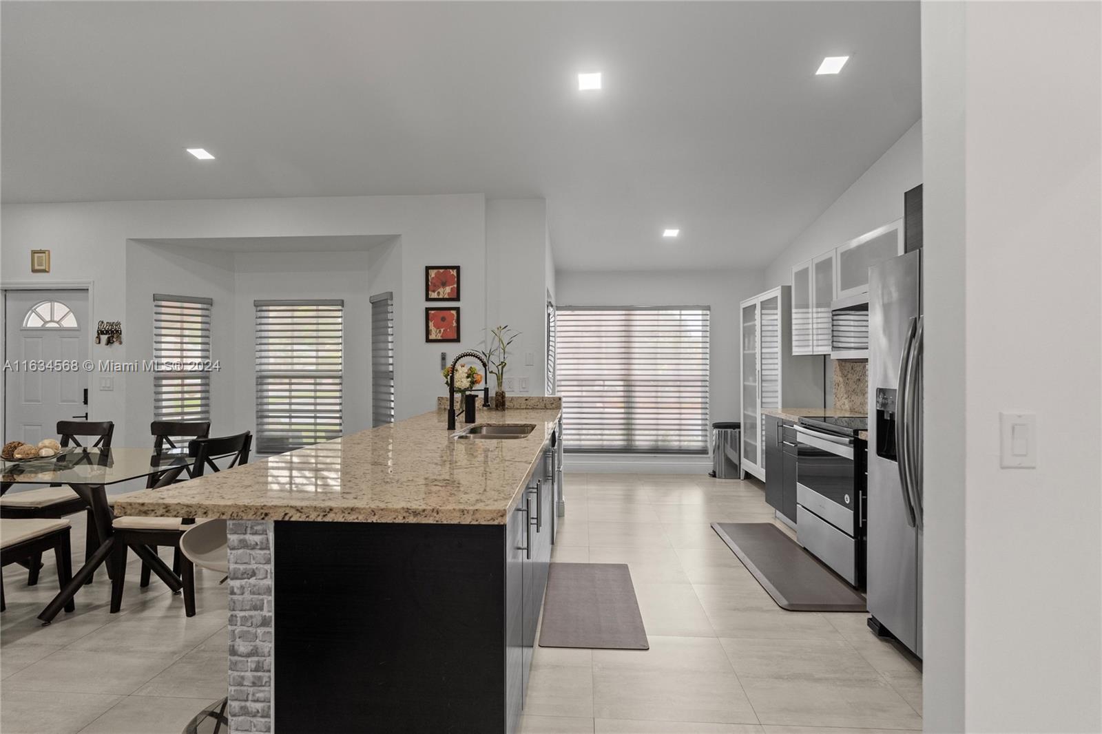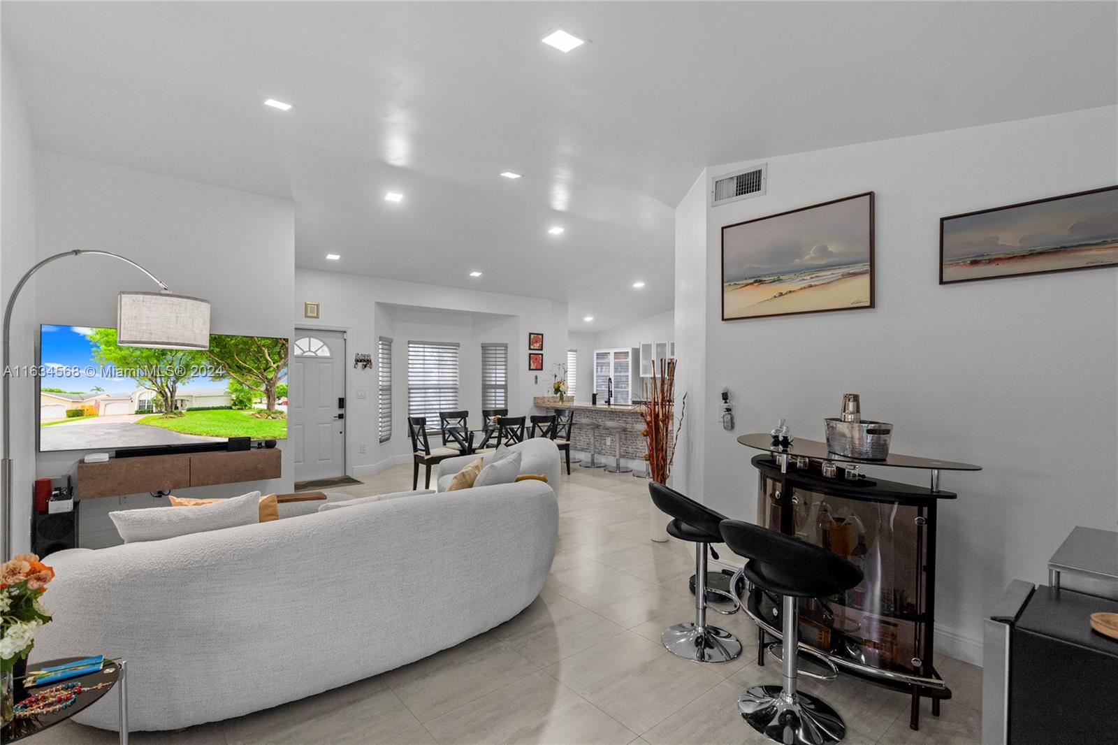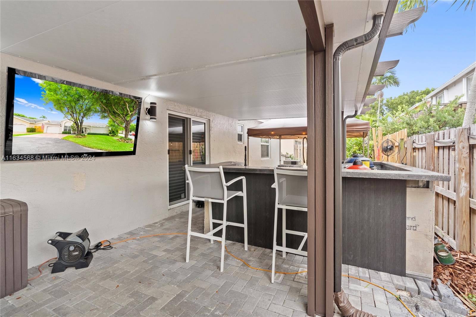 This stunning single-family home boasts 3 beds 2 baths, the fully renovated interior, modern open concept design, granite counters, ss appliances. New roof and A/C, impact windows, impact doors, this home offers peace of mind and comfort for years to come. Located in a gated community, this one-story corner with a 5,022 sq ft lot home offers privacy and security for you and your loved ones. The community itself is a paradise, with a clubhouse, tennis court, Paddle Tennis, Children's Water Park, gym, restaurant, and business center. You'll feel like you're living in a luxurious resort every day! Step outside to the paver patio with an outdoor kitchen, where you can host barbecues and enjoy the beautiful Florida weather. The community pool is perfect for cooling off on hot summer days.