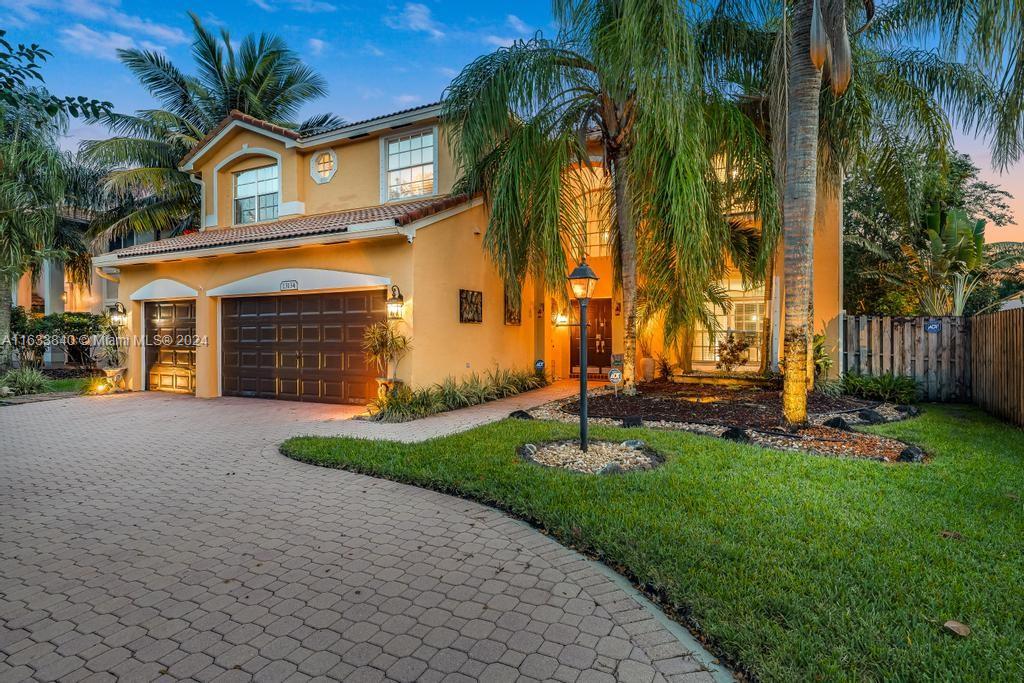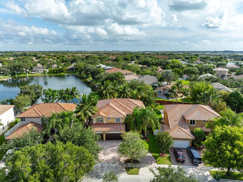 Immaculately kept lakefront property located in sought after gated community of Pembroke Falls. This stunning two-story residence boasts 5 bedrooms, 4 bathrooms, and a 3-car garage. One of the bedrooms with a full bath is on the first floor. The oversize master suite features an inviting sitting area. The kitchen has wood cabinets, granite countertops, and SS appliances. The backyard is an oasis of tranquility with a covered patio, ideal for enjoying relaxing lake views and ample space for a pool. Pembroke Falls offers first-class amenities, including a grand clubhouse, heated pool, gym, and courts for tennis, pickleball, and basketball. Maintenance included services: Cable, 24-hour security, alarm system, and fiber optic internet. This extraordinary home is a rare find, come see it!