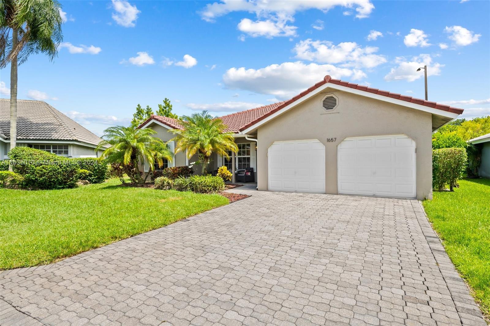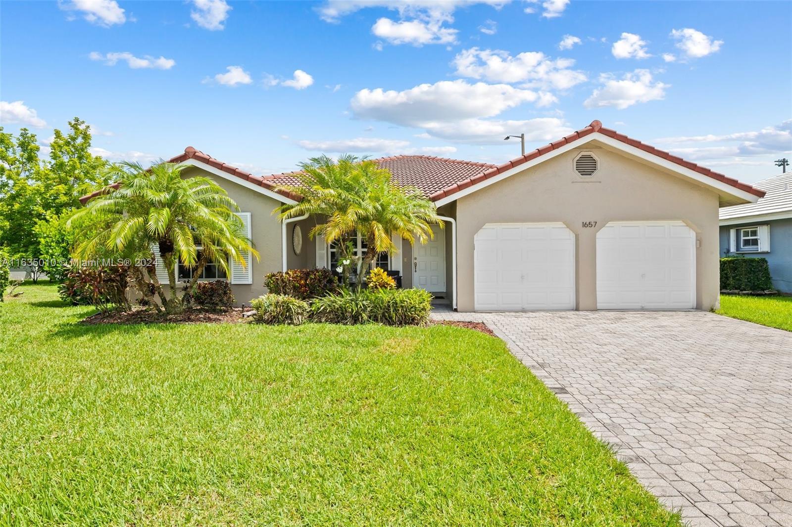 Welcome to 1657 NW 106th Lane in the sought-after Springs Hamlet @ Cypress Run! This beautifully maintained 3-bed, 2-bath home offers a well-designed layout with volume ceilings & a split bedroom plan. The kitchen & bathrooms were recently updated in 2021, and you'll find all-new kitchen appliances, as well as a newer washer & dryer (2022).The home features new ceiling fans, lighting fixtures, & window treatments, along with built-out closets. Freshly painted inside & out, the property boasts a fenced-in backyard & an enclosed sunroom with air conditioning. Additionally, the home is equipped with high-quality hurricane impact windows & doors. Centrally located near the Sawgrass Expressway, parks, shopping, & dining. Schedule a viewing today to see all that this fantastic home has to offer!