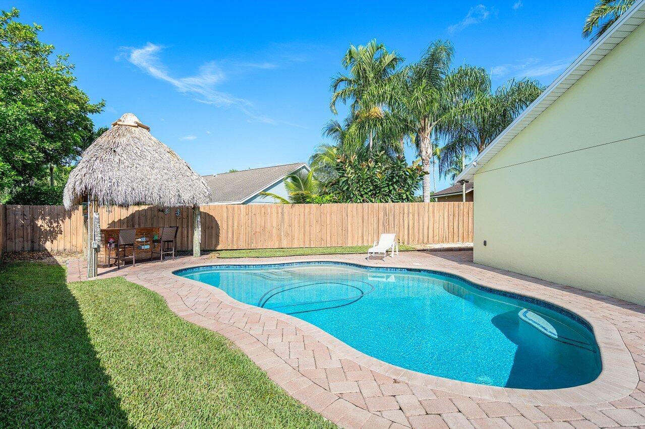AMAZING single-family home! CBS construction, ROOF 2019, IMPACT GLASS windows/doors, REMODELED BATHROOMS, FENCED YARD, SALT WATER POOL, PAVER PATIO, BACKYARD TIKI HUT.... This is a dream home! Perfectly located in the cul-de-sac at the end of Katmandu Ct. This home is lovingly maintained with an updated kitchen, remodeled bathrooms, crown molding accents, vaulted ceilings and stainless-steel appliances. Surrounded with windows and natural light, the rooms are spacious and bright. The backyard is private & fully fenced. Solar lights have been added to the fence, providing a beautiful evening ambiance. A paver patio wraps around the back of the house and surrounds a freeform salt water pool. The Tiki Hut, with Island-style bar, provides electricity for lights and television.