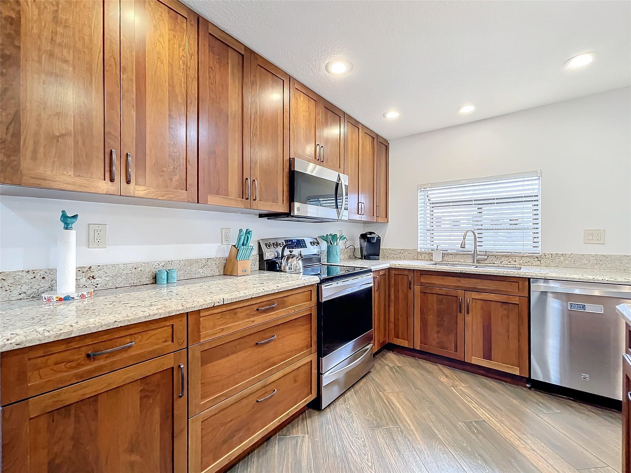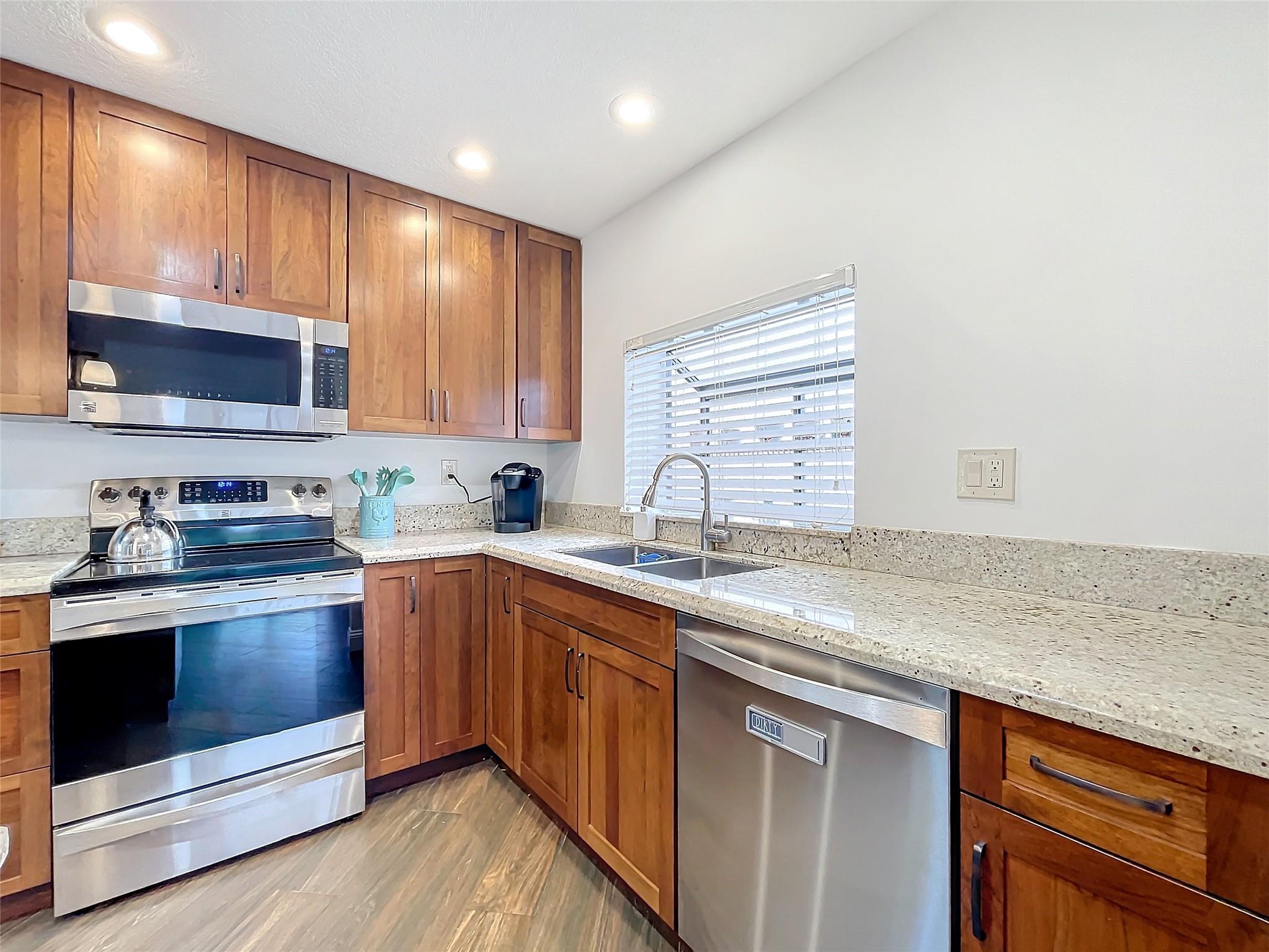 Welcome to 9309 Chelsea Drive South in the highly desirable, tree-lined community of Chelsea One, Plantation. This charming 2 BD, 2.5 BA townhome has been freshly painted & features a beautifully upgraded eat-in kitchen & peninsula, vaulted ceilings & oversized screened in patio. Recently replumbed to copper piping (NO POLY PIPES), accordion shutters & a newer A/C allow peace of mind. Upstairs primary has been enclosed from original loft for added privacy while the downstairs primary has double French doors, patio slider (both with large walk-in closets & double sinks. HOA inclds. Roof (~ 5 yrs old), ext. insurance, lawn/landscaping maint. & common area maint. This prime location is minutes from the coveted "Central Park," easily accessible through the community's private back gate.