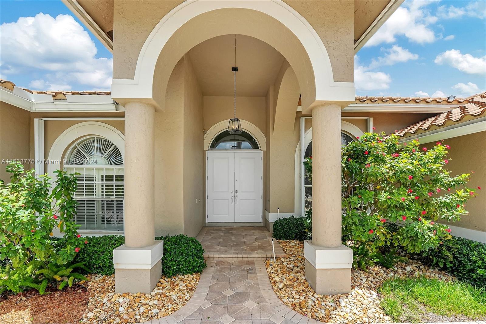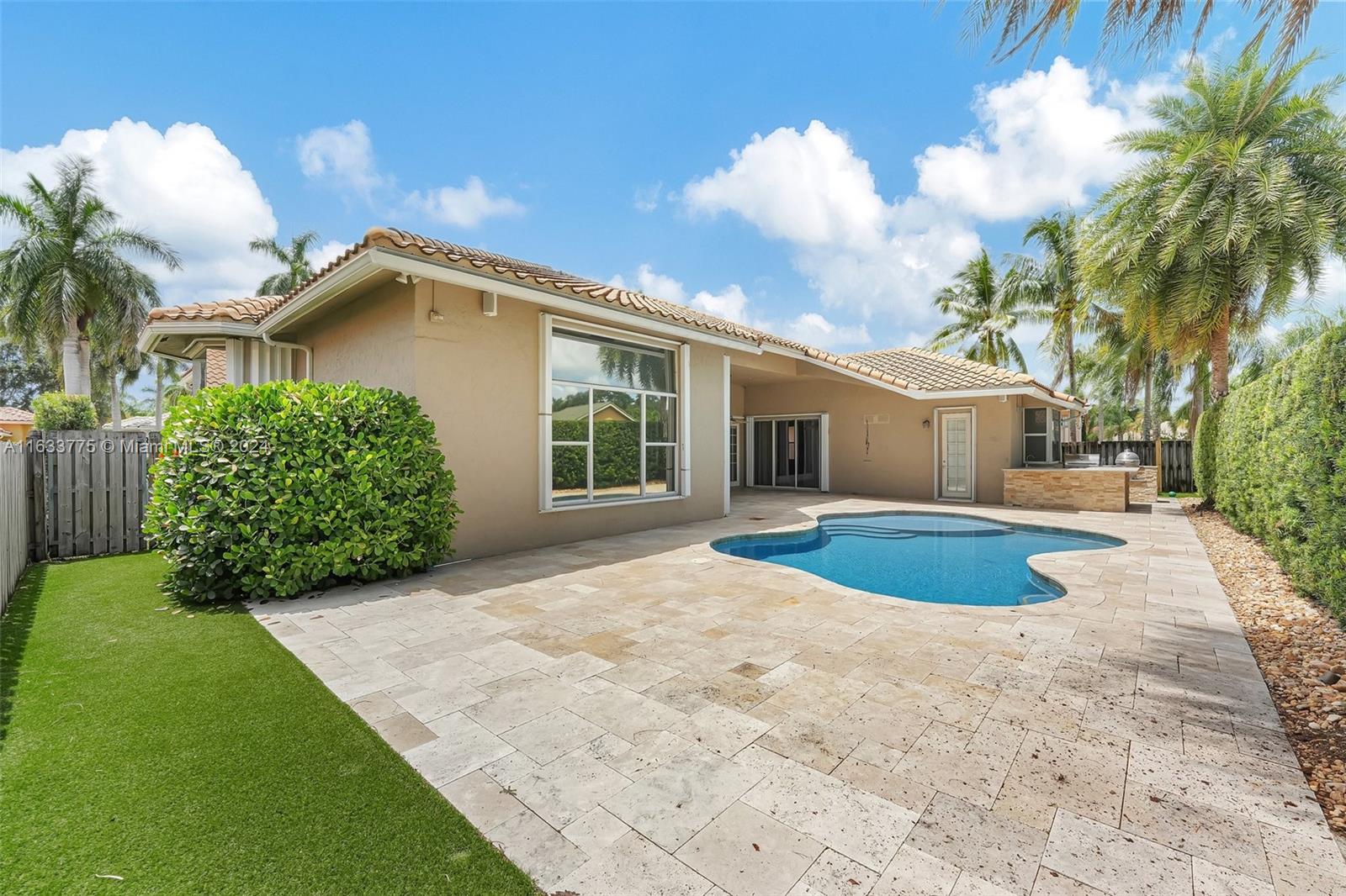 Stunning 4/3.5 home in Westport! Roof (2019). AC (2022). Impact glass windows, 12' impact sling glass door, accordion shutters & impact garage door. Pool/travertine deck built in 2013 by Van Kirk Pools features Salt Water system and heater. Open layout w/ 12' volume ceilings & 8' interior doors. Renovated kitchen w/ quartz counter tops, large island, double oven w/ warming drawer, paneled fridge and dishwasher, built-in wine fridge, microwave drawer & pantry. Tile plank flooring throughout main living areas, real hardwood in primary. Built in cabinets in all closets. Primary bath - stand alone tub, shower w/ frameless enclosure. Sonos system & ADT sec w/ 11 cameras (interior/exterior). Custom curtains & Roman shades in living area & plantation shutters in secondary rooms.