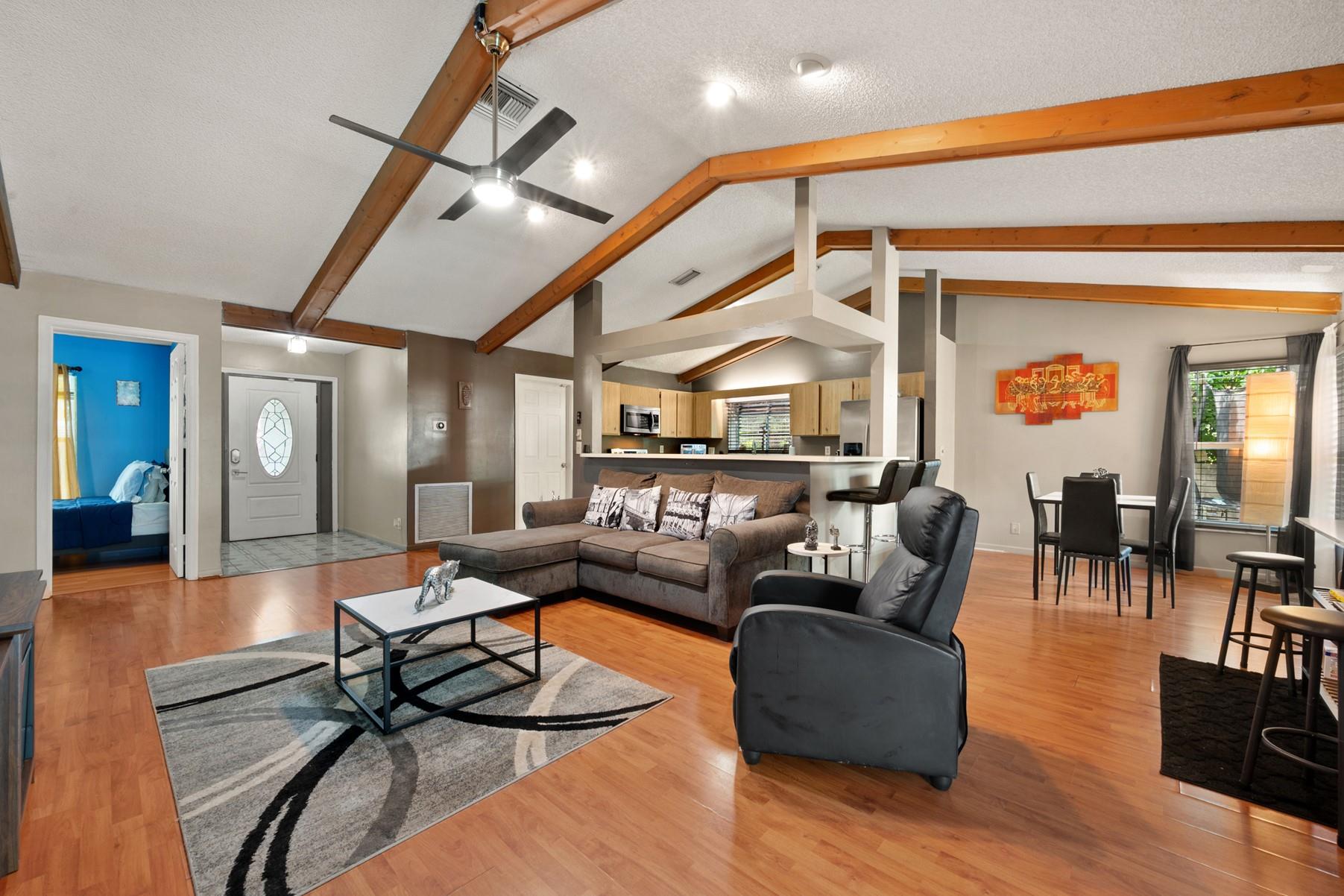 This charming 3-bedroom, 2-bathroom home blends comfort and convenience. Located at the end of a cul-de-sac on a private street, it features an oversized lot with expansive front and back yards. Enjoy your private pool oasis right in your backyard! The home includes a washer and dryer, a refrigerator in the bar area, an outdoor grill, and all the kitchen equipment. Renovations include a new roof, fresh paint, a backyard pergola with a TV and speakers, an energy-efficient pool water pump, and a brand new heat line water heater. The HOA covers common areas, including the tennis court, BBQ area, laundry facilities, lake, country club, and more. Close to top-rated schools, hospitals, shopping, dining, airports, and major highways, this home offers a perfect family atmosphere. Don't miss out!