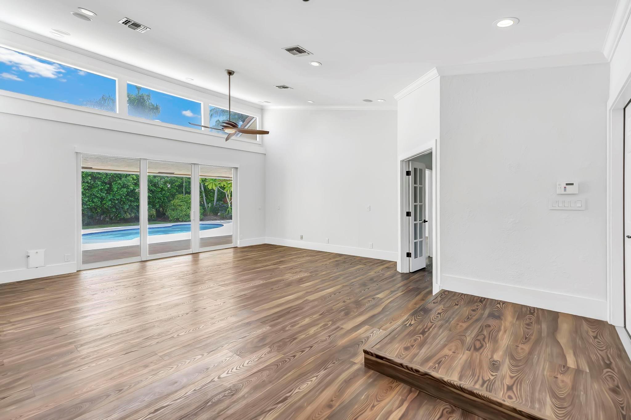 Stunning 4-bedroom+ Den/Office , 3-bathroom corner home over 2,700 sqft , split floor floorplan with a 2-car garage and Remodeled salt water heated pool w/ travertine deck, situated on a CUL-DE-SAC with an expansive corner lot over 14,000 sqft in a great school district. ROOF IS 2006. The newly remodeled kitchen features stainless steel appliances and elegant quartz countertops. The home is equipped with FULL IMPACT WINDOWS AND DOORS throughout, including SLIDING DOORS. Updated flooring. The master bedroom offers a large walk-in closet followed spacious master bath with a Jacuzzi whirlpool tub and a shower with body jets. The resort-like backyard includes a kidney-shaped saltwater pool with a sun shelf, a covered lanai with an outdoor kitchen & artificial grass. Privacy Fence 2023. No HOA