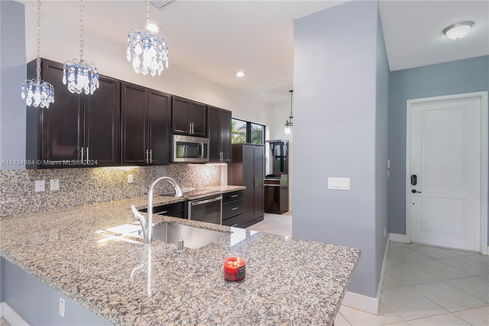 Your chance to own a beautiful single family home in the highly desirable/family community of Bonterra. House has 4 bedrooms (2 primary with ensuite bath/closets on first & second floor); 3.5 bath, den w/ natural light, and driveway for 3 cars! An open concept home with upgraded kitchen, butler’s pantry, breakfast nook, dining room, family room, stainless steel appliances, hurricane impact windows, high hat lighting, & large tiles. On oversized fenced-in lot with extended back pavers and covered front/back porch. Smart home w/ automated thermostat, front door deadbolt, garage door, & alarm system. Community amenities include: gated entry, 24-hour security, pool/party room, gym, & more! Great location near Turnpike, I-75, 826 & close to new supermarkets & shopping centers. Low HOA.