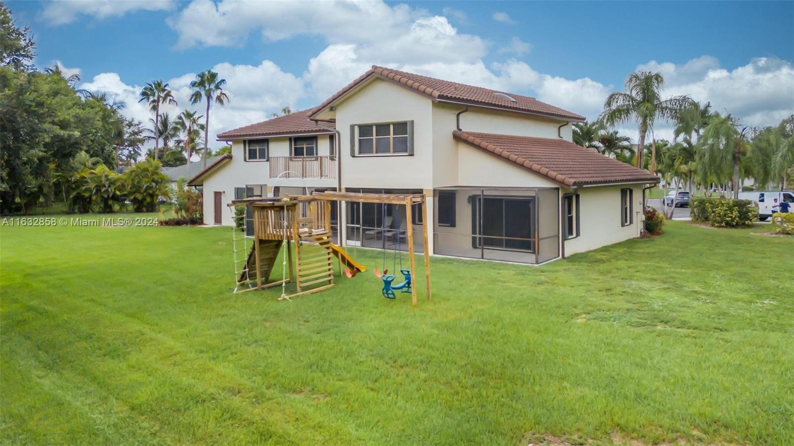 Discover luxury living in this stunning 4-bedroom, 4-bathroom San Simeon model home, located in the exclusive Pasadena Estates of Chapel Trail. This two-story gem features a spacious 3-car garage, updated laminate flooring, and a newer Spanish tile roof. The beautifully updated kitchen boasts white shaker cabinets and quartz countertops. The expansive master suite offers double bathrooms, walk-in closets, and a private balcony with serene yard views. Enjoy the huge screened-in patio with ample space for a pool. Located in a private cul-de-sac on one of the largest lots in the area, this home also includes hurricane shutters, a new electrical panel, and access to top-rated A+ schools. Perfect for families seeking style and convenience.