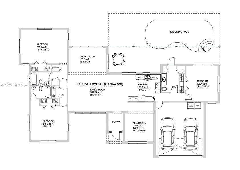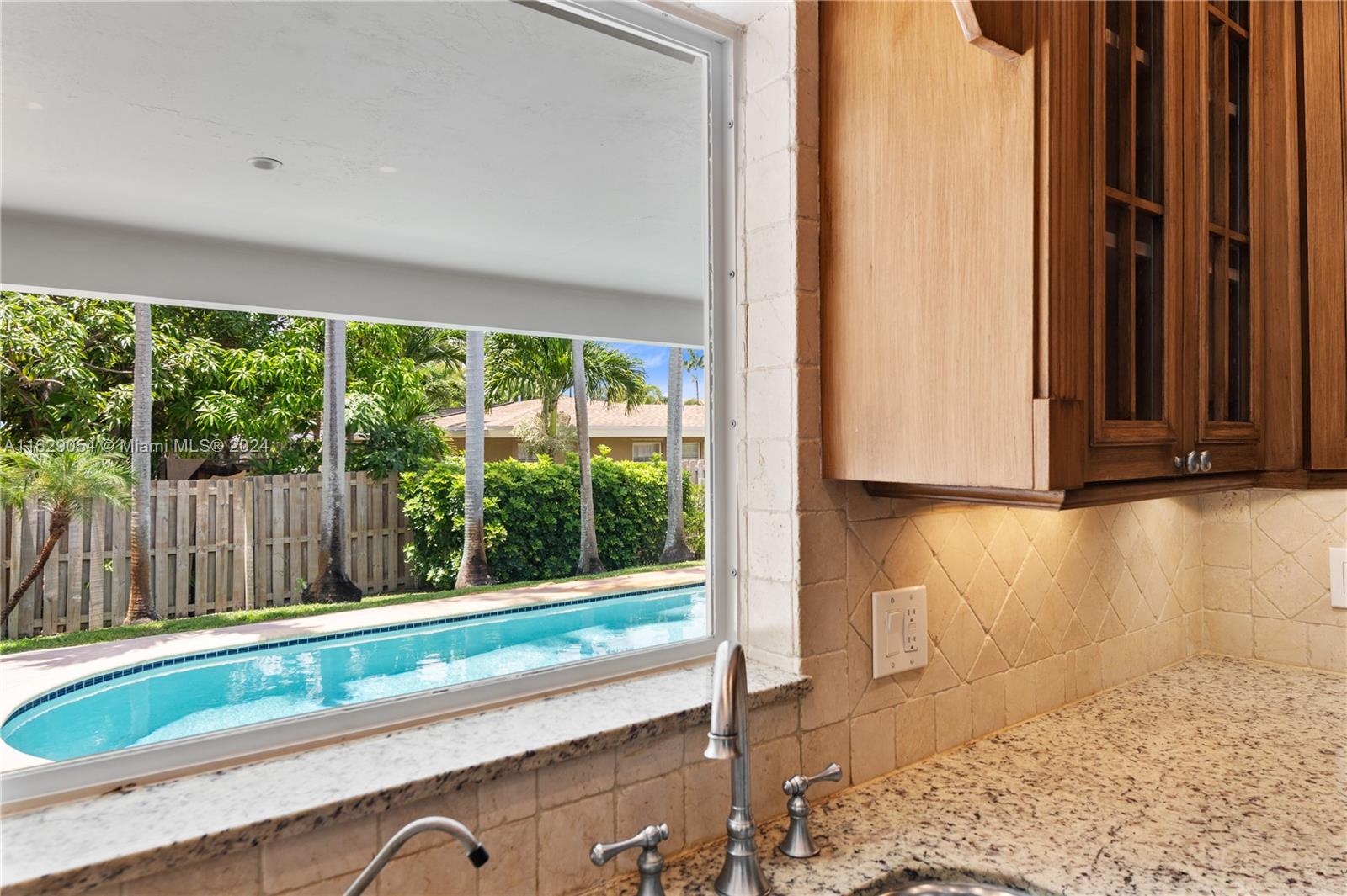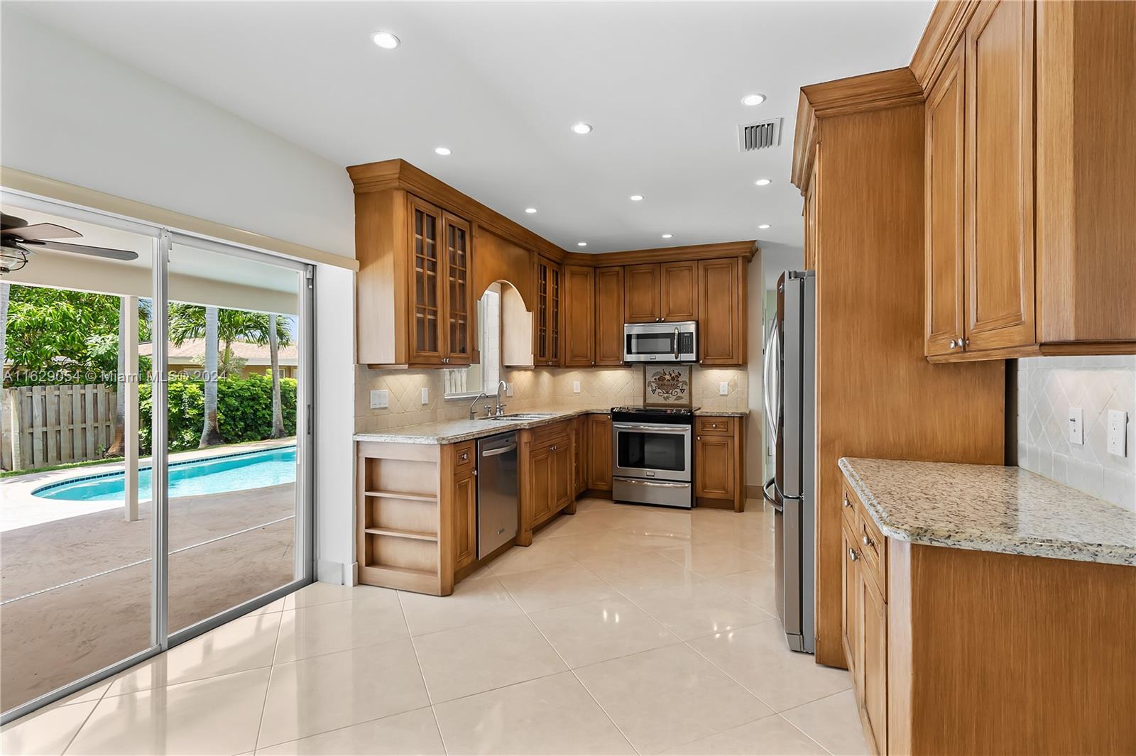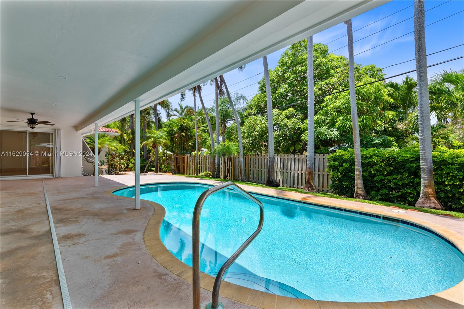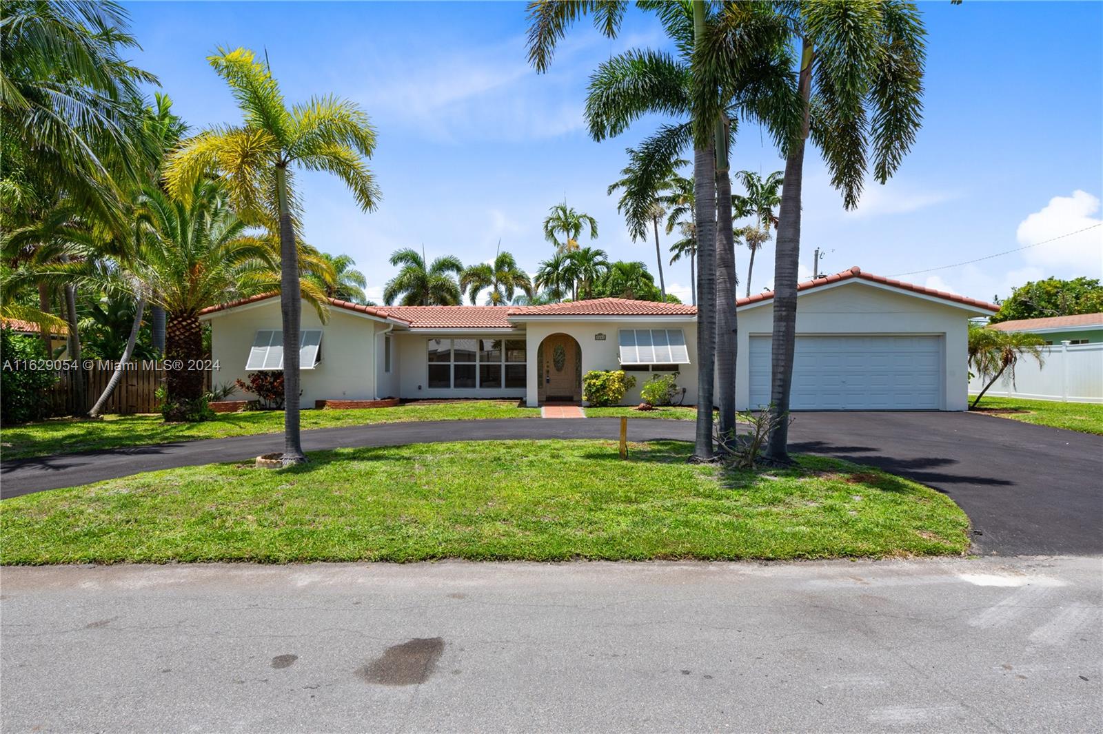 Welcome to Coral Ridge! Prime location just 1.5 miles from Lauderdale Beach. Built on a high elevation, this beautiful home features 3 spacious bedrooms, split floor plan design,large bonus room, 3 full baths (1 cabana), 2 car garage with a pool. This home boasts a new 2024 HVAC system, newer tile roof (2017), impact windows & accordion shutters for sliding doors, and an updated kitchen with wood cabinetry, granite counters & tile backsplash. Additional features include: tile flooring throughout, high-hat lighting, plantation shutters & wood blinds, a freshly painted interior & exterior, brand new asphalt driveway & a covered patio perfect for outdoor entertaining. Located in top-rated Bayview school district, close to Coral Ridge Country Club, & tons of restaurants, parks & entertainment!