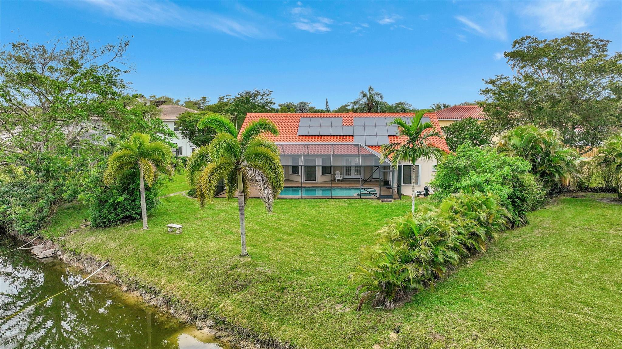 Minimal costs, luxury living! Seller will pay off solar panels, cutting electric bill to $25-$80/m. Current water bill (Family of 4) is $80-$90. Low HOA - $33/m. 2018 roof has 4 yrs of warranty. 2024 AC with 7 yr full coverage warranty with FPL. 2024 water heater. Features include luxury clay tile roof, vaulted ceilings, real wood cabinets, granite countertops, 2021 GE & Samsung appliances, screened pool, mango tree, smart lock, $6000 ADT security system, porcelain & wood floors, hurricane shutters, French doors. Divine views on the preserve with a canal. Walk to schools and Volunteer Park!