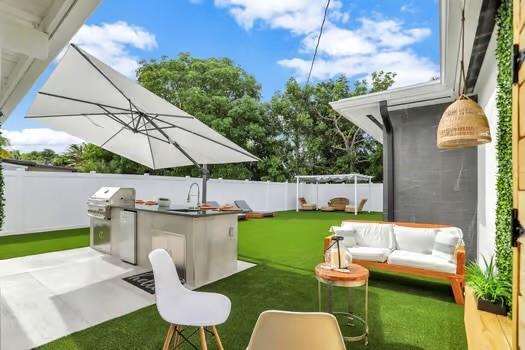 Absolutely stunning 3 Bdrm 2 bath home with 1 CG. Completely updated and remodeled with no expense spared! New plumbing, new electric including new panels, new impact windows&doors, new AC & ductwork, new Bathrooms, new Kitchen, new luxury wood look vinyl floors, honestly almost New everything! From the second you walk into the foyer you will be impressed with all the custom features and designer touches. Gorgeous accent walls throughout! The oversized Master Bdrm has a sitting area & custom walk-in closet. Have fun entertaining in your own private oasis outback with a fabulous built in summer kitchen w/gas grill, refrigerator and snack bar all covered with an oversized umbrella for shade! All New PVC fence and artificial turf. Pictures don’t do this home justice, come fall in love!