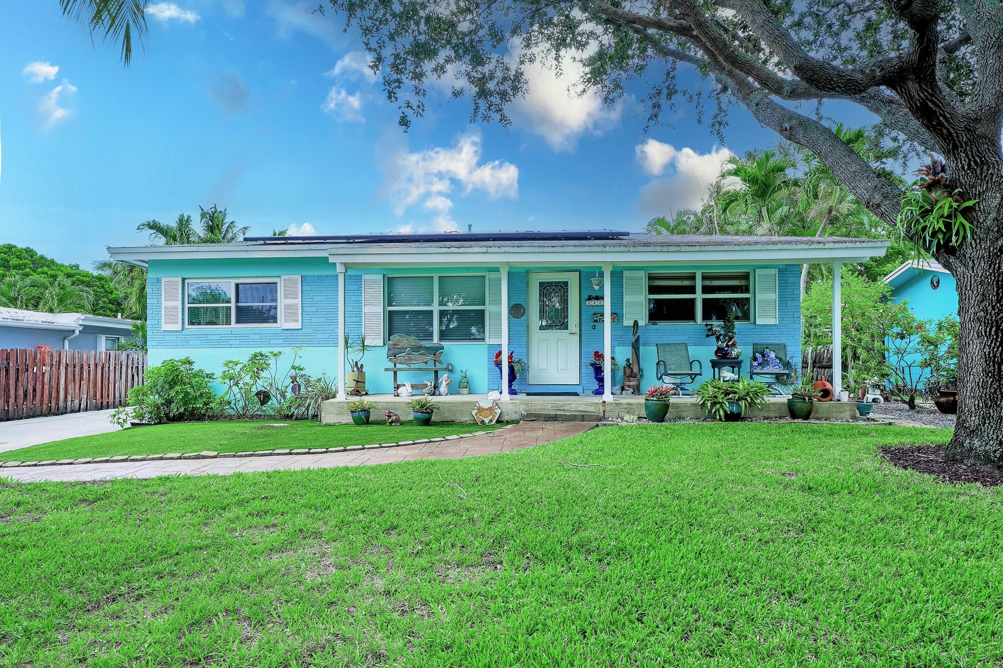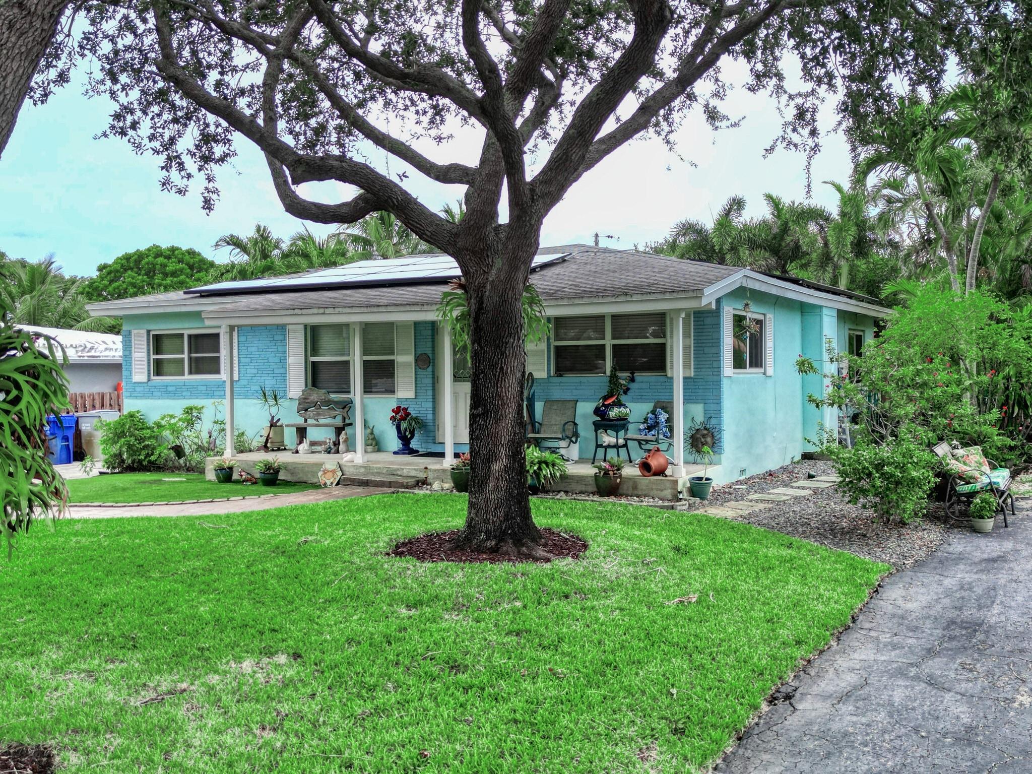 Charming Old Pompano home less than a mile from the beach. Originally relocated in 1971, this home features impact windows,solar panels, new electrical panel, and attic insulation for energy efficiency. Built with durable Dade County Pine and CBS construction, it boasts polished terrazzo and wood floors. Modern amenities include a gas stove, washer, dryer, BBQ, and a new water heater. The spacious yard offers a tropical garden, hot tub, and covered deck, with room for a pool. Ample parking for RVs, boats, or multiple cars. Enjoy beachside living with easy access to restaurants, shops, and parks. Schedule a viewing today!