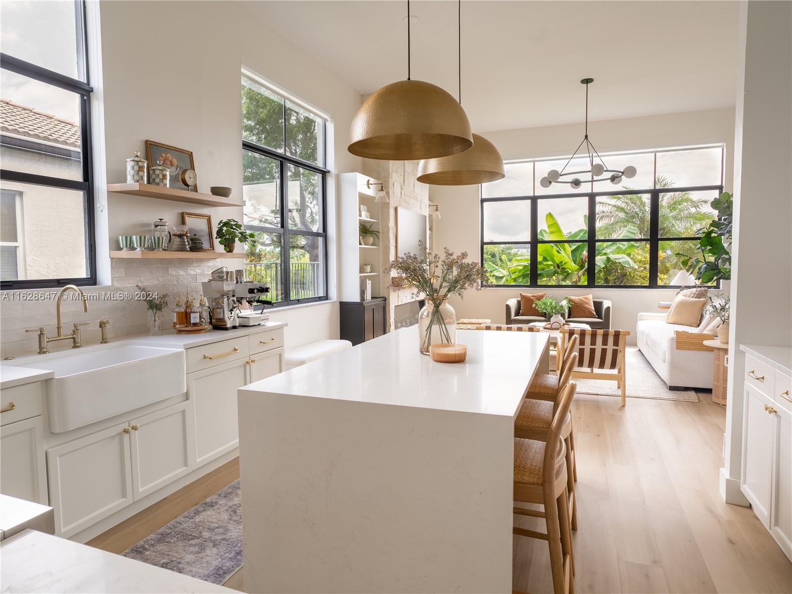 Experience luxury in this stunning 4/2.5 home, fully remodeled in the prestigious gated community of Lido Isles. Enjoy breathtaking lake views & a serene nature preserve with no neighbors front or back. Enter through 8ft French doors into a majestic entryway with 12ft ceilings & wall molding. The expansive dining room features tray ceilings & an arched window. The spacious family room boasts a natural stone fireplace & large windows for abundant light. The chef's kitchen is a culinary dream with a custom wood hood, top appliances, farmhouse sink & integrated dishwasher. The custom laundry room complements the home’s design. The primary bedroom offers an accent wall, high ceilings, walk-in closets & a spa-like bathroom. The large backyard is perfect for entertaining & peaceful evenings.