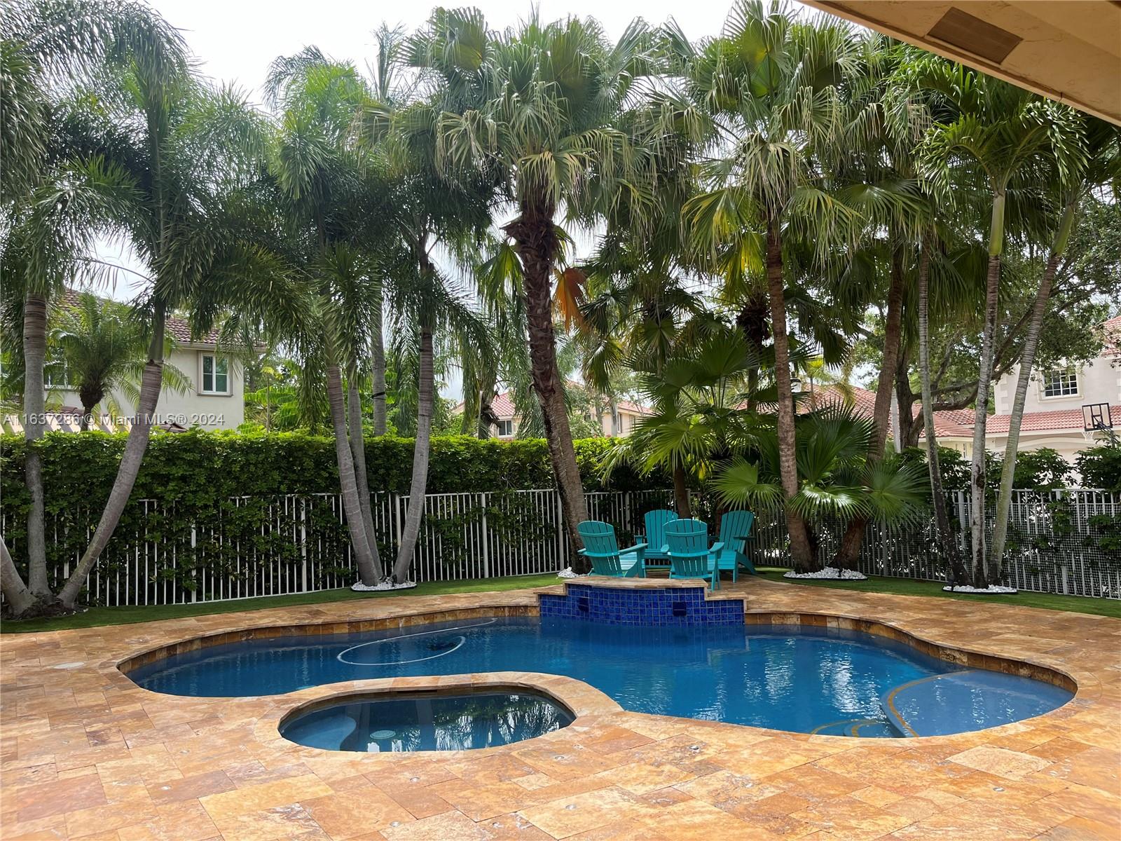 Look no further than this perfect floorplan located in one of Weston's most sought after communities, Highland in The Meadows! This split floor plan boasts 5 bedrooms, 2 1/2 baths, is situated on a cul-de-sac, and has a backyard you will never want to leave. Backyard is equip with pool, spa, artificial turf for easy pet clean up, and custom lighting, perfect for entertaining. Newer roof, bathroom renovations, updated landscape lighting in front and back of house, and a newly installed smart garage door, make this home an easy move in!