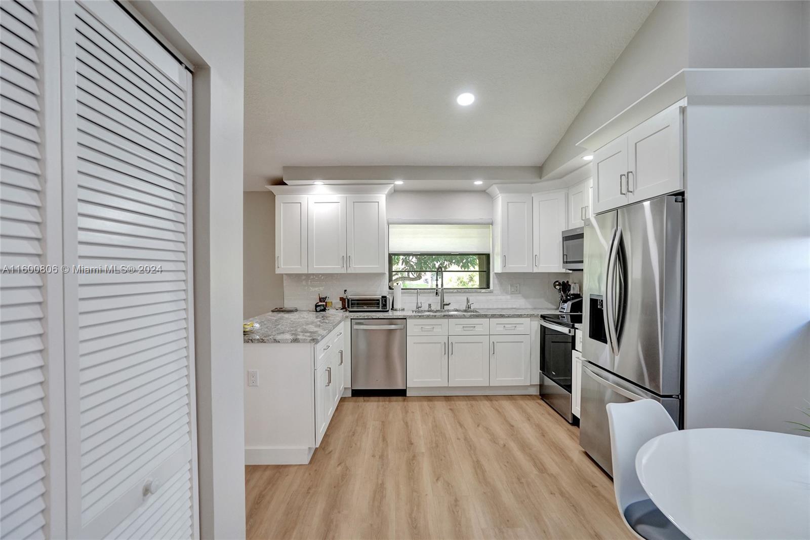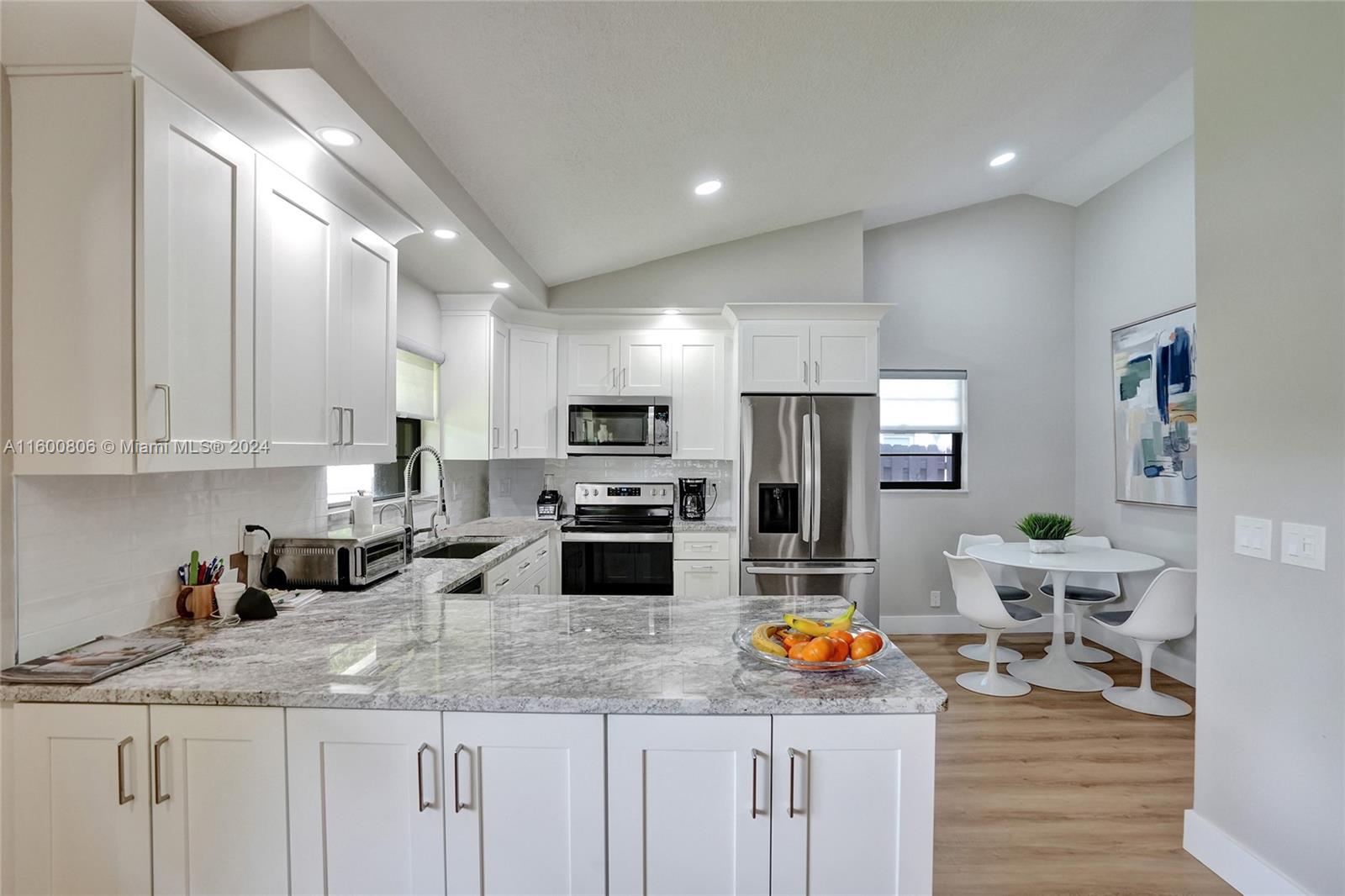 Welcome to this beautifully updated waterfront home on a spacious lot w tranquil lake views & no HOA. Featuring a gorgeous cook’s kitchen, classic white shaker cabinets, SS appliances, at sink filtered cold & hot water dispensers, new beautiful & durable luxury vinyl plank floors throughout home, new high-end window treatments, recessed lighting, no popcorn in main living areas, new gutters, AC '20, updated e-panel & more! Be storm-ready & have peace of mind w full accordion shutters & hookup for generator. Enjoy your morning coffee, dining alfresco & entertaining on your large screen-enclosed patio overlooking the serene lake & lush fenced-in backyard w Mango & Jackfruit trees. The backyard also features a fenced dog-run that can be converted to a playground area! Call today, not to miss!