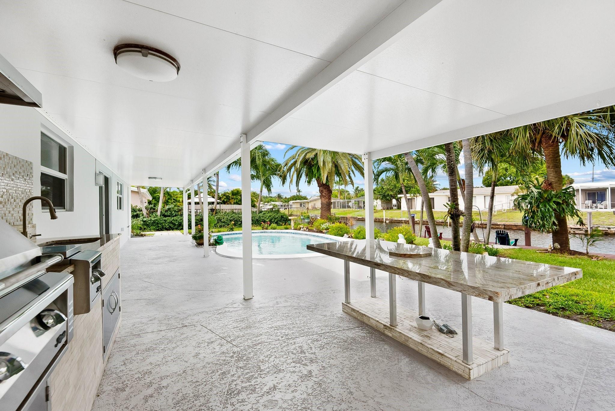 Welcome to your dream oasis! This stunning waterfront home in Pompano Beach offers the perfect blend of luxury and coastal living. Featuring three spacious bedrooms and two beautifully appointed bathrooms, this residence is designed for comfort and style. Step outside to your private paradise, complete with a 50-foot dock and a boat lift, perfect for water enthusiasts. With 75 feet of water frontage, you can enjoy breathtaking views and easy access to the ocean. The outdoor space is an entertainer's dream, featuring an amazing outdoor kitchen and barbecue area, ideal for hosting family and friends while soaking up the sun and enjoying the gentle sea breeze. Hurricane impact doors and windows. Bonus room and closet can easily make this a four bedroom home. Hurricane Impact windows & doors.