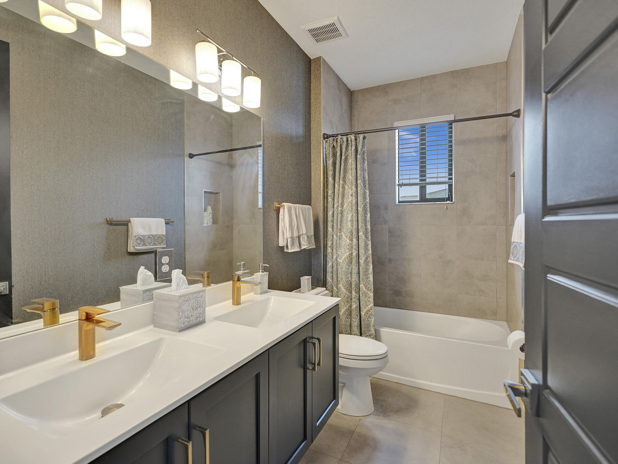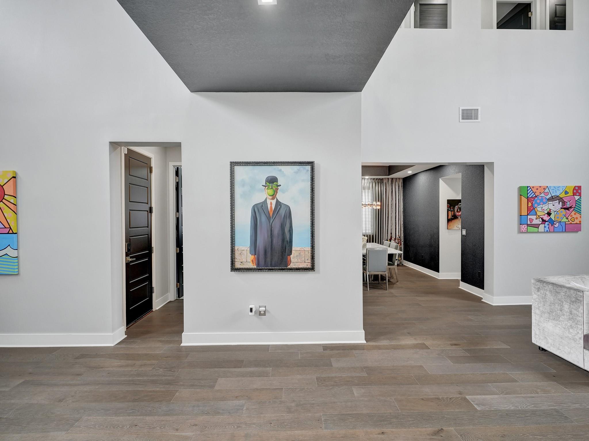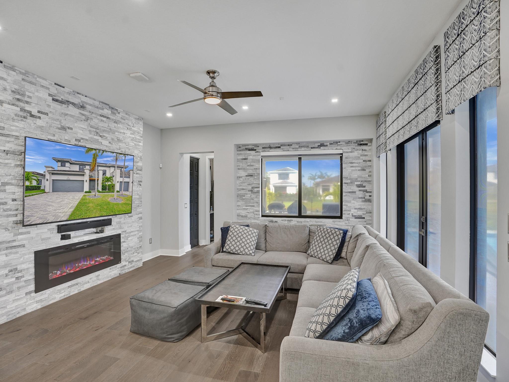 This beautiful home boasts 6 bedrooms, 6.5 baths, a study, a movie theatre room, and a resort style pool with spa, surround sound, artificial turf, lush landscaping, and a high-end outdoor kitchen. Interior finishes include wood floors and stone walls throughout, marble floors in the master bathroom, electronic fireplaces, upgraded door handles, motorized blinds, and magnificent light fixtures. Over $413K in documented upgrades. All interior lights have been replaced and exterior LED lights surround the house for magnificent illumination at night. Full rooftop solar panels reduce your average electric bill to $50 saving you approximately $7,200 per year in energy expenses. This estate is a gateway to a world of unparalleled refinement and pleasure with attention to detail in every room.