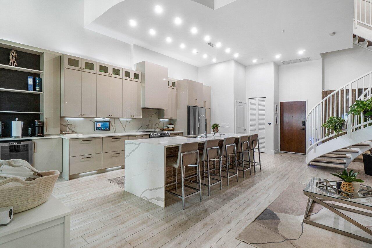 STUNNINGLY RENOVATED FROM TOP TO BOTTOM. 2 BEDROOM, 2.5 BATH TOWNHOME WITH LOFT PLUS DEN/OFFICE! VOLUME CEILINGS. ONLY 8 TOWNHOMES IN ENTIRE COMMUNITY. SEPARATE REAR ENTRANCE TO UNIT. OPEN & AIRY 16 FOOT CEILINGS. VERY UNIQUE SET UP. EXCELLENT INVESTMENT. CAN RENT IMMEDIATELY UP TO 12 TIMES PER YEAR! HUGE CENTER ISLAND WITH TOUCH FAUCET. QUARTZ WATERFALL COUNTER TOPS, NEW STAINESS SMART APPLIANCES. REFRIGERATOR W/WATER IN DOOR. COFFEE BAR. LED CUSTOM LIGHT FIXTURES. UNDER CABINET LIGHTING & ELECTRIC. ELECTRIC BLINDS. SMART LOCK & THERMOSTAT. DUAL SINKS IN MASTER BATH. FULL TIME FRONT DESK ATTENDANT. PRIME GARAGE PARKING SPACE. HURRICANE DOORS & WINDOWS. VERY PET FRIENDLY COMMUNITY. BRAND NEW DOG PARK COMING SOON. RESORT STYLE AMENITIES.