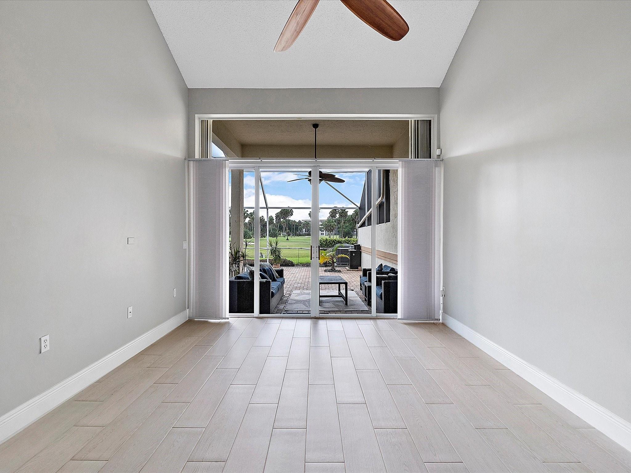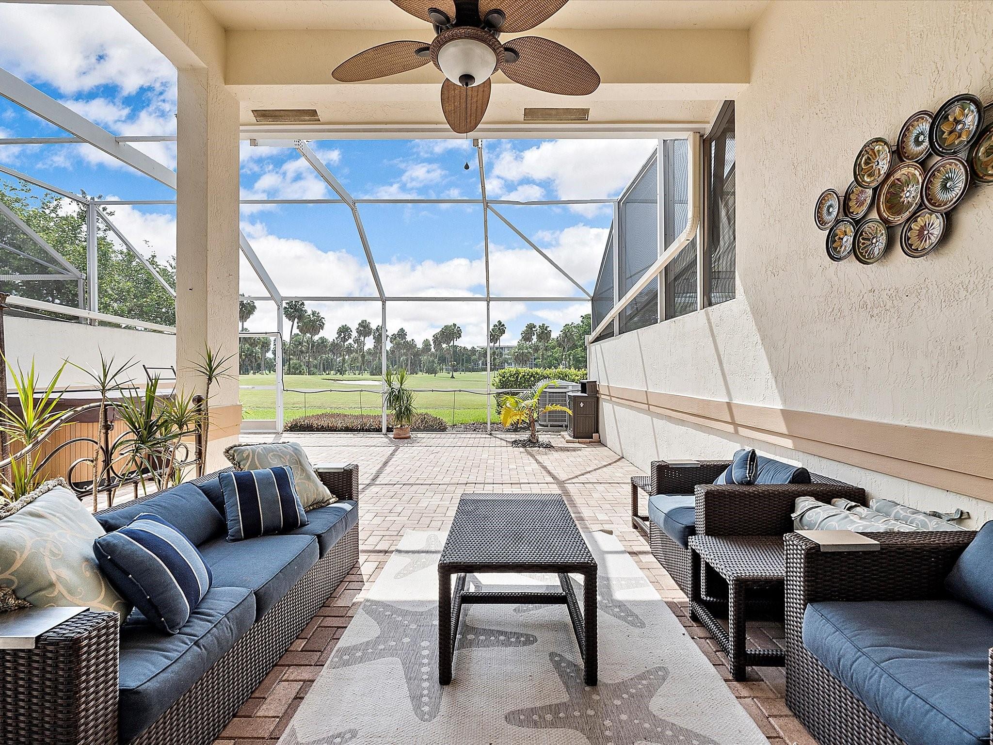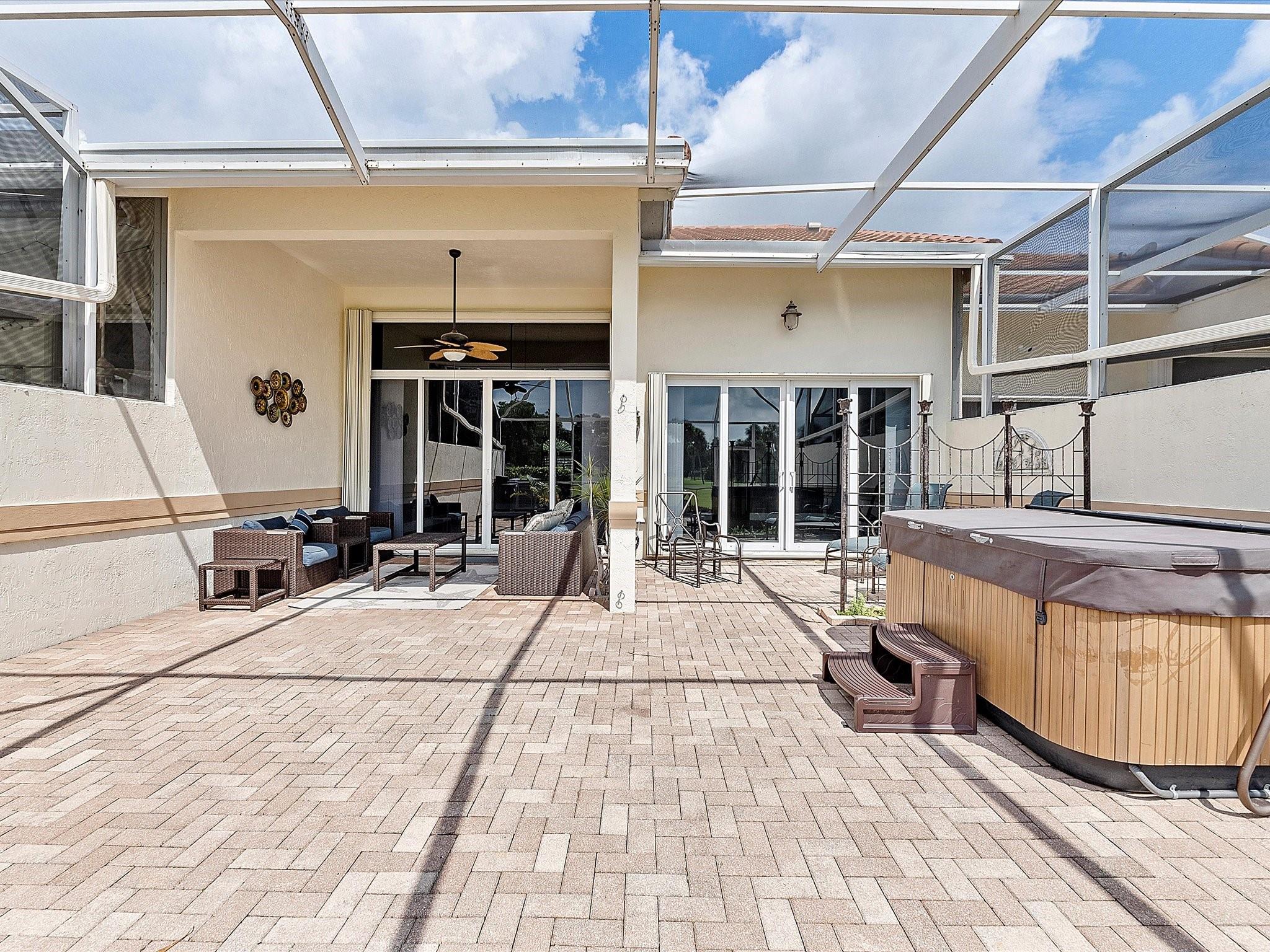 Fairview Pointe at Palm Aire is a picturesque, gated, community of townhomes tucked away along the Palm Aire Oaks golf course in Pompano Beach, Florida. The most striking feature of this home is its unobstructed view of the third-hole green. Enjoy watching the sun rise while relaxing on the spacious, breezy screened patio that includes an outdoor Jacuzzi spa. Inside, this 3-bedroom, 2.5 bath home features upgraded porcelain tile throughout the lower level and laminate wood flooring on the stairway and on 2nd floor. A well-appointed kitchen includes custom cabinetry, eat-in breakfast nook and updated backsplash. The primary bedroom on the lower level enjoys patio views, while the 2nd floor boasts one oversized bedroom as well as a third bedroom and loft area.