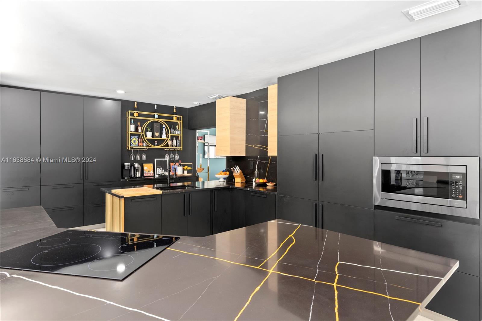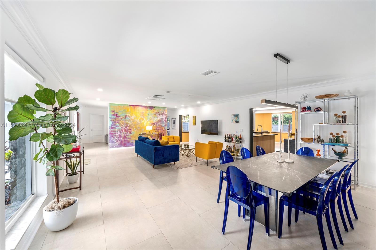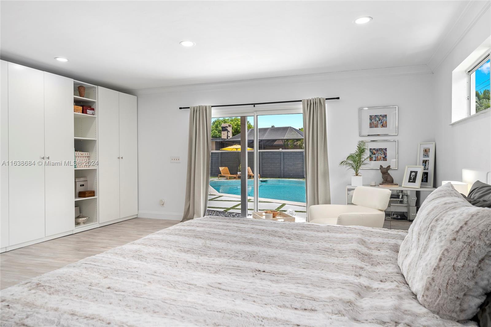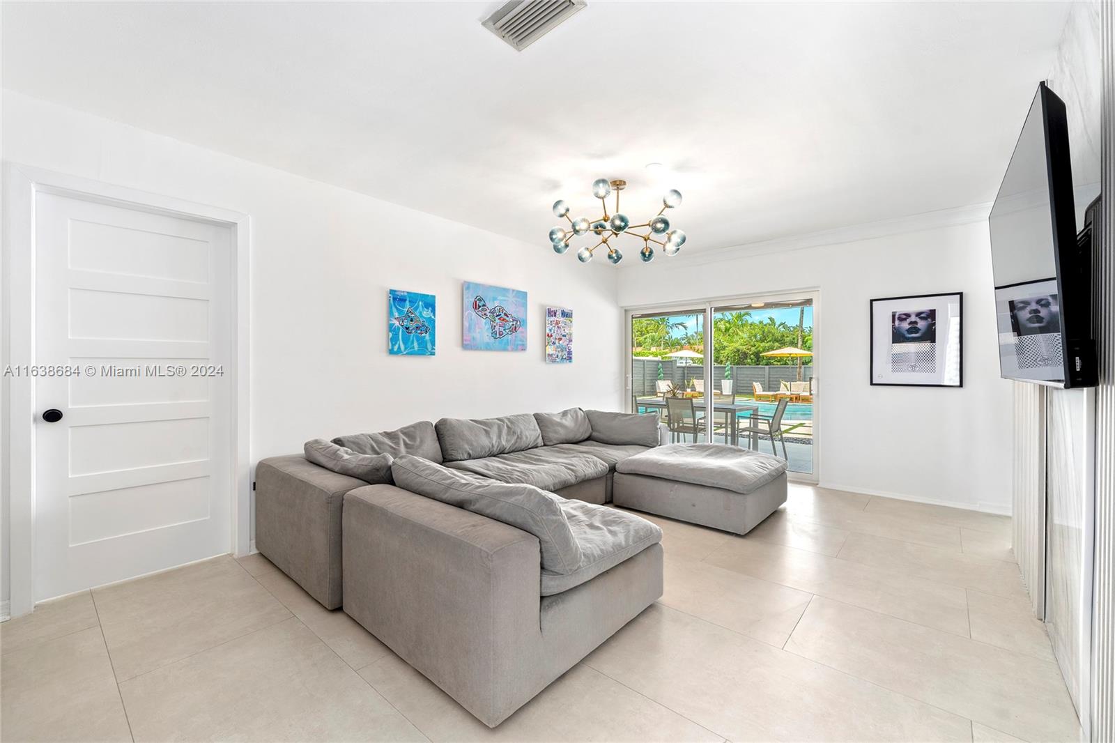 Welcome to this classic renovated 5 BD / 4 BA mid-century pool home, exuding a luxurious Palm Springs vibe. Nestled in Hollywood Hills, this gorgeous home boasts one of the largest lots in the neighborhood, and a resort-style rear yard complete with oversized pool, pristine putting green, outdoor TV, elegant covered Florida room, and cabana bath with relaxing sauna. The expansive primary bedroom offers a stunning view of the pool. Four additional spacious bedrooms and a fully renovated, state-of-the-art kitchen. Enjoy new porcelain floors throughout, spacious two-car garage, and brand-new, high-impact windows and doors. Recent updates include new roof, modern pool lining, and advanced electrical system. Don't miss this opportunity!