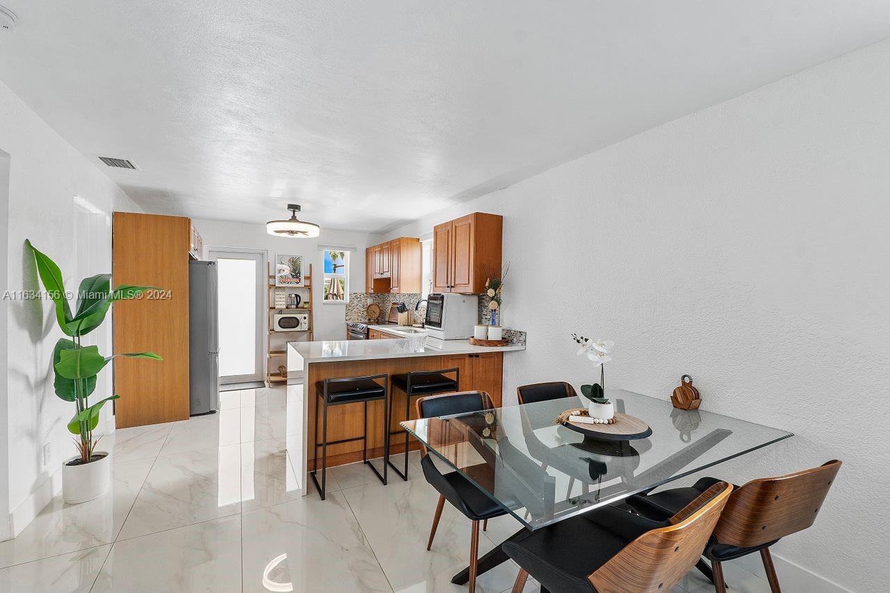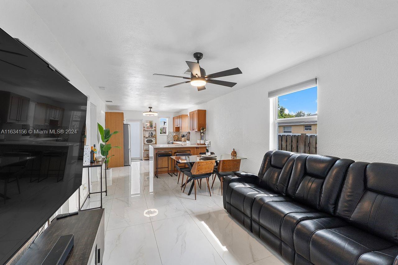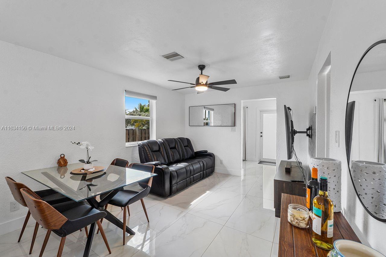 This home boasts a hip shingle roof that's only 3 years old. Installed impact windows and doors. Step inside to discover a fully renovated kitchen featuring brand new appliances, quartz countertops, tiled backsplash, and new kitchen cabinets. Also included a new washer and dryer, tankless water heater, and a new central AC system. Enjoy the elegance of porcelain flooring throughout the home, creating a seamless and modern aesthetic. Renovated and modern bathroom with porcelain tiles. The fenced yard includes a utility shed for extra storage, with no rear neighbors! Situated just 8 minutes from Hollywood North Beach. You're conveniently close to Fort Lauderdale Airport, Memorial Hospital, Seminole Hardrock, TY Park, and the Anne Kolb Nature Center with easy access to I-95, US1 + AIA.