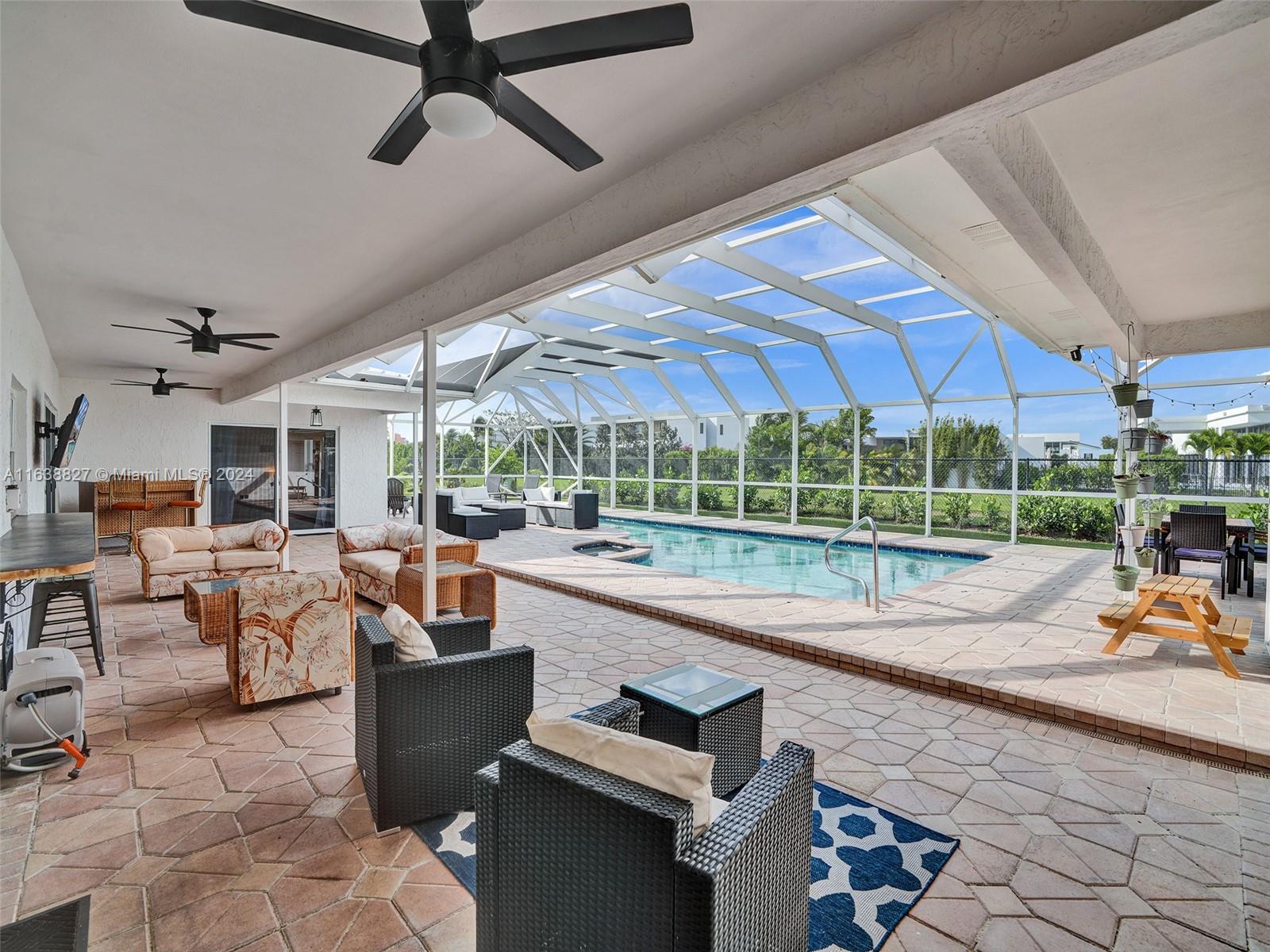 Boasting a vast living space, this 4/4 pool home sits on a corner cul de sac in desirable Weston. Oversized lot and spacious living space for ideal Florida living. Featuring a sunlit atrium this home offers multiple living and entertaining spaces in an inviting layout. Including an office/den that can be converted into a 5th bedroom. Large bedrooms with primary tucked away. Oversized eat in kitchen with a gas stove, double oven, stainless steel appliances, new wine cooler, all overlooking your outdoor entertainment area. Enjoy your screened in pool with a removable safety net offering year round entertainment. Two car garage with extra storage, an outdoor storage/workshop attached. GE generator. Two brand new AC units with nest learning thermostats installed May 2024.