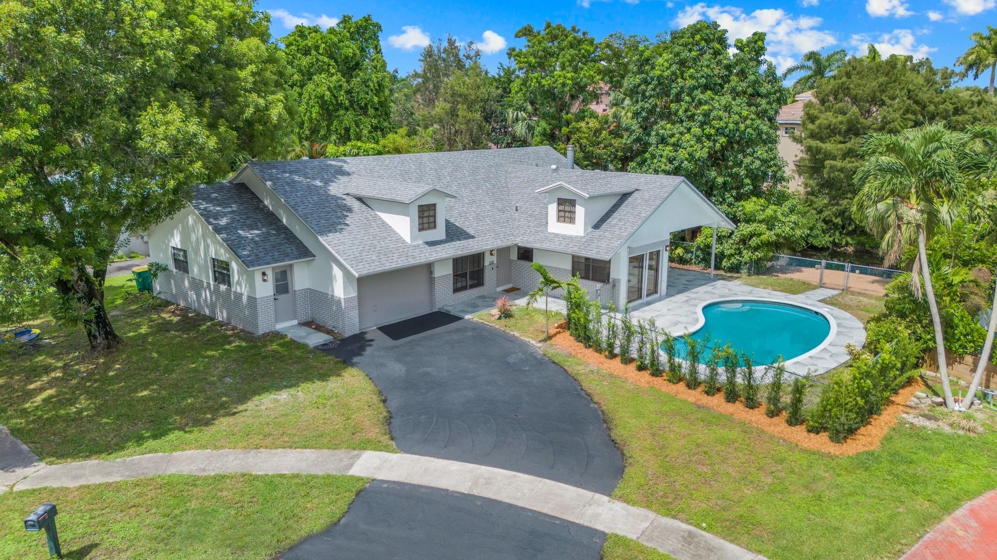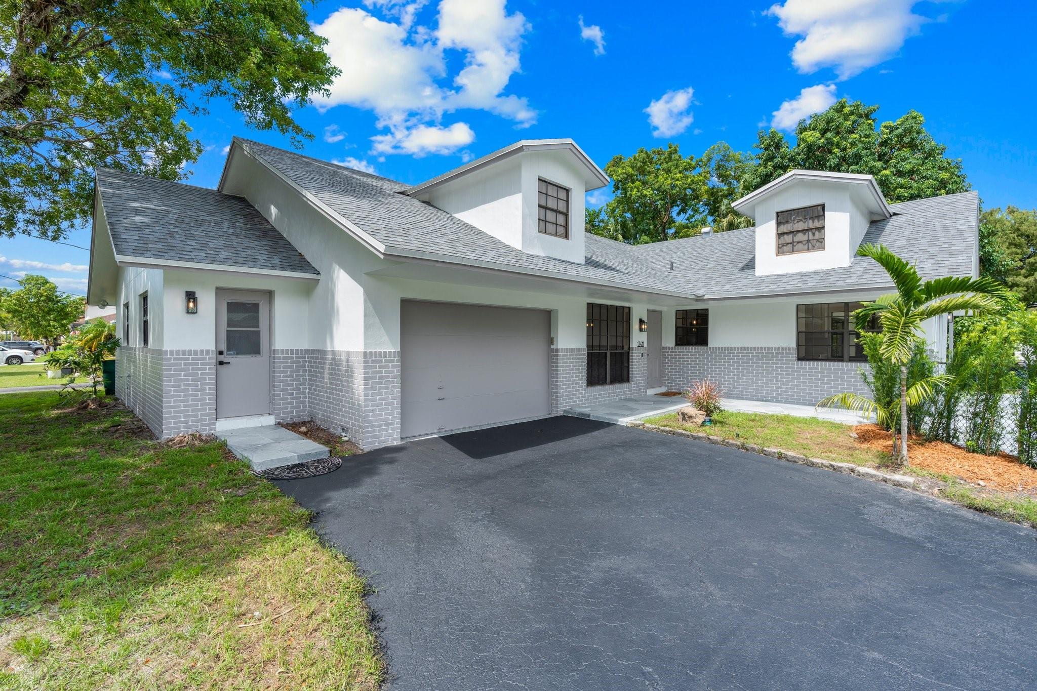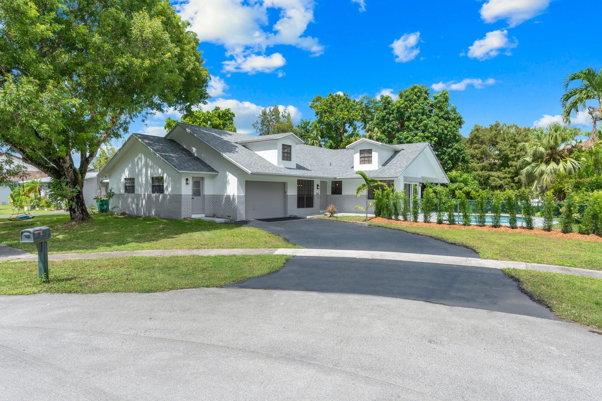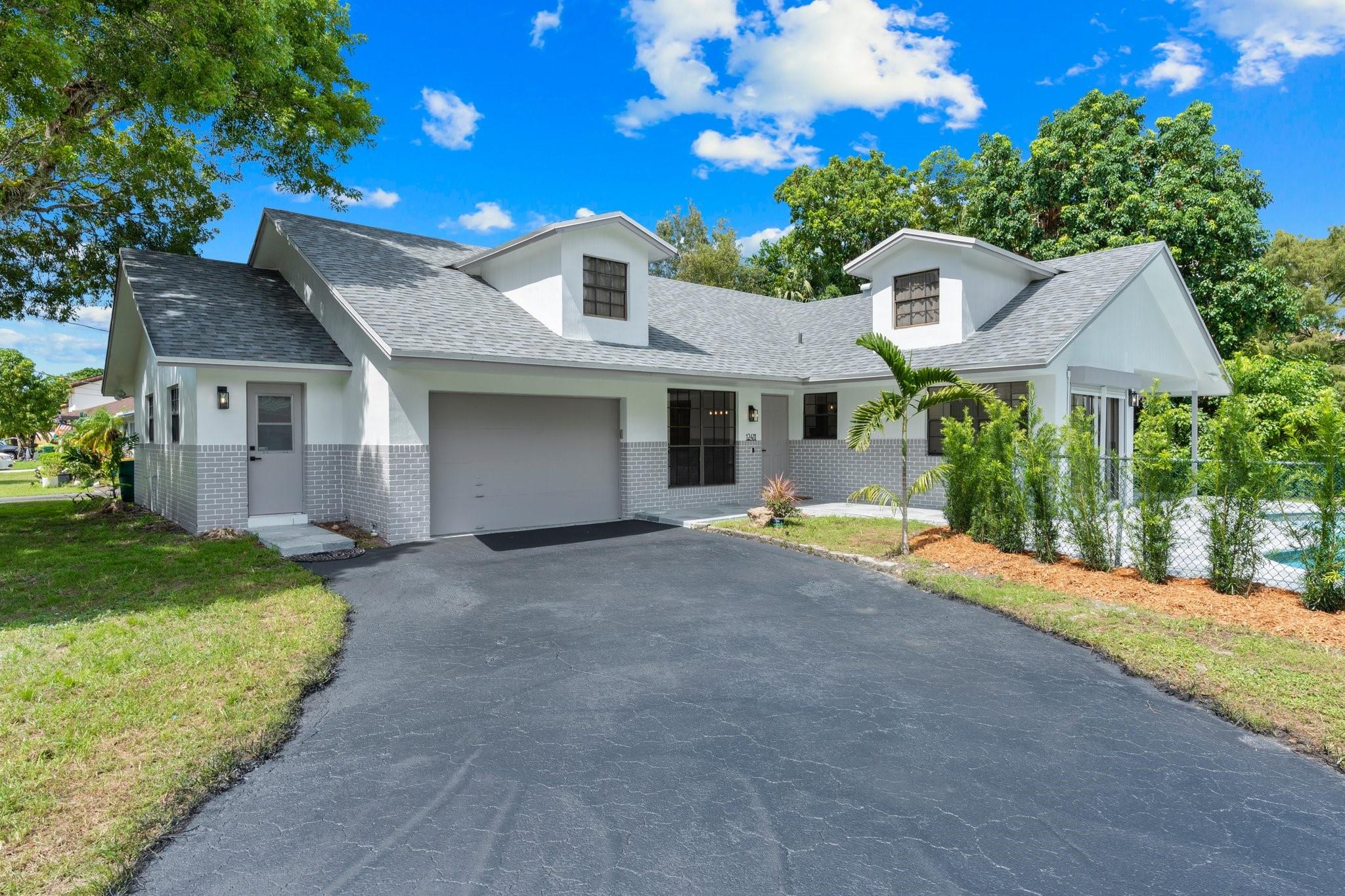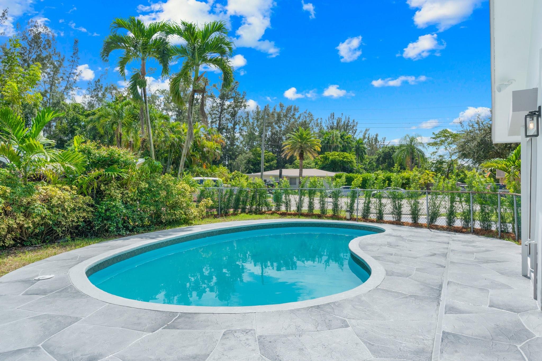 This home can easily be split into a 2/1 and 1/1 with separate entrance if you desire. Looking for the perfect blend of luxury and comfort? This 3 bed, 2 bath waterfront home with a garage and separate office space is the one! Enjoy stunning views of the pool and dock from the newly redone pool deck. The interior boasts high volume ceilings, an open concept kitchen and living area, and wood look flooring. The primary bedroom is a serene retreat with a walk-in closet, private bathroom, and separate vanity/make-up area. The backyard is fully fenced for privacy and features a covered patio and pool. Located on a quiet cul-de-sac and just minutes from American Heritage Academy. This home has it all! No HOA! Property has partial hurricane windows and a power shutter for the pool sliding door.