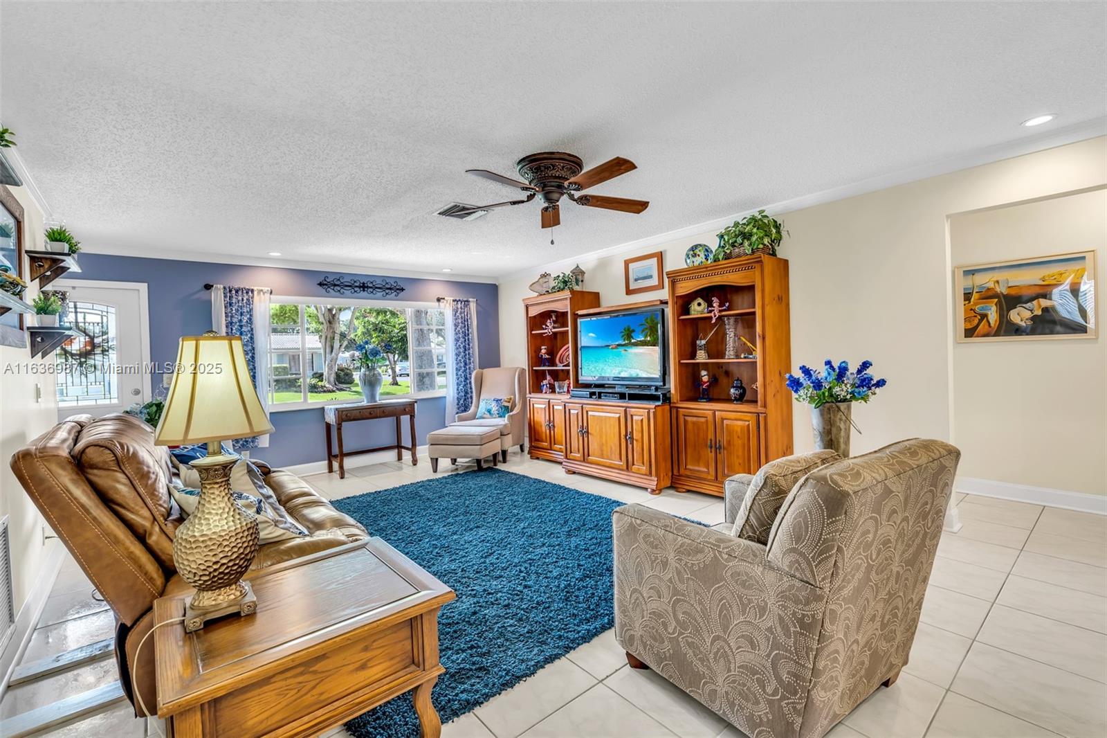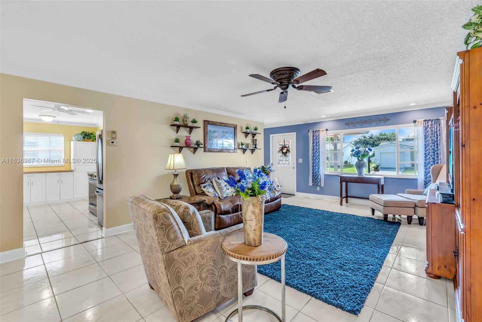 SELLER OFFERING $5000. Credit at Closing toward Buyer's Interest Rate Buy-Down with a REASONABLE Offer. Move-In Ready in 55+ Active Community. 2 Bedrooms, 2 Fully Renovated Bathrooms (2023), with over $30k Invested. Spacious Living room, Dining room, Family room, Ceramic tile floors, Crown Molding. Kitchen w/Corian Countertops, Stainless Steel Appliances. Front Patio and a Screened-In Back Patio. Accordion Shutters, Washer & Dryer. Roof-2021, Water Heater-2012, A/C-2018, Electric Panel-2016. 1 Car Garage, Double-Wide Concrete Driveway. Maint includes: Internet, Cable, Exterior Painting, Lawn, Roof Repair/Replacement, Leaving you free to enjoy the Community Clubhouse, Gym, Workshop, Pools, Tennis, Billiard, Live Entertainment. Low HOA $520. MTHLY, Full Reserves.