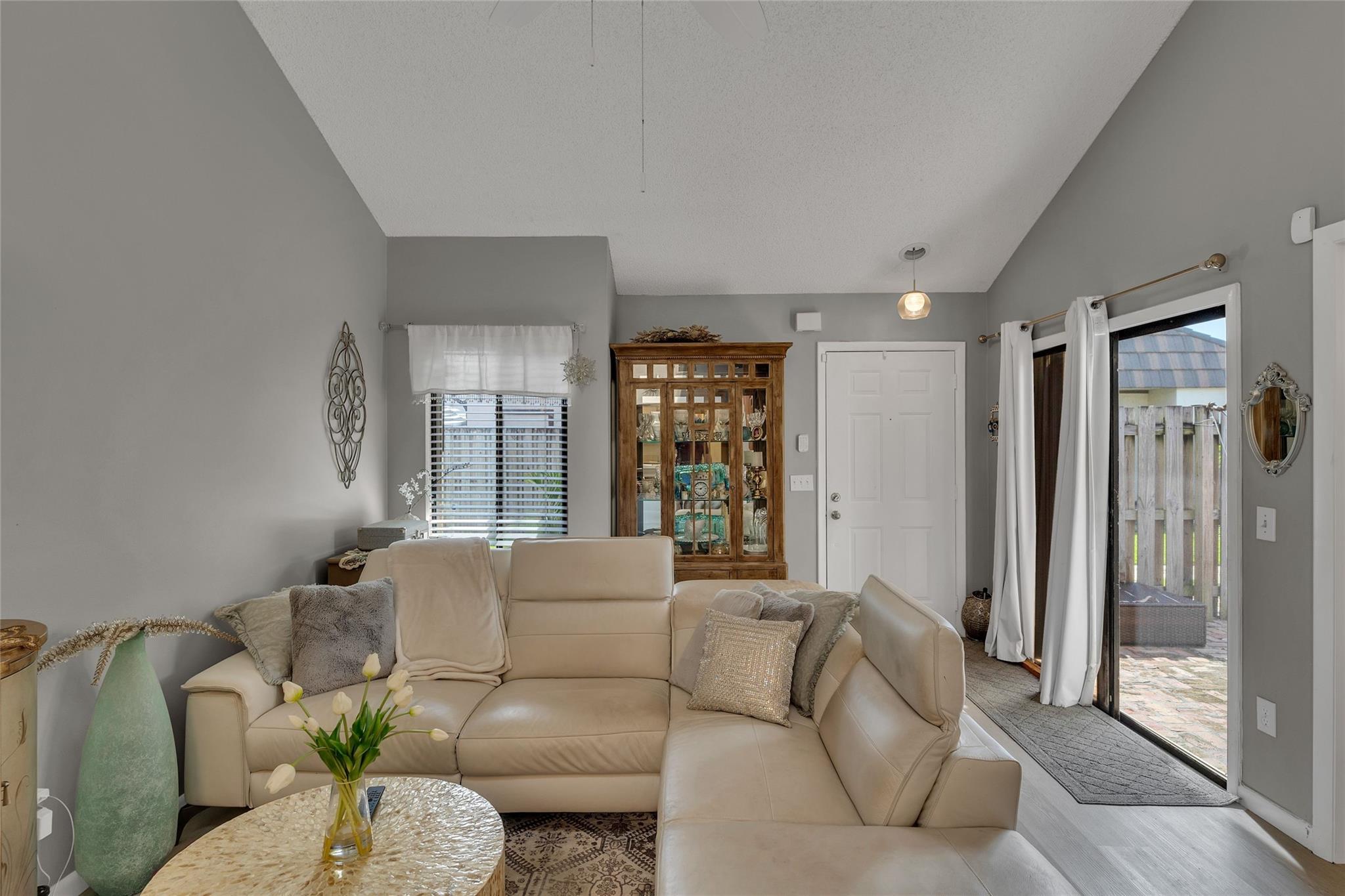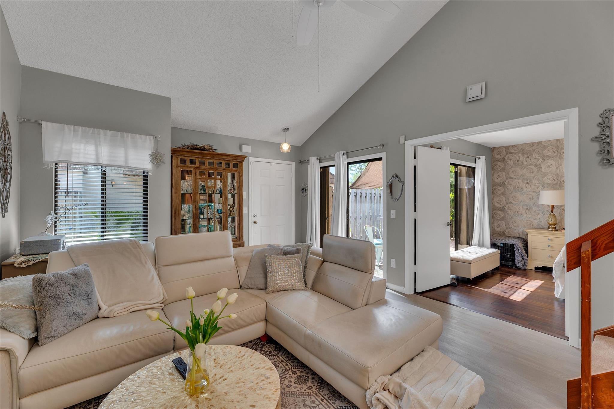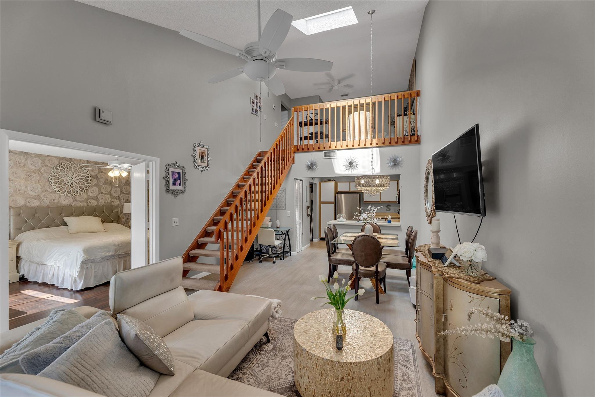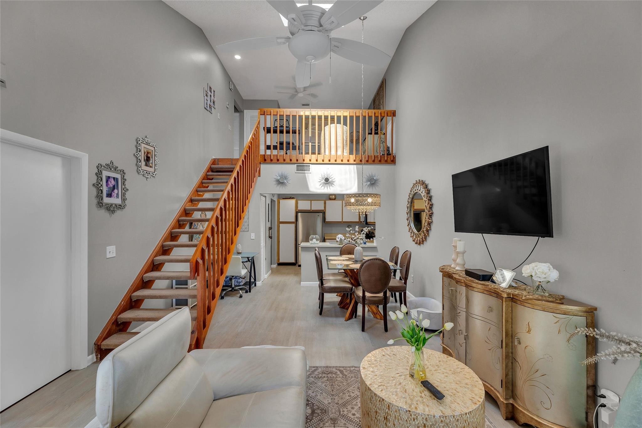 Rarely Available 2 Bedroom + an Upstairs Loft , 2 Full Bathroom End Unit Townhome in Lake Colony. Property is Fully Enclosed with a Private Patio Which is Perfect for Entertaining. The Property Features Vaulted Ceilings with a Very Spacious Living Area. A Split Floor Plan Layout Featuring a Downstairs Master Bedroom and Upstairs Second Bedroom + Loft. The Downstairs has New Laminate Flooring and an Updated Bathroom. This Property is Turn-Key and Ready for its Newest Owner. New Roof and Accordion Shutters. Chandelier in Dining Area does not Convey.