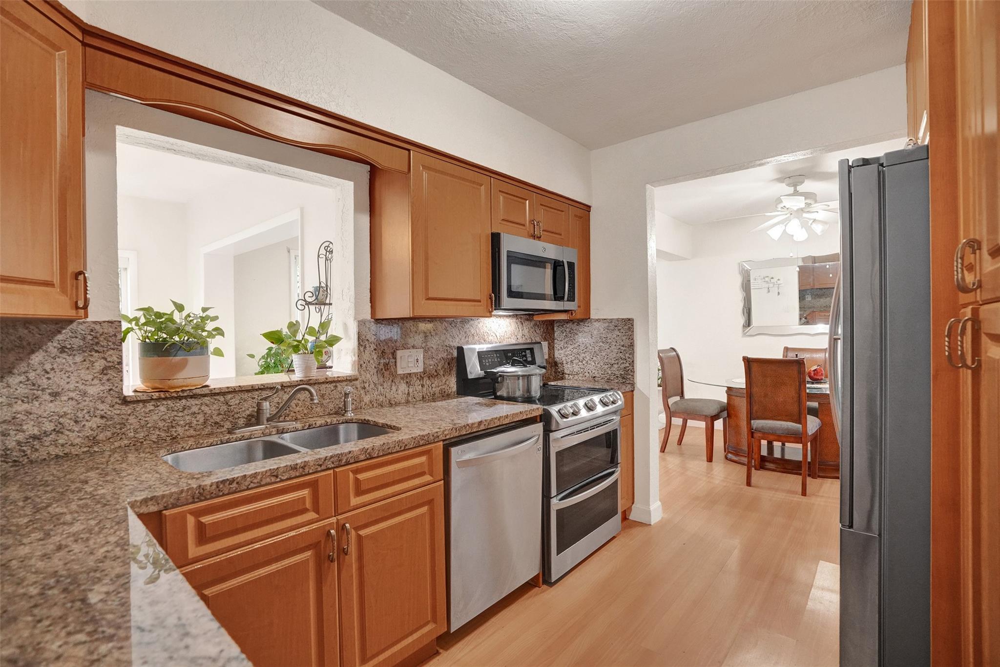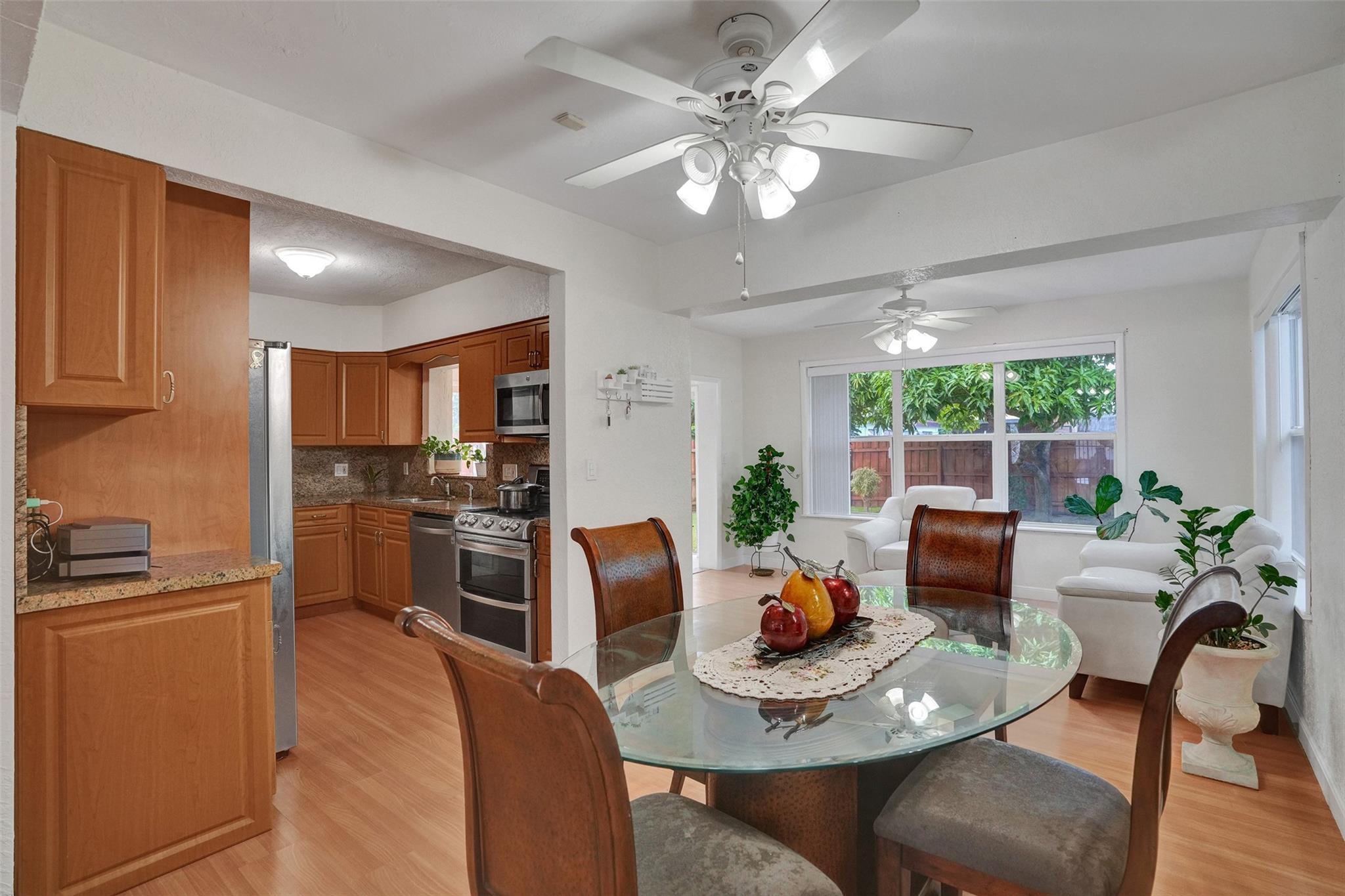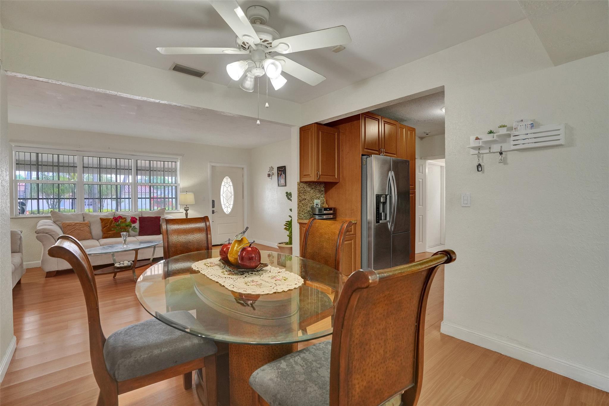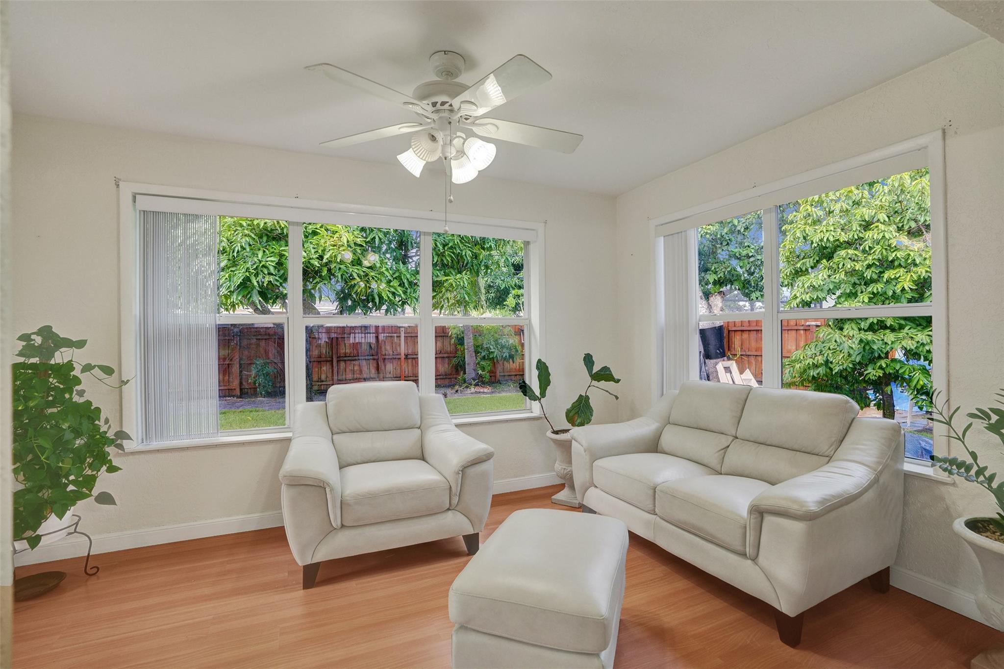 Cozy and well-maintained 2-bedroom, 2-bath home in Miramar, offering 1,319 sq. ft. of cozy living space. This home has a remodeled kitchen and updated baths and is move-in ready. Laminate floors throughout. The family room overlooks a beautifully landscaped backyard. The property has a sprinkler system with a well. New roof 2020. and A/C 2018. All doors are impacted, including the garage door—Accordion Hurricane shutters on all windows. The property boasts a beautiful large driveway—a fully fenced backyard with mango, avocado and soursop trees. You’ll fall in love with this home's warm and inviting energy—don’t miss out!