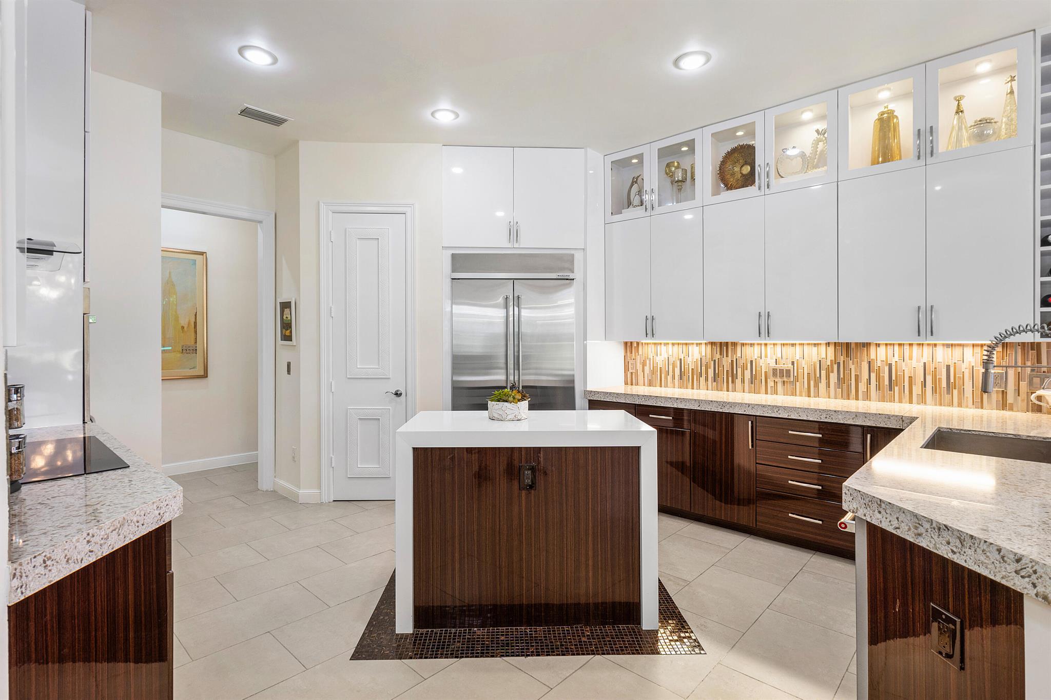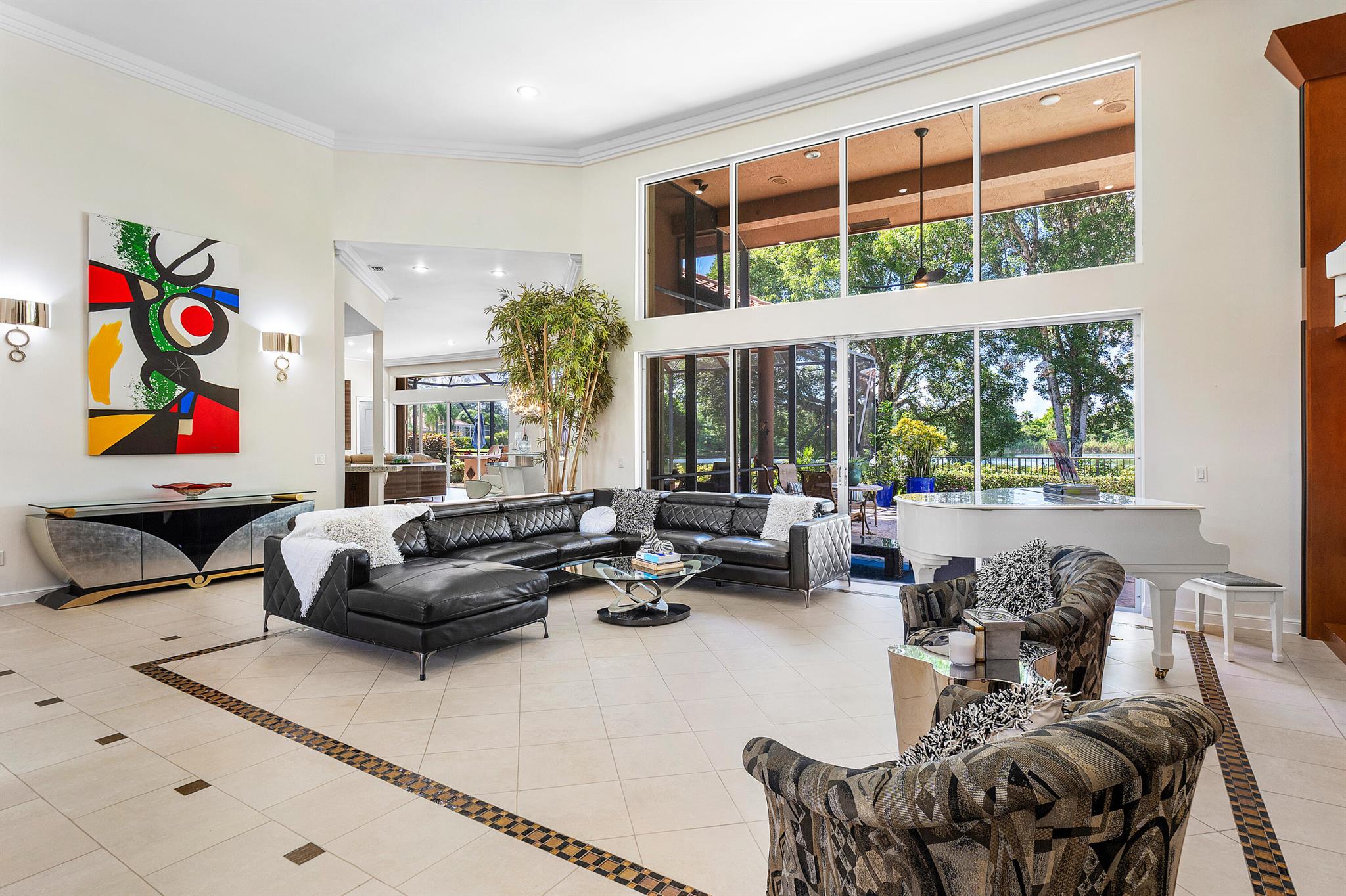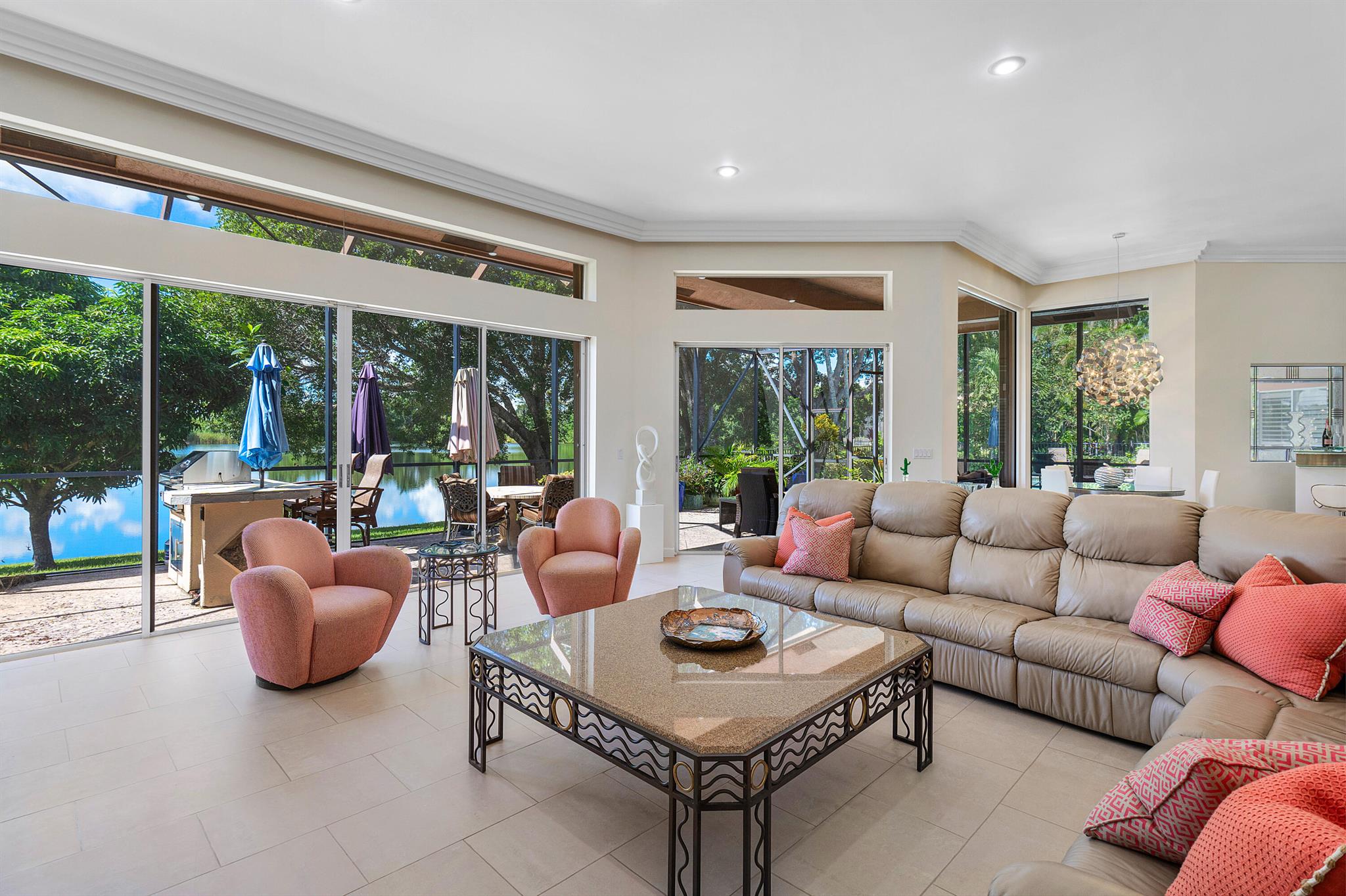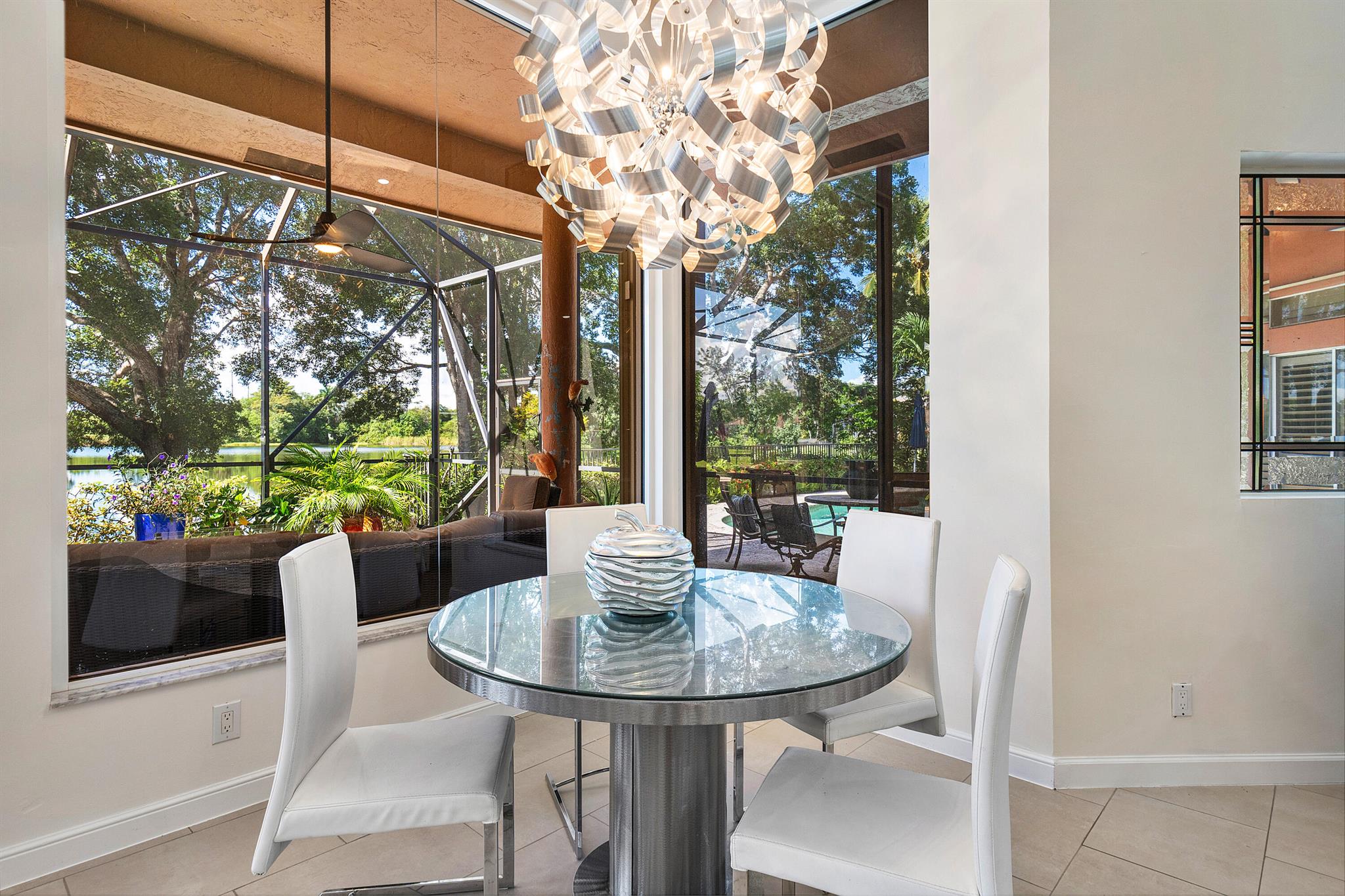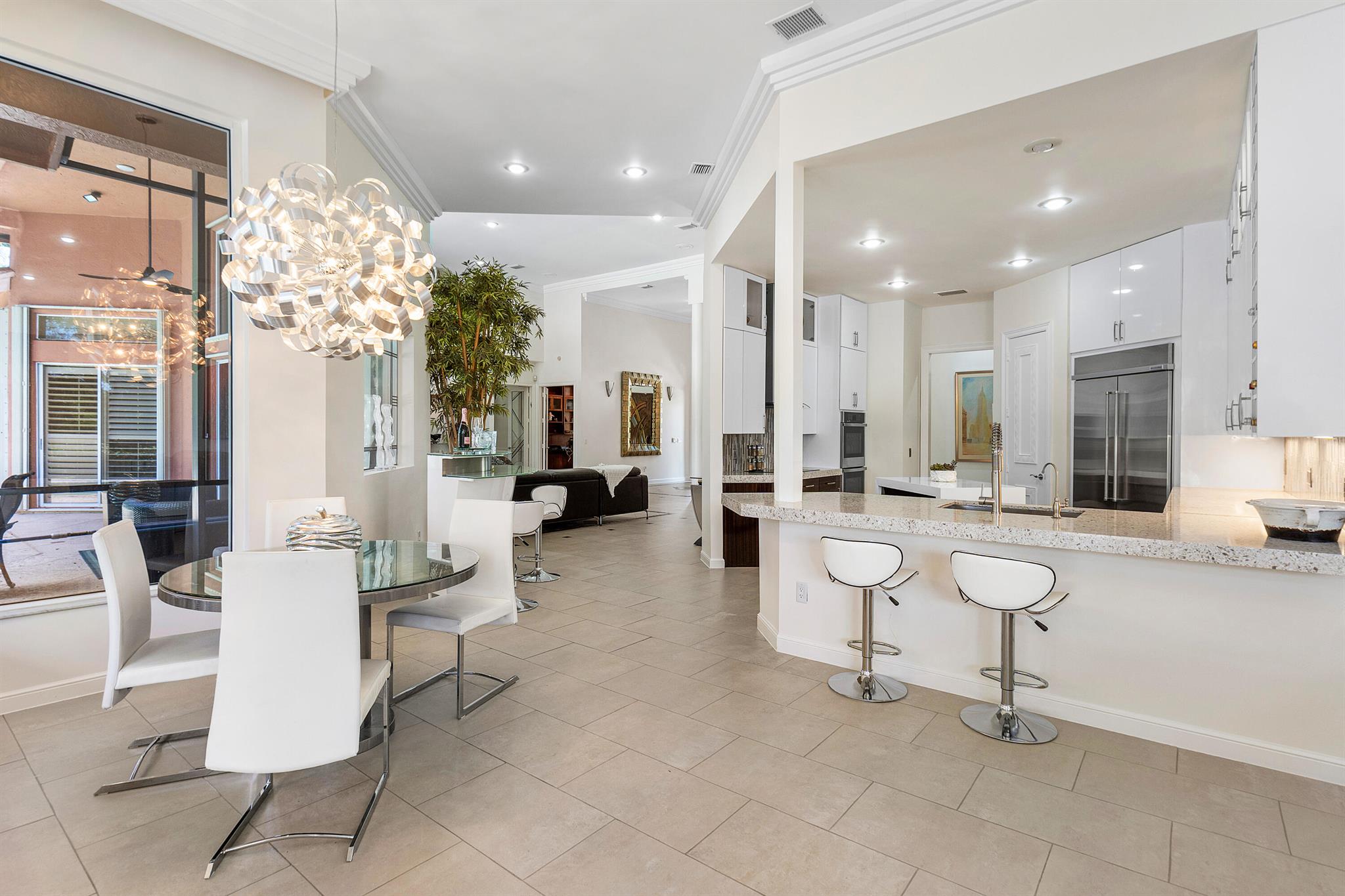 Spectacular 1 story, lakefront, pool home on over 1/3 acre with much privacy. 4 bedrooms, 2 dens, & 4.5 updated baths, & modern kitchen, perfect for any chef. Kitchen is outfitted w/top of the line, stainless steel appliances, stone countertops, glass cabinets to ceiling, two tone uppers & lowers, 2 pantries, & working island. Primary bedroom suggests a 5 star hotel suite w/den, grand en-suite bath, & 2 walk-in closets w/superior built-ins. Home impresses w/crown molding & dramatic ceilings. 3 car garage grants further storage. The covered & screened back patio leads to an open, sunny pool & spa, all ideal for entertaining. Take in the serene views from home while living in a Golf & Country Club Community including endless amenities.Membership Required.