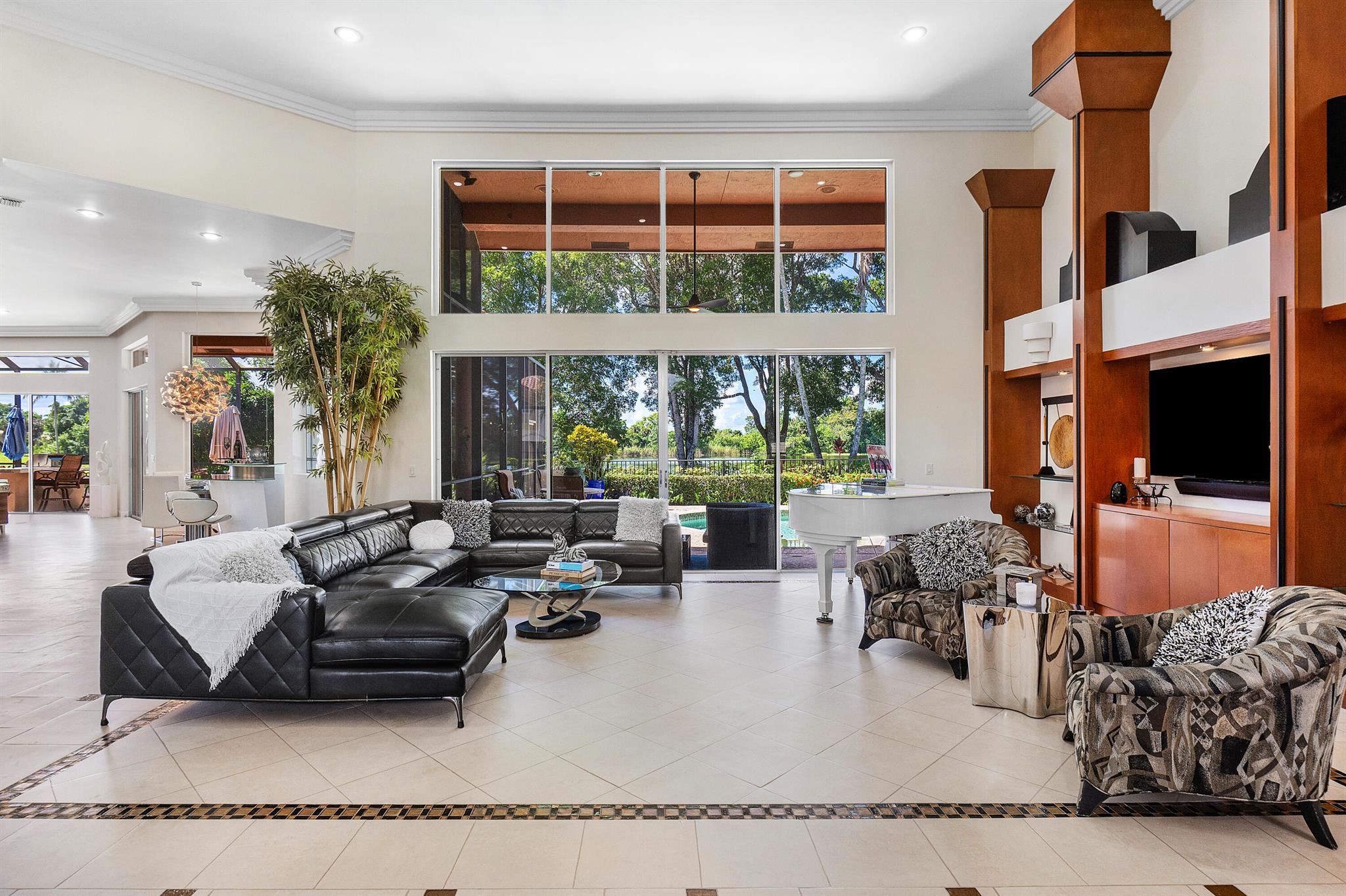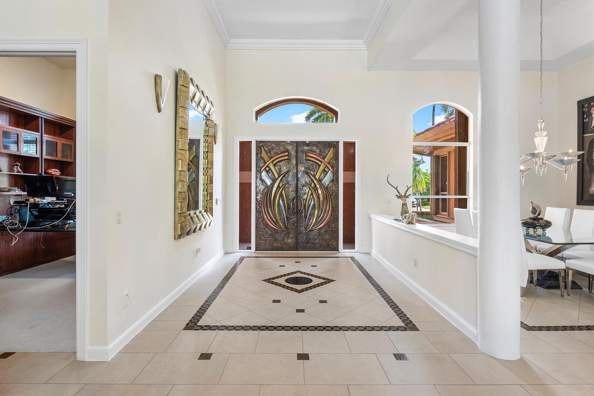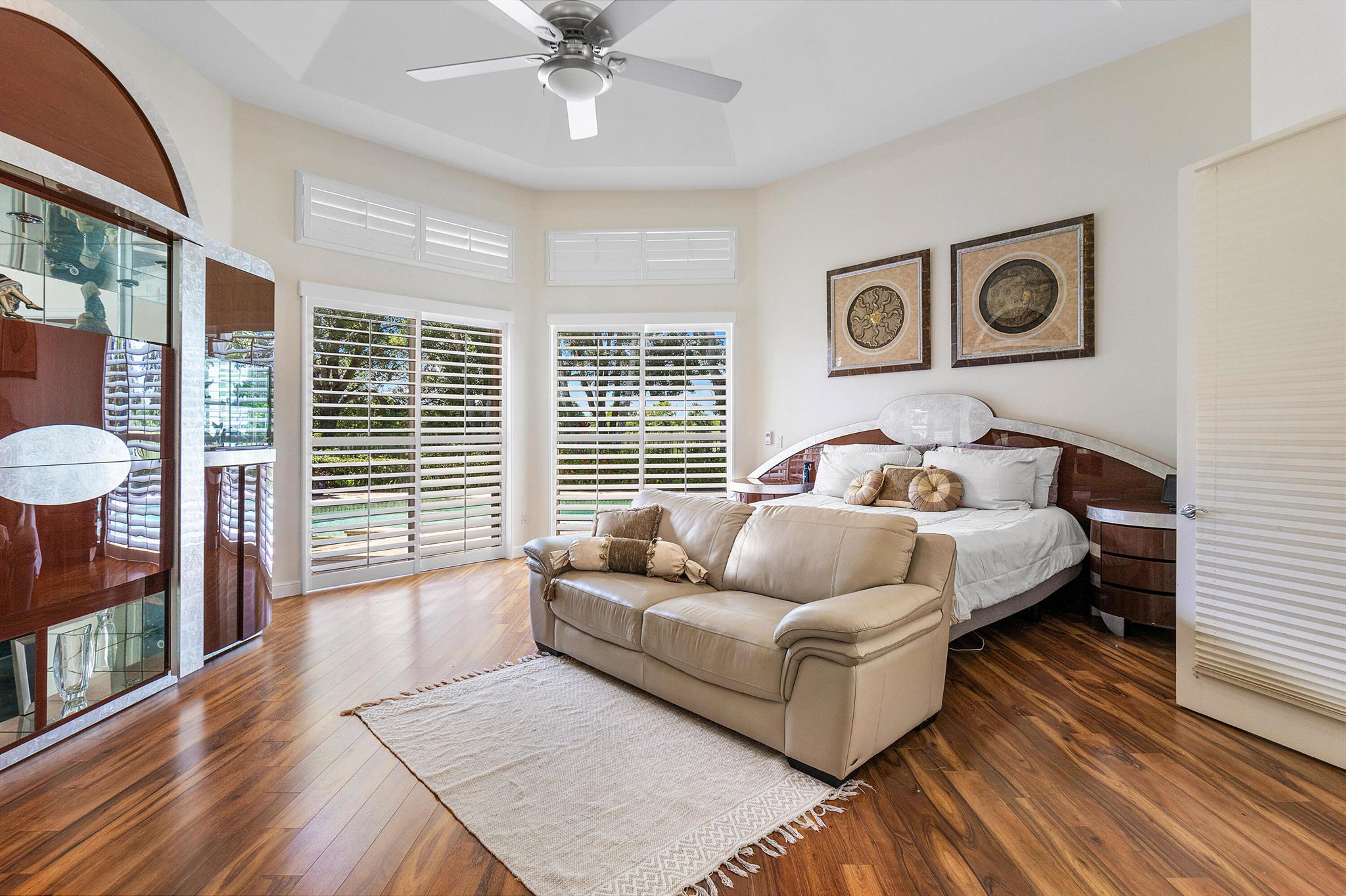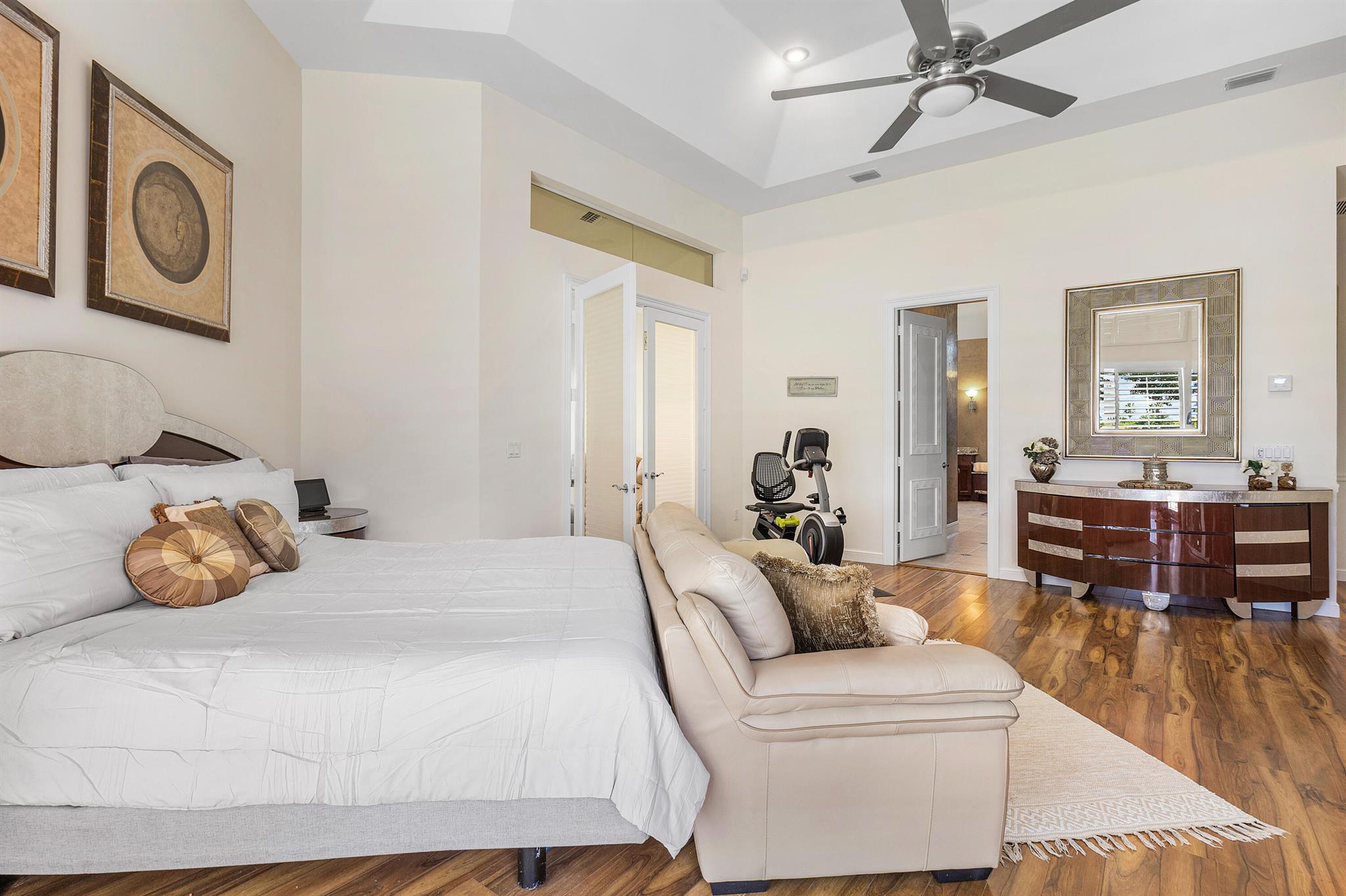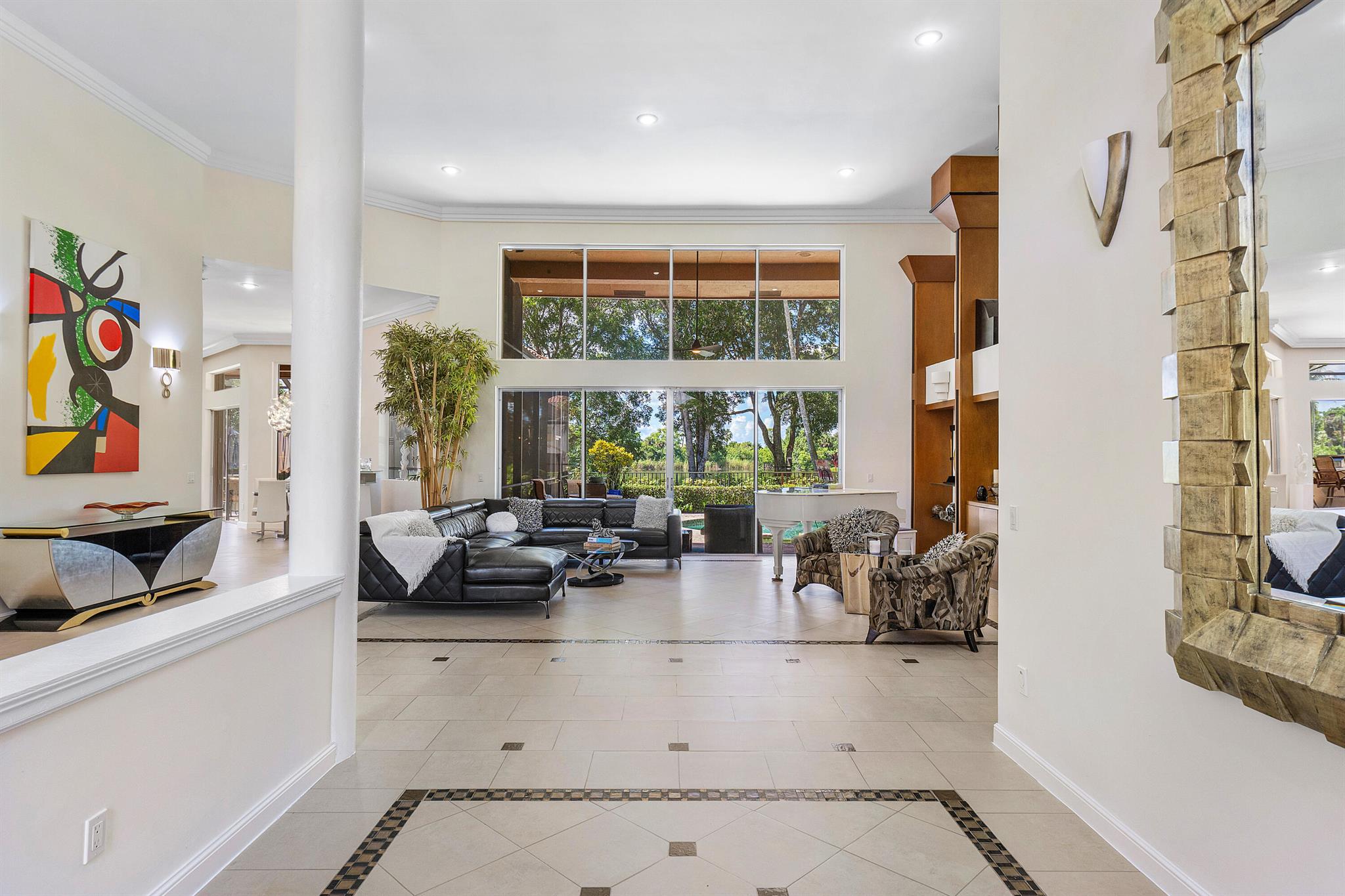 Spectacular 1 story, lakefront, pool home on over 1/3 acre with much privacy. 4 bedrooms, 2 dens, & 4.5 updated baths, & modern kitchen, perfect for any chef. Kitchen is outfitted w/top of the line, stainless steel appliances, stone countertops, glass cabinets to ceiling, two tone uppers & lowers, 2 pantries, & working island. Primary bedroom suggests a 5 star hotel suite w/den, grand en-suite bath, & 2 walk-in closets w/superior built-ins. Home impresses w/crown molding & dramatic ceilings. 3 car garage grants further storage. The covered & screened back patio leads to an open, sunny pool & spa, all ideal for entertaining. Take in the serene views from home while living in a Golf & Country Club Community including endless amenities.Membership Required.