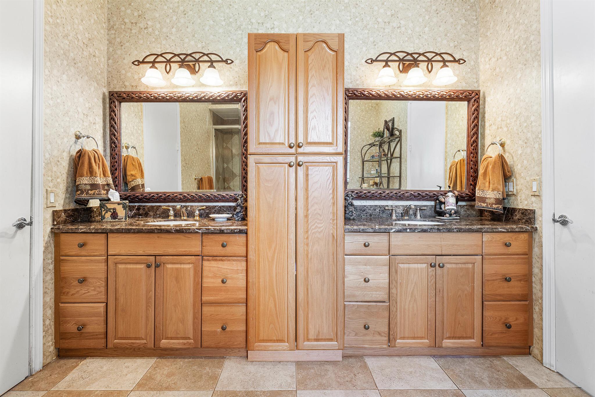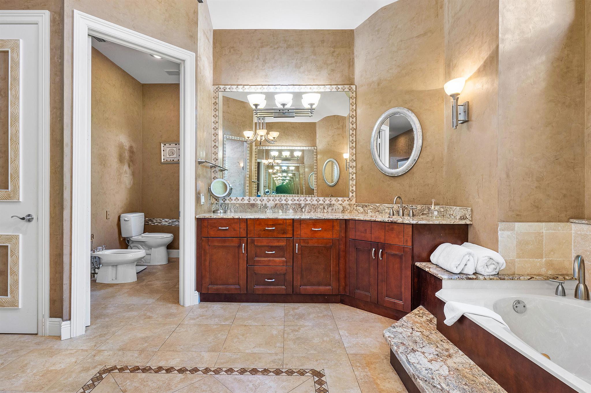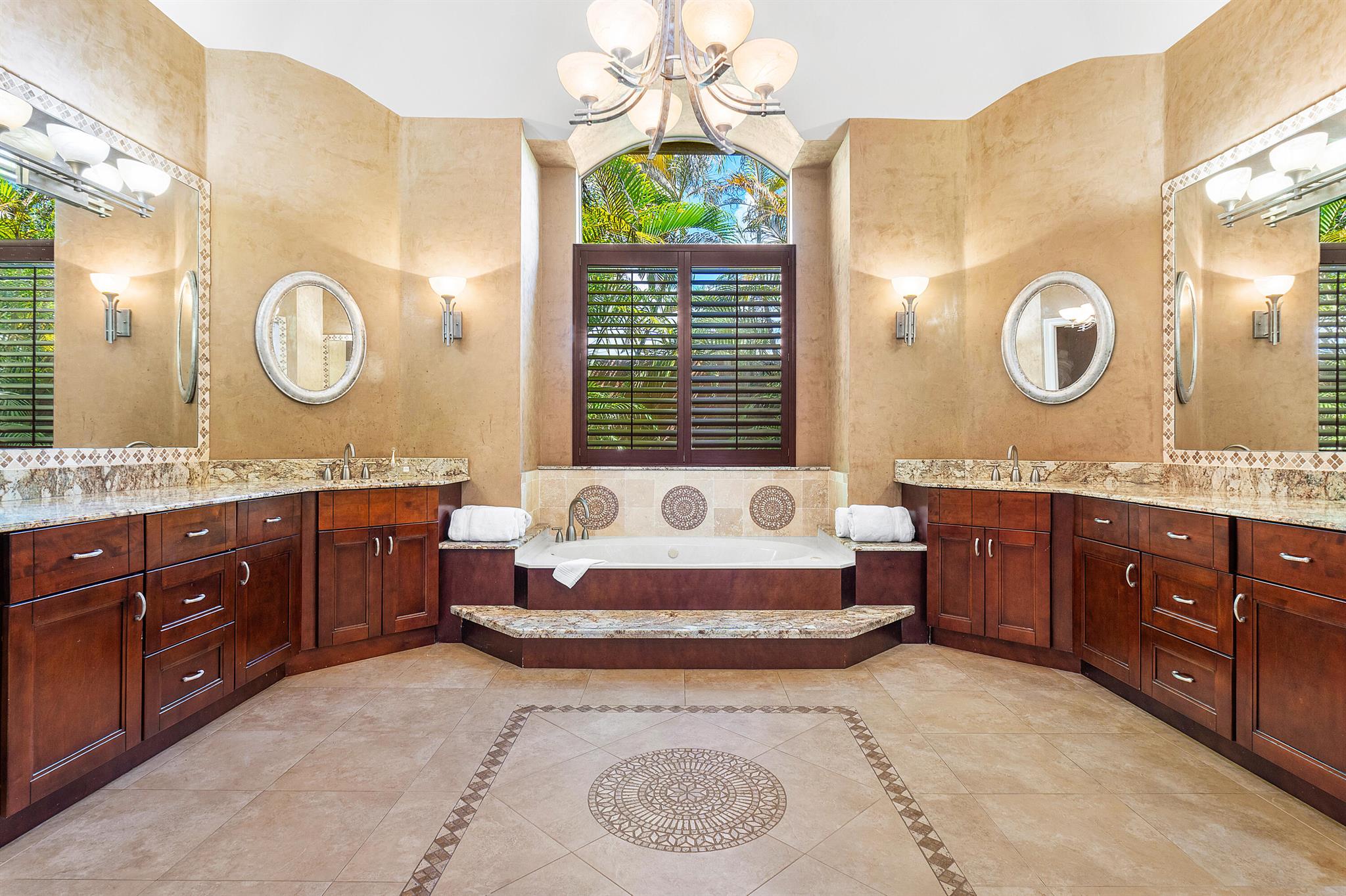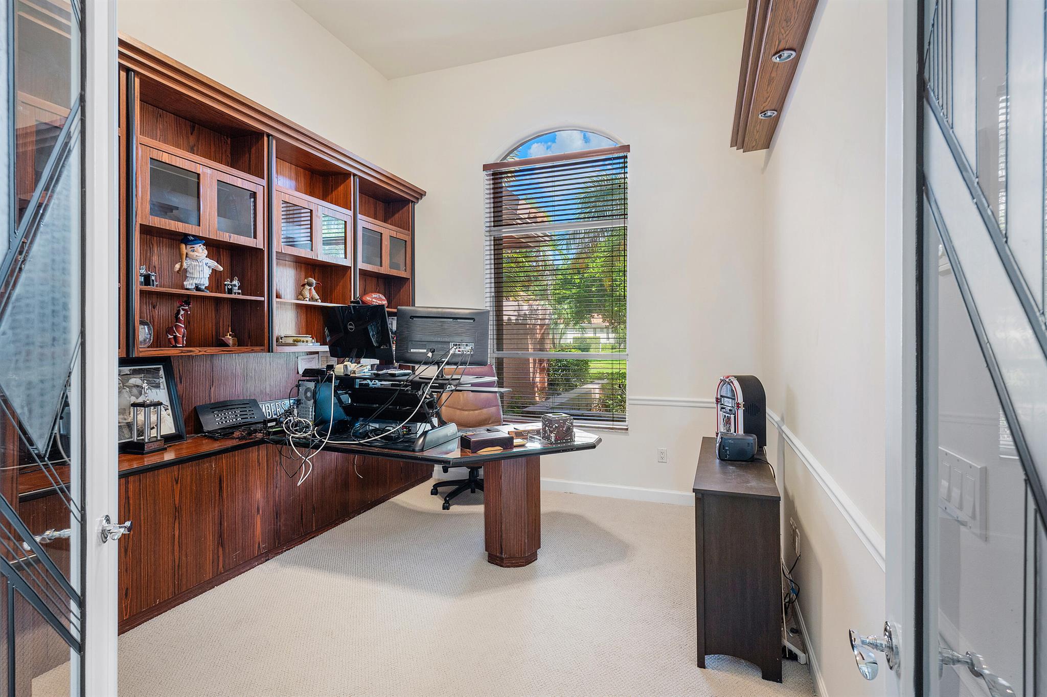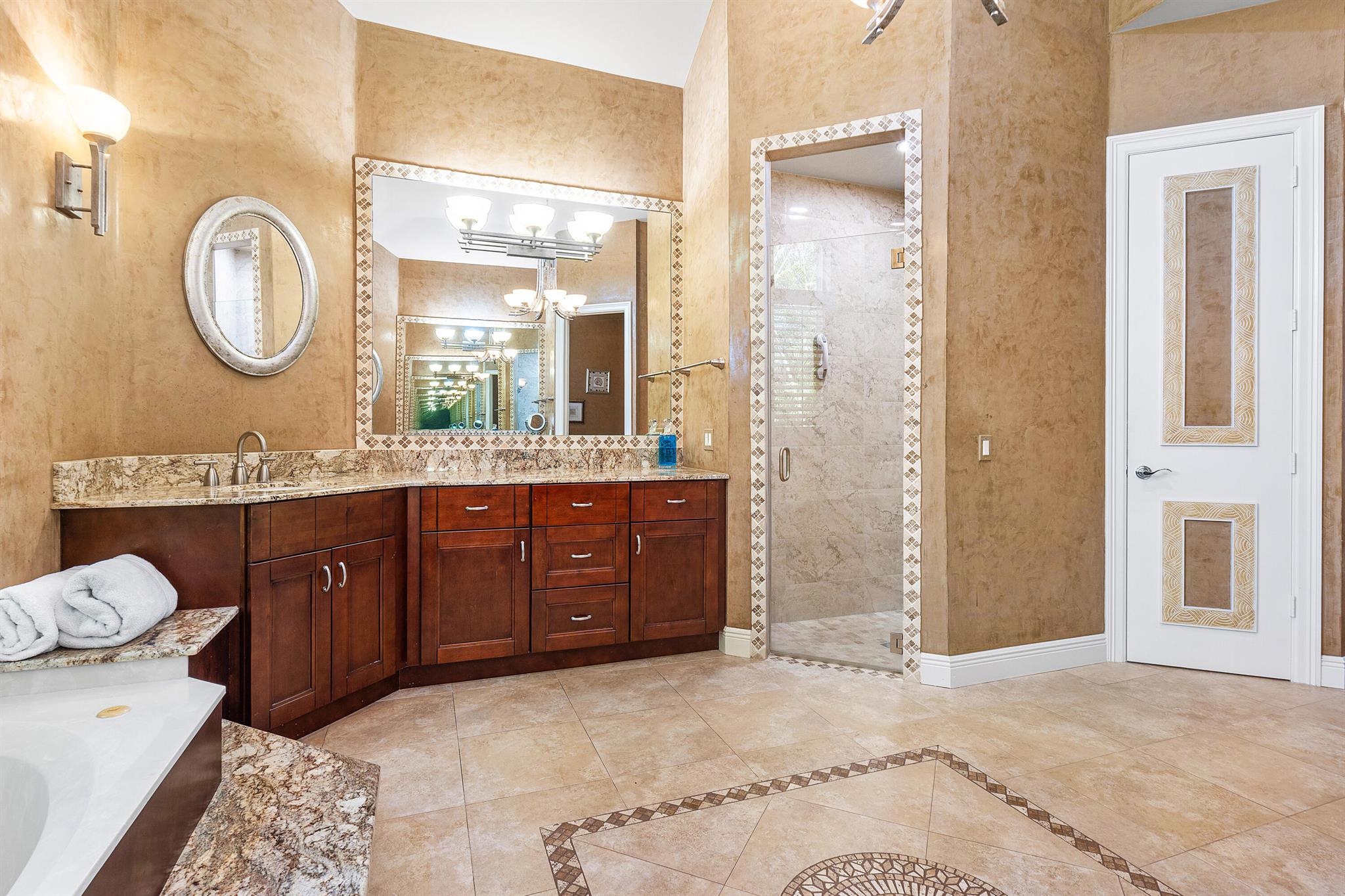 Spectacular 1 story, lakefront, pool home on over 1/3 acre with much privacy. 4 bedrooms, 2 dens, & 4.5 updated baths, & modern kitchen, perfect for any chef. Kitchen is outfitted w/top of the line, stainless steel appliances, stone countertops, glass cabinets to ceiling, two tone uppers & lowers, 2 pantries, & working island. Primary bedroom suggests a 5 star hotel suite w/den, grand en-suite bath, & 2 walk-in closets w/superior built-ins. Home impresses w/crown molding & dramatic ceilings. 3 car garage grants further storage. The covered & screened back patio leads to an open, sunny pool & spa, all ideal for entertaining. Take in the serene views from home while living in a Golf & Country Club Community including endless amenities.Membership Required.