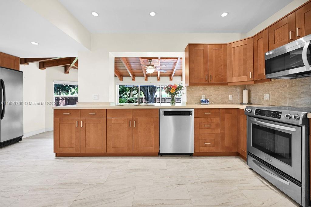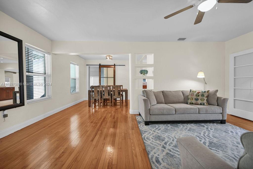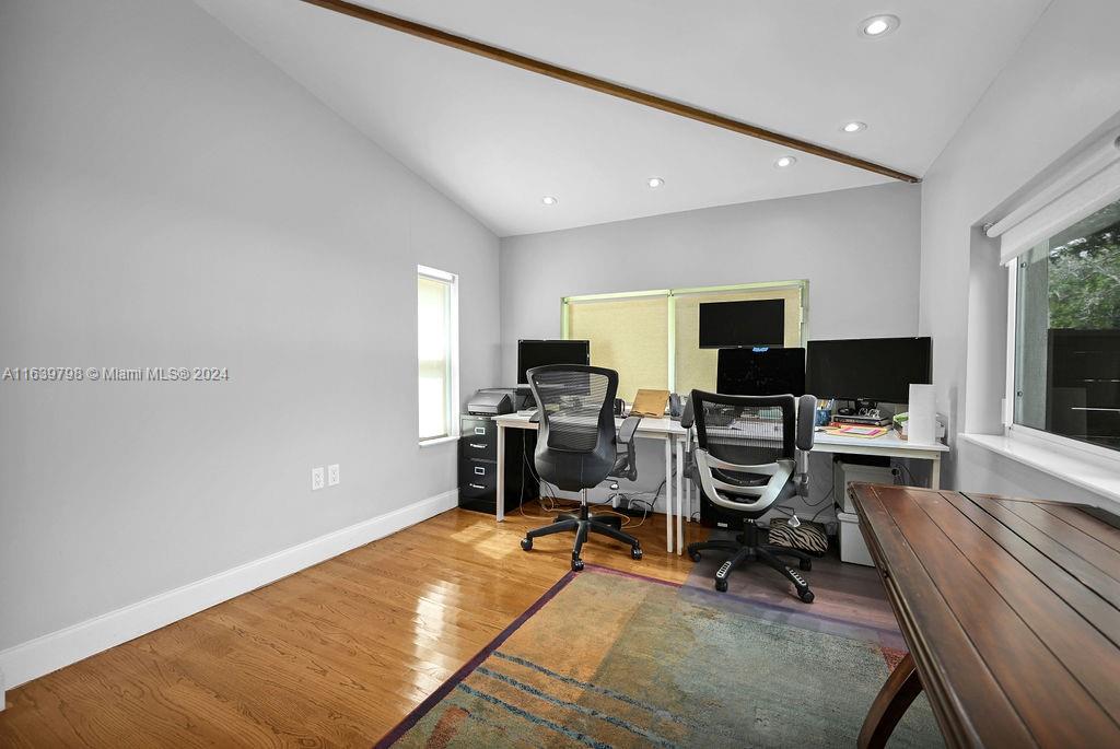 Discover this beautiful Miami Shores home, offering 3 bedrooms, 2 bathrooms, and a versatile office/flex room. Enjoy generous living and dining spaces, an updated kitchen that seamlessly flows into the family room, and abundant natural light throughout. The spacious backyard features a large deck with ample room for a pool, all nestled on a tranquil dead-end street framed by beautiful mature oak trees. With impact windows and doors, a newer roof, a laundry room, and ample parking, this home provides both comfort and convenience. Located in a NO FLOOD ZONE with easy access to the Miami Business District, Miami Beach, Wynwood, and the Design District.