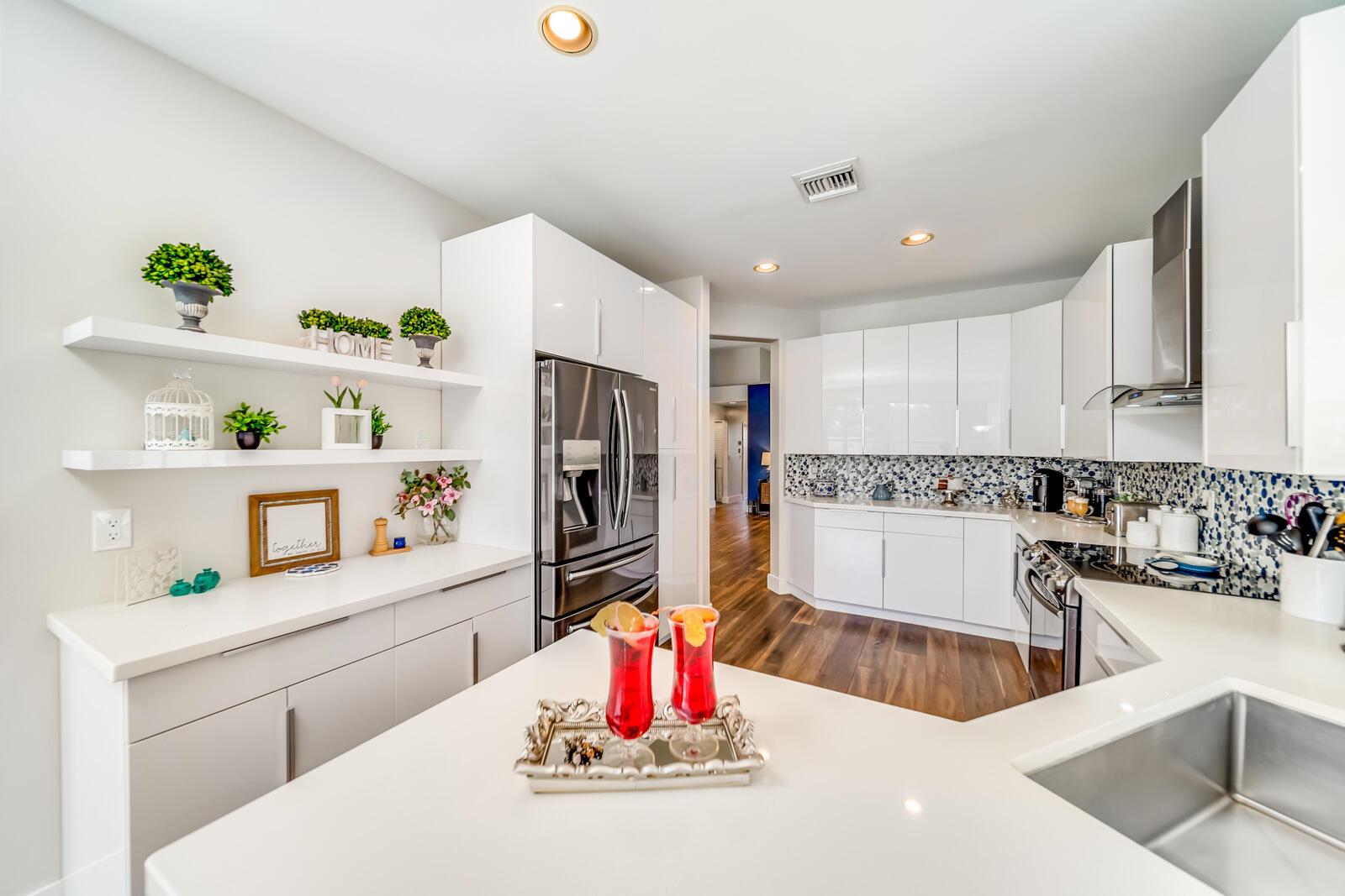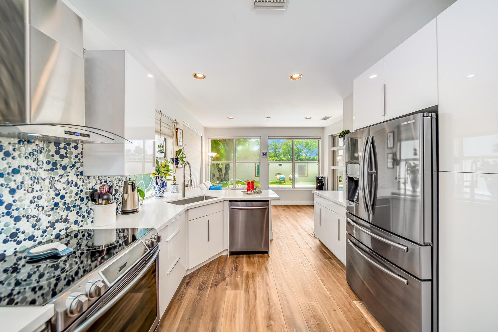 Dramatic entrance with 11 foot volume ceilings throughout & picturesque windows that flood the inside with natural light. Enjoy the sense of openness, volume, & space. Single story home in The Palms at Boca Pointe with over 2000 square feet of living space, and over 2400 total square feet, features 3 bedrooms, 2 baths, a 2 car garage, a huge sparkling swimming pool, & a tropical garden with a lot of greenery. Enjoy spectacular sunset views every evening with the west-facing backyard plus no rear facing neighbors. Move the party outside in this home which is perfect for entertaining or relaxing. Thrilling Outdoor space! French Baroque Marche solid engineered wood flooring throughout this home and tile in the bathrooms. Updated high-end gourmet kitchen features quartz counter tops,