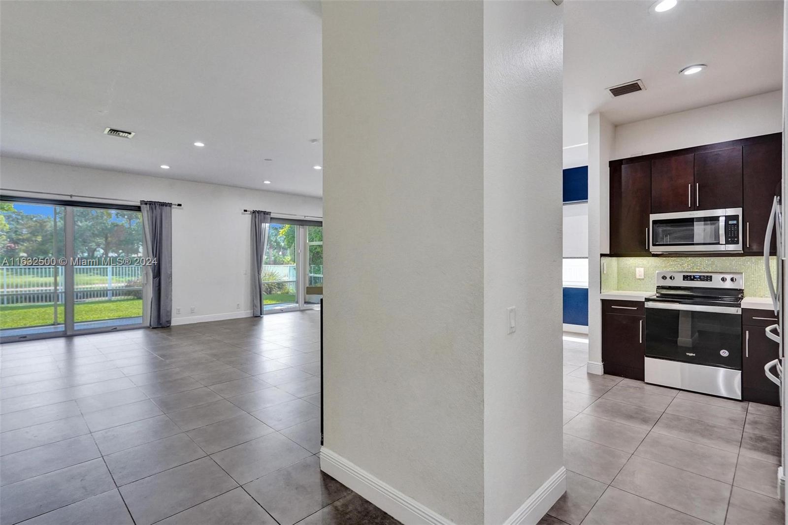 Beautifully renovated and Rarely available waterfront property with open floorplan featuring a new Roof(2023), AC(2023), added recessed lighting, Impact Windows, sliders, & doors for Top-Notch security & insurance discounts. Enjoy a seamless indoor-outdoor lifestyle with a screened-in patio and beautiful travertine floors, connected to the master bedroom by a French impact door(s) for easy access outside and great water view. There are NO homes behind property along w/fenced backyard ensuring privacy for your hidden oasis. The upgraded kitchen & guest bathroom show off modern elegance. Inside, tile floors throughout the main areas, & engineered wood as an added bonus to all bedrooms. Close to all major highways, restaurants, Top Rated Schools, Shopping, and more.