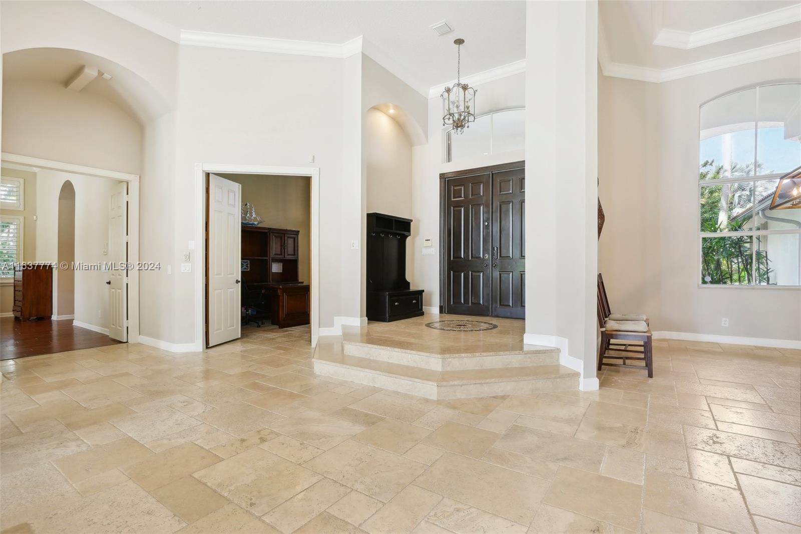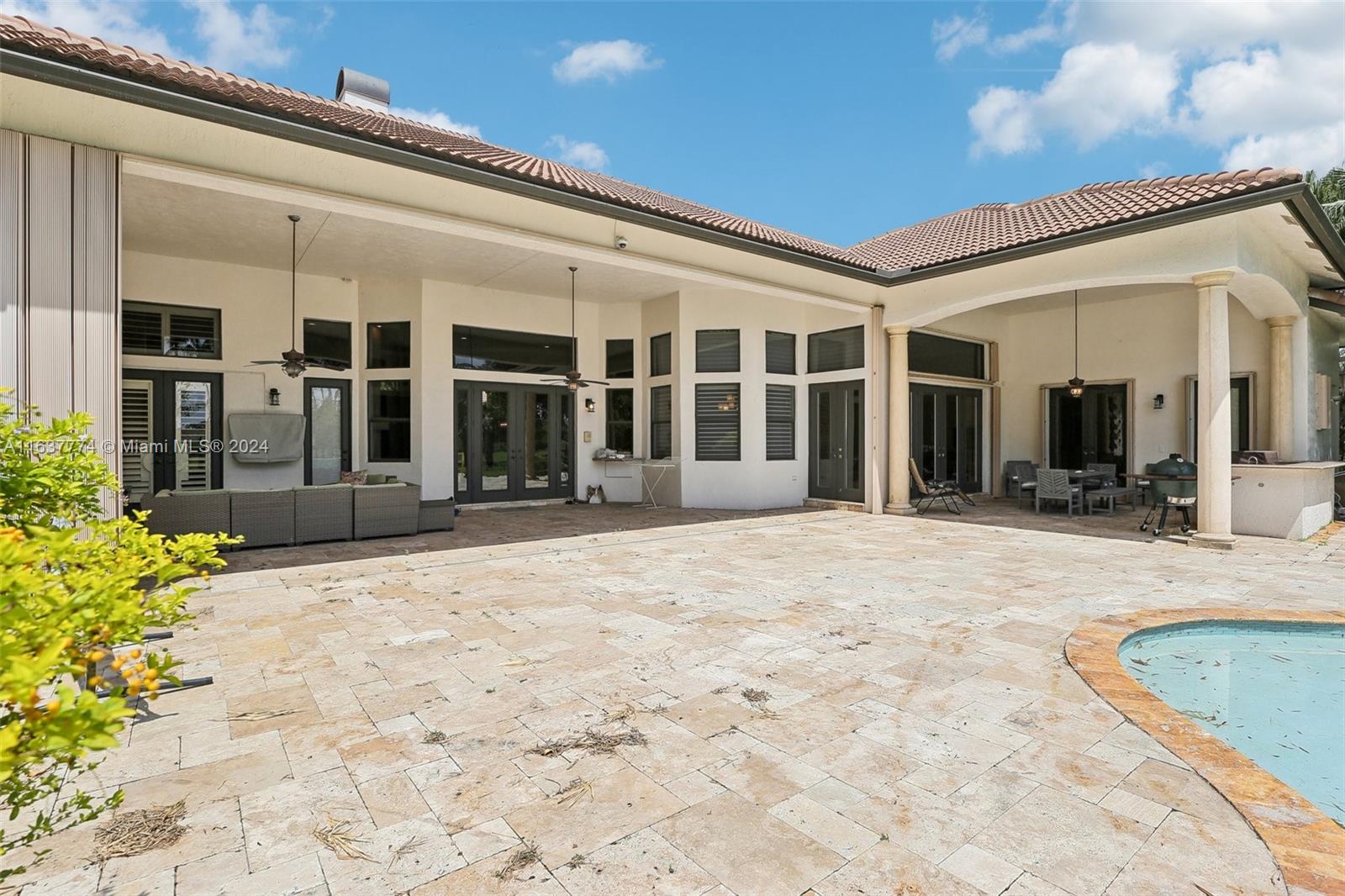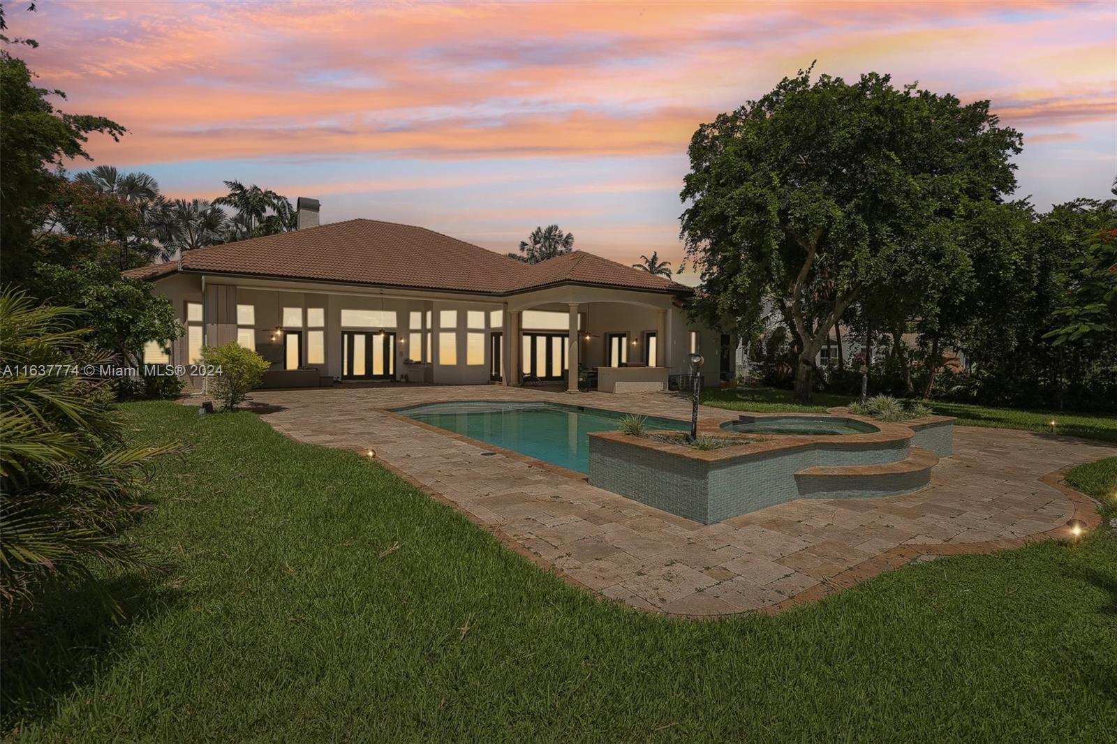 Step into your own tropical oasis with this stunning backyard retreat! Featuring a shimmering pool, lush greenery, and serene water views, your outdoor space is perfectly crafted for relaxation and entertainment. Dive into a life of luxury in this exquisite setting, Tankless water heater, beautiful Jerusalem stone floors in all main living areas, office & one bedroom, 6/6.5+office, plantation shutters,Whole house generator, accordion shutters, gas stove, double oven, bread warmer, microwave.