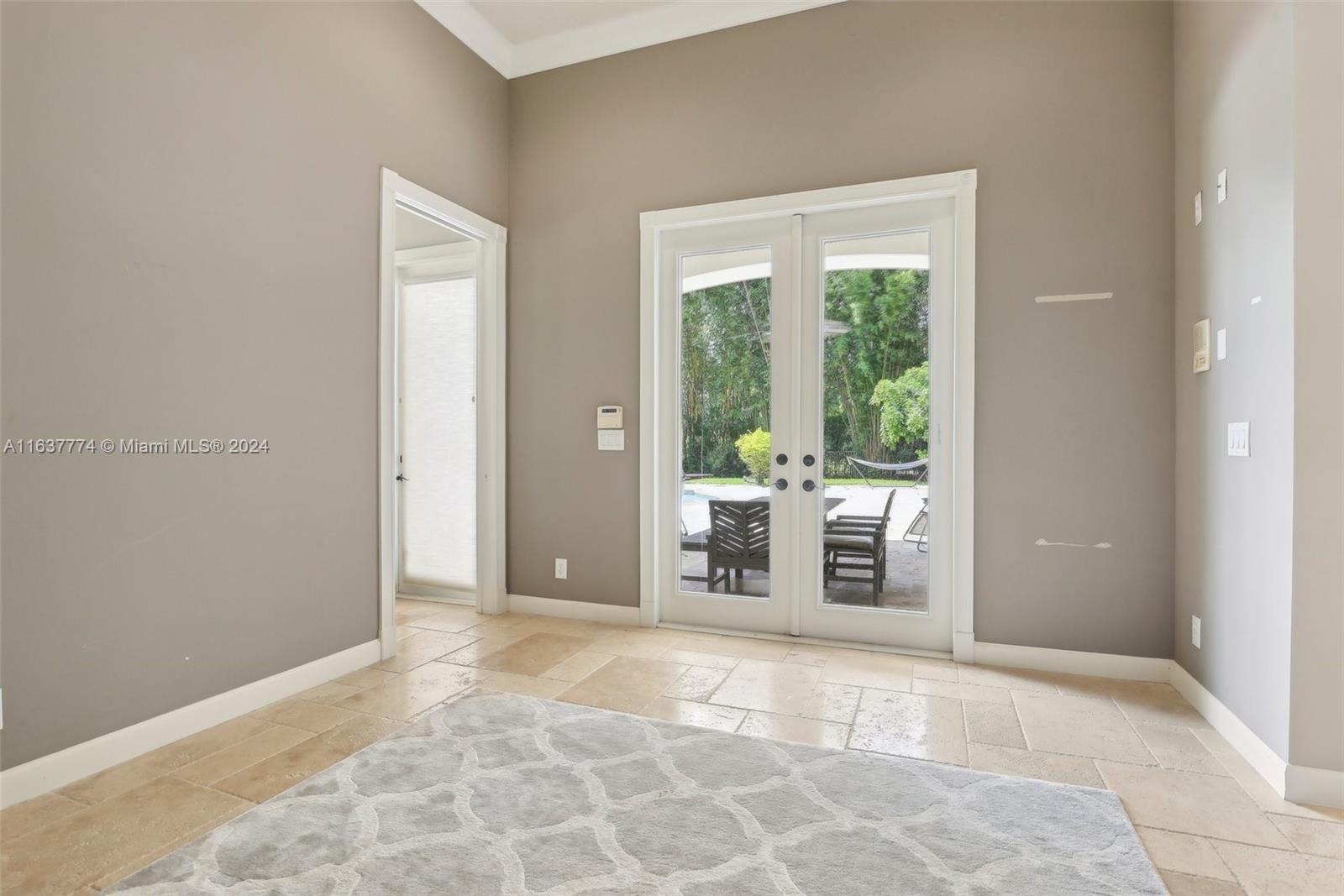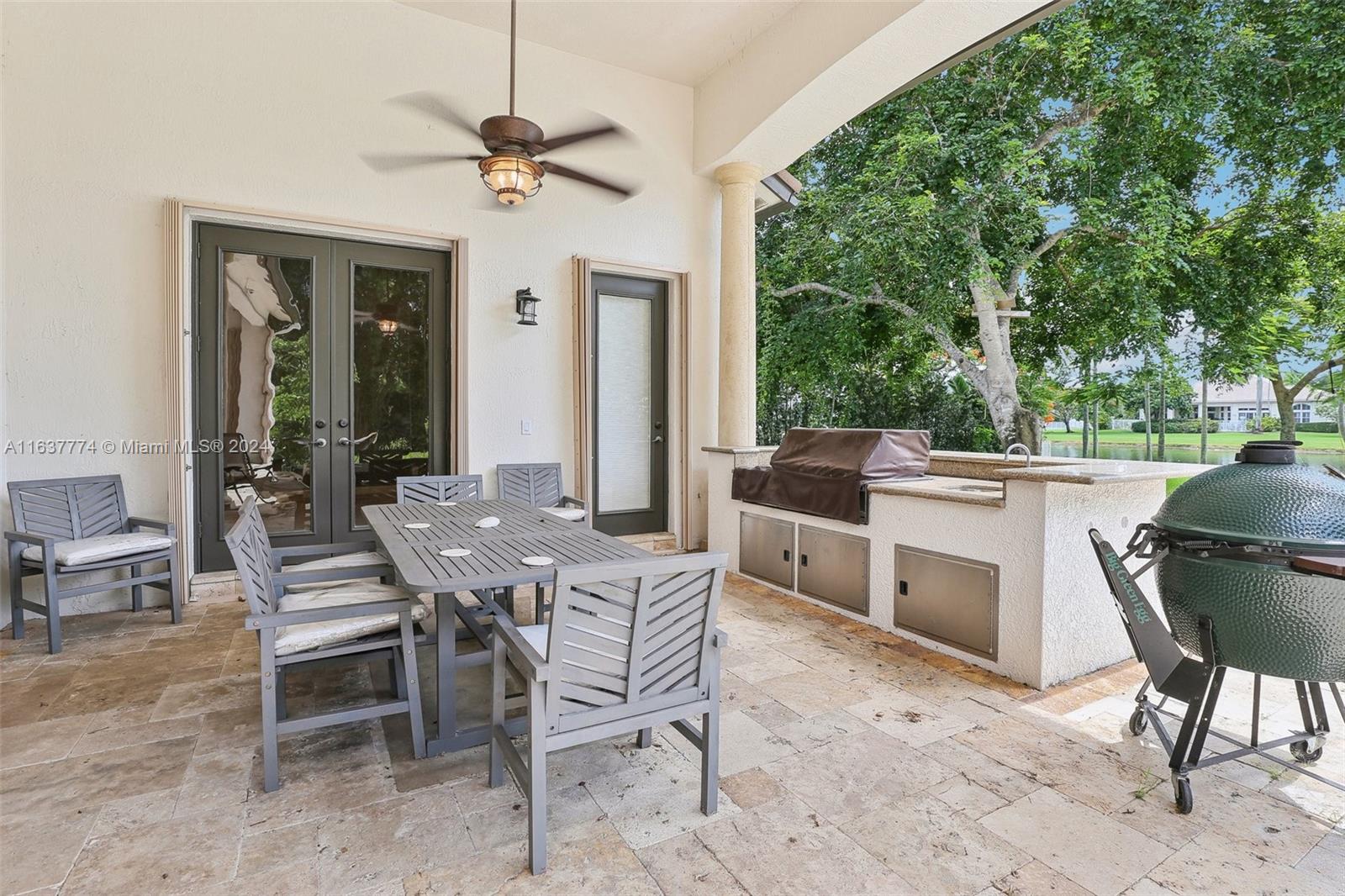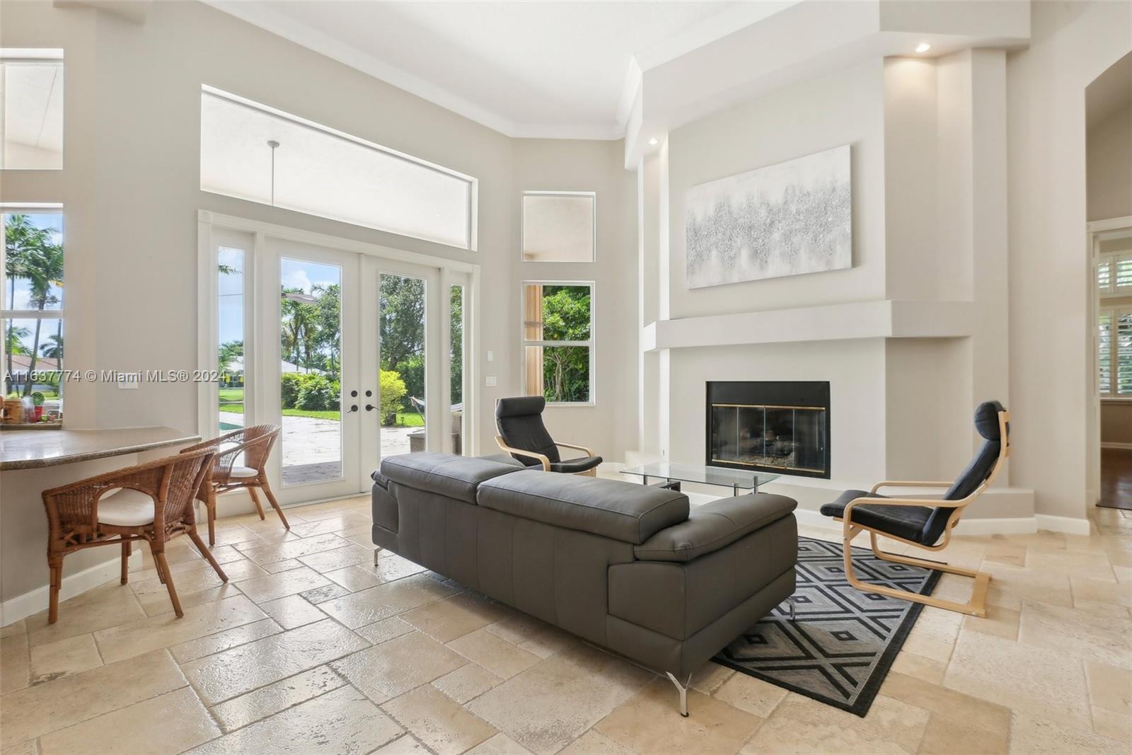 Step into your own tropical oasis with this stunning backyard retreat! Featuring a shimmering pool, lush greenery, and serene water views, your outdoor space is perfectly crafted for relaxation and entertainment. Dive into a life of luxury in this exquisite setting, Tankless water heater, beautiful Jerusalem stone floors in all main living areas, office & one bedroom, 6/6.5+office, plantation shutters,Whole house generator, accordion shutters, gas stove, double oven, bread warmer, microwave.