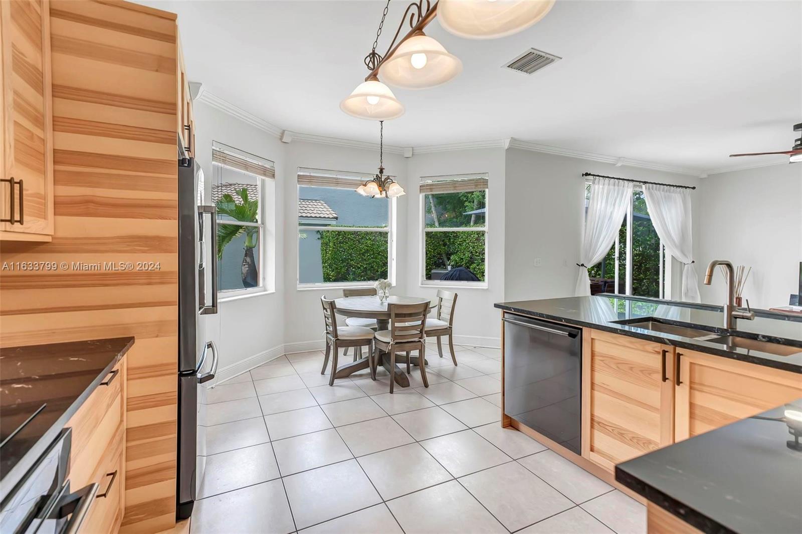 Discover this immaculate 3-bed, 2.5-bath home on a corner lot in the prestigious Silver Shores gated community. Enjoy 24-hour security and resort-style amenities, including a pool, gym, tennis and basketball courts, event space, and on-site management. The beautifully landscaped backyard features a large pool, perfect for relaxation. Inside, the fully updated kitchen dazzles with brand-new dark stainless steel appliances, tall cabinets with soft-close technology, and a pull-out pantry. The home boasts crown molding throughout, no popcorn ceilings, and an open layout filled with natural light. The primary suite offers double closets and a luxurious bathroom with a shower and tub. Accordion shutters on the second floor provide hurricane protection. This bright, spacious home is a must-see!