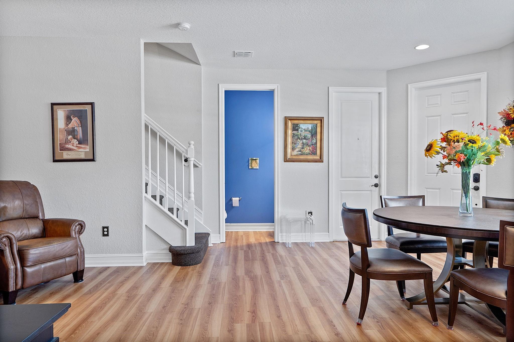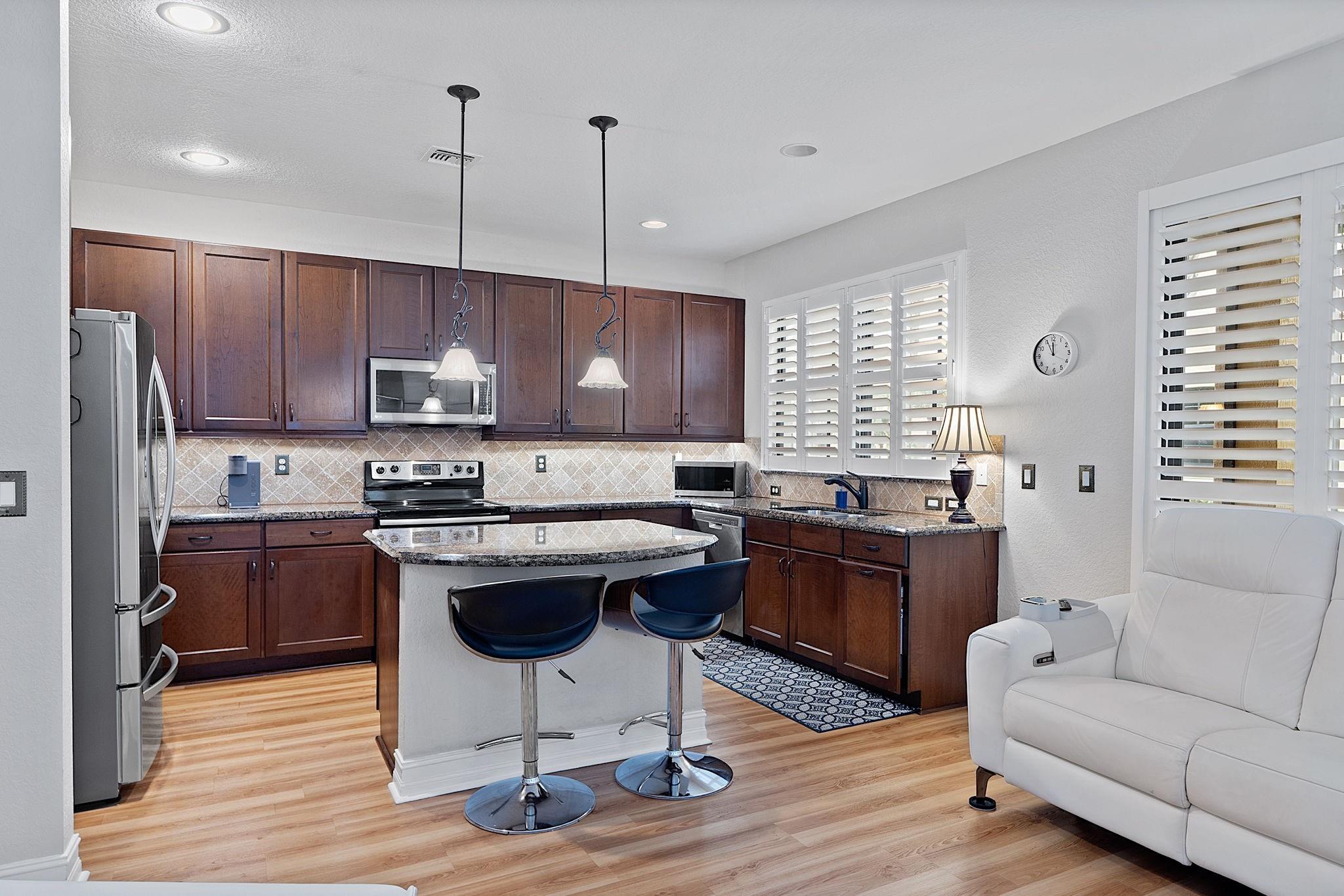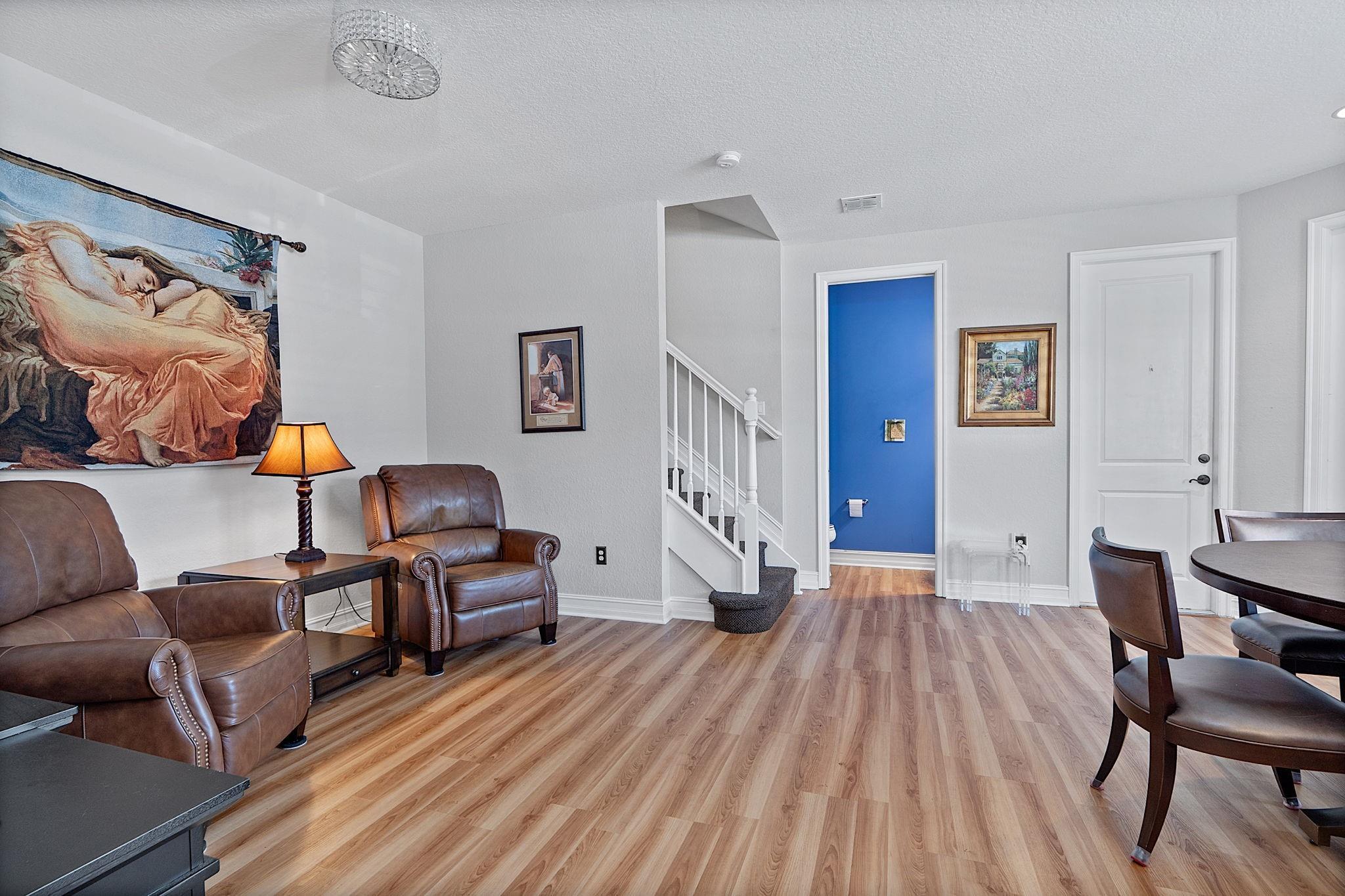 Presenting an incredible opportunity in the desirable Parkland Reserve community, known for its A-rated schools! This stunning corner townhome features 4 bedrooms and 2.5 baths, just 50 yards from Park Trails Elementary, making school drop-offs a breeze. Enjoy ample guest parking right in front of your home. Step inside to find beautiful laminate wood flooring and an updated kitchen with top-of-the-line stainless steel appliances and granite countertops. The expansive master suite includes dual sinks, a step-in shower, and a separate tub. All bedrooms and the laundry room are on the second floor. The full 2-car garage has upgraded epoxy flooring and custom shelving. Impact windows and doors throughout add peace of mind. This rarely available townhome in Parkland will sell fast!