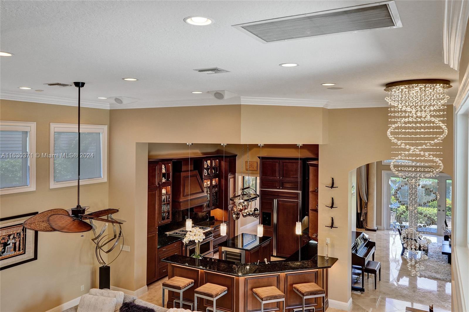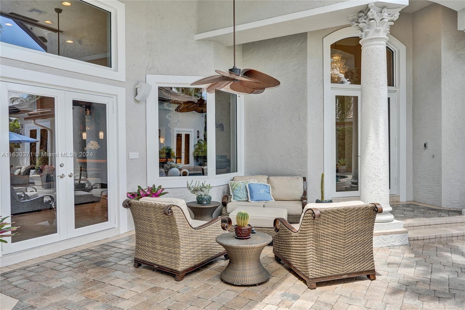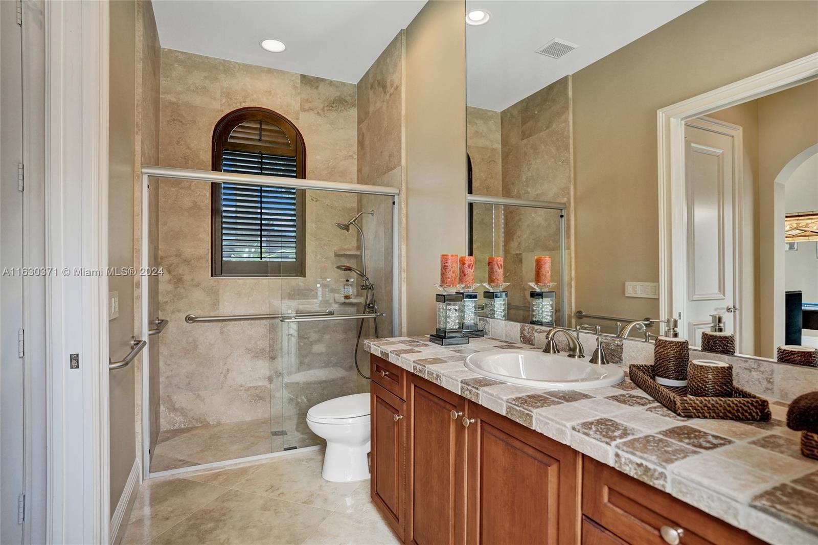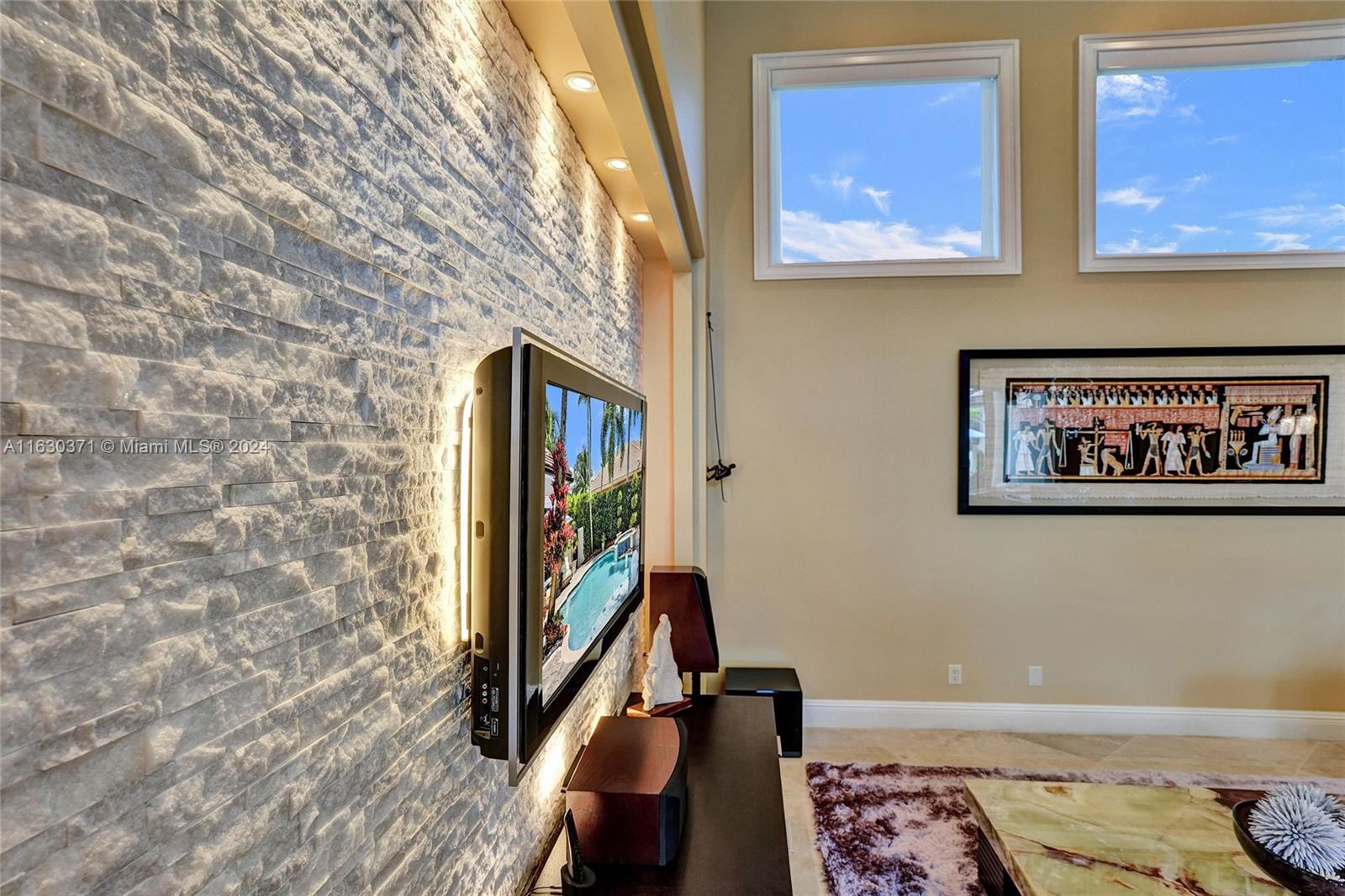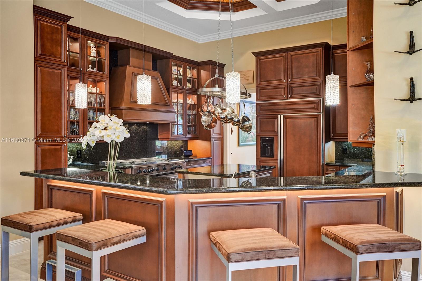 YOUR PRIVATE TROPICAL OASIS AWAITS YOU! Stunning 2 story house on a quiet cul-de-sac in the 24/7 guard gated Hawks Landing. It features 5 bed/4.5 bths w/ waterfront views. A New Roof, exterior paint 2023, all impact windows/doors in 2022. Smart Home, security cameras, security lights. The first floor has the sumptuous primary w/dbl W.I.C., marble spa bath. Wood floors & high volume ceilings make this a true retreat. Enjoy your large chef's kitchen with dbl. stacked wood & glass cabinets. High end appliances w/ 6 burner gas stove & dbl. ovens. New wine & beverage cooler makes for easy entertaining. marble & wood floors throughout. The separate guest house has views of the pool & spa plus amazing courtyard landscaping, W.I.C. and refreshment bar plus full bath. Look no further, you’re home.