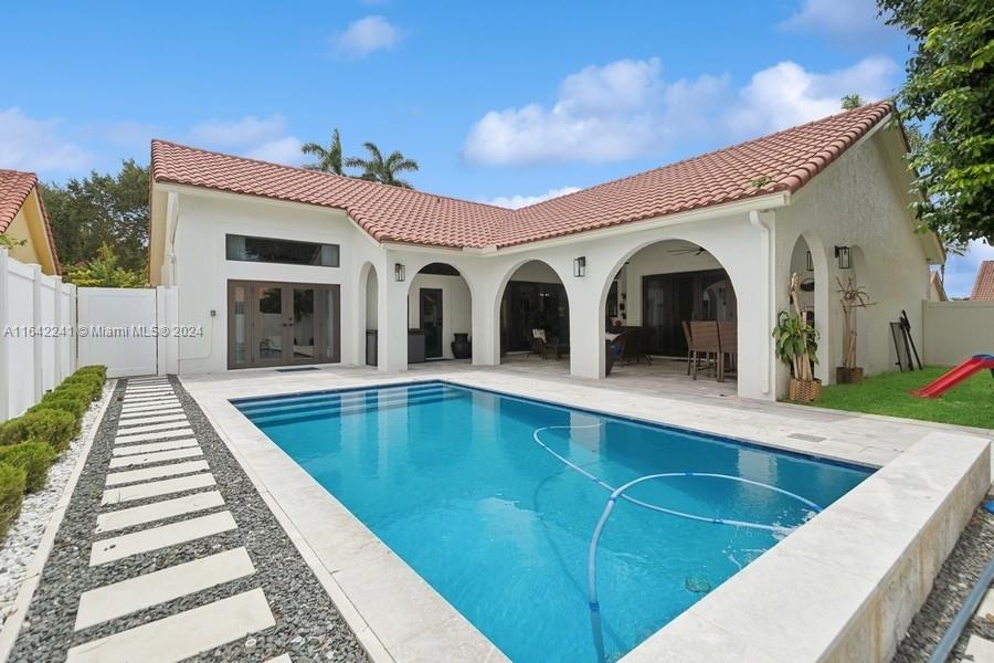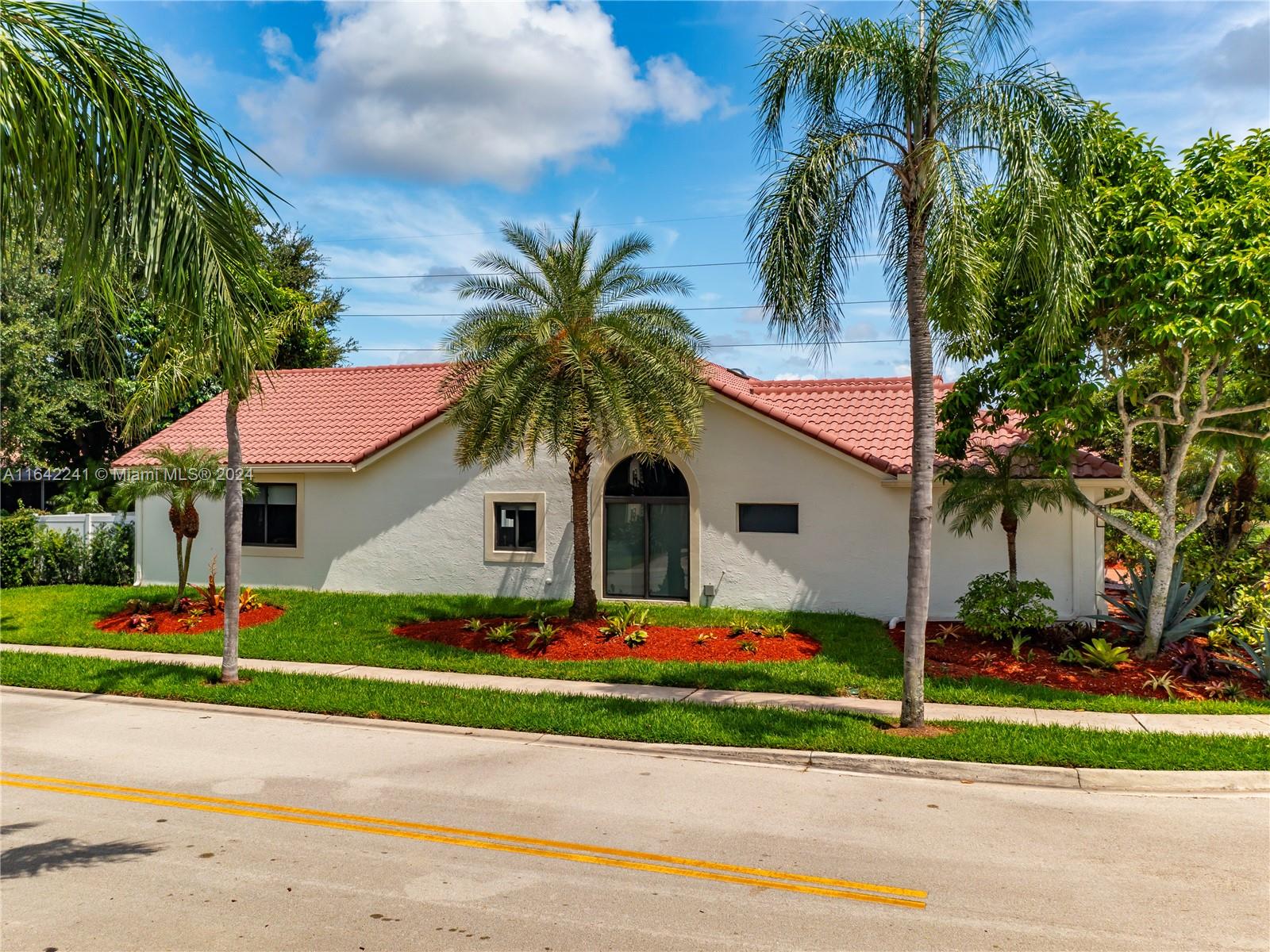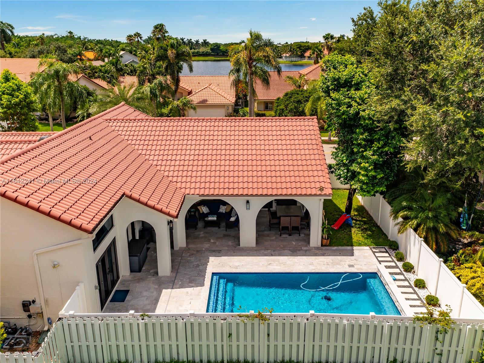 A captivating home in Weston. Beautiful 3 bed/2 bath, 2-car garage, single-story home located in the desirable gated community of Laguna Springs. Move-in ready with lots of natural light, spacious open floor plan with high ceilings perfect for family and friends’ gatherings. Large covered porch, privately enclosed patio w/vinyl fence, and new pool. Interior painted in neutral colors, luxury bamboo vinyl flooring, ceiling fans, high hat LED lighting. Kitchen w/new cabinetry, white tile backsplash, stainless steel appliances, oversized farm sink, quartz countertop. Brand new impact-resistant windows. Tastefully landscaped front yard with beautiful tropical plants. Brick pavers on the driveway. Walking distance to Weston Town Center. Easy access to major highways. Grade A-rated schools.